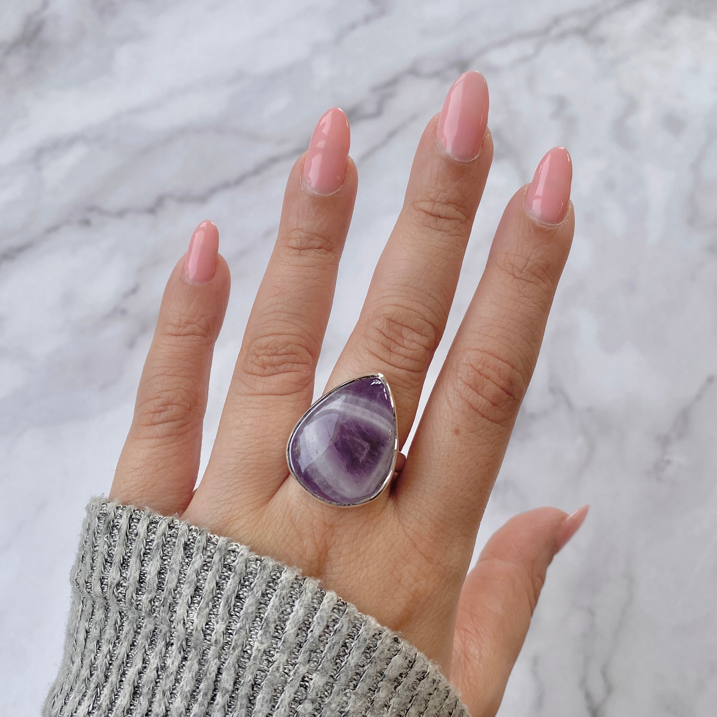 The alluring Amethyst Lace Agate Jewelry can be a gorgeous addition to your wardrobe that can be worn and coupled with many outfits and looks. Wear this magnificent gemstone jewelry with traditional to casual clothing to create a unique look. It would look fantastic with flowy dresses, T-shirts, jeans, a blazer, or a simple black dress. Simply dress up a statement Amethyst Lace Agate ring for a special occasion, such as your date night.