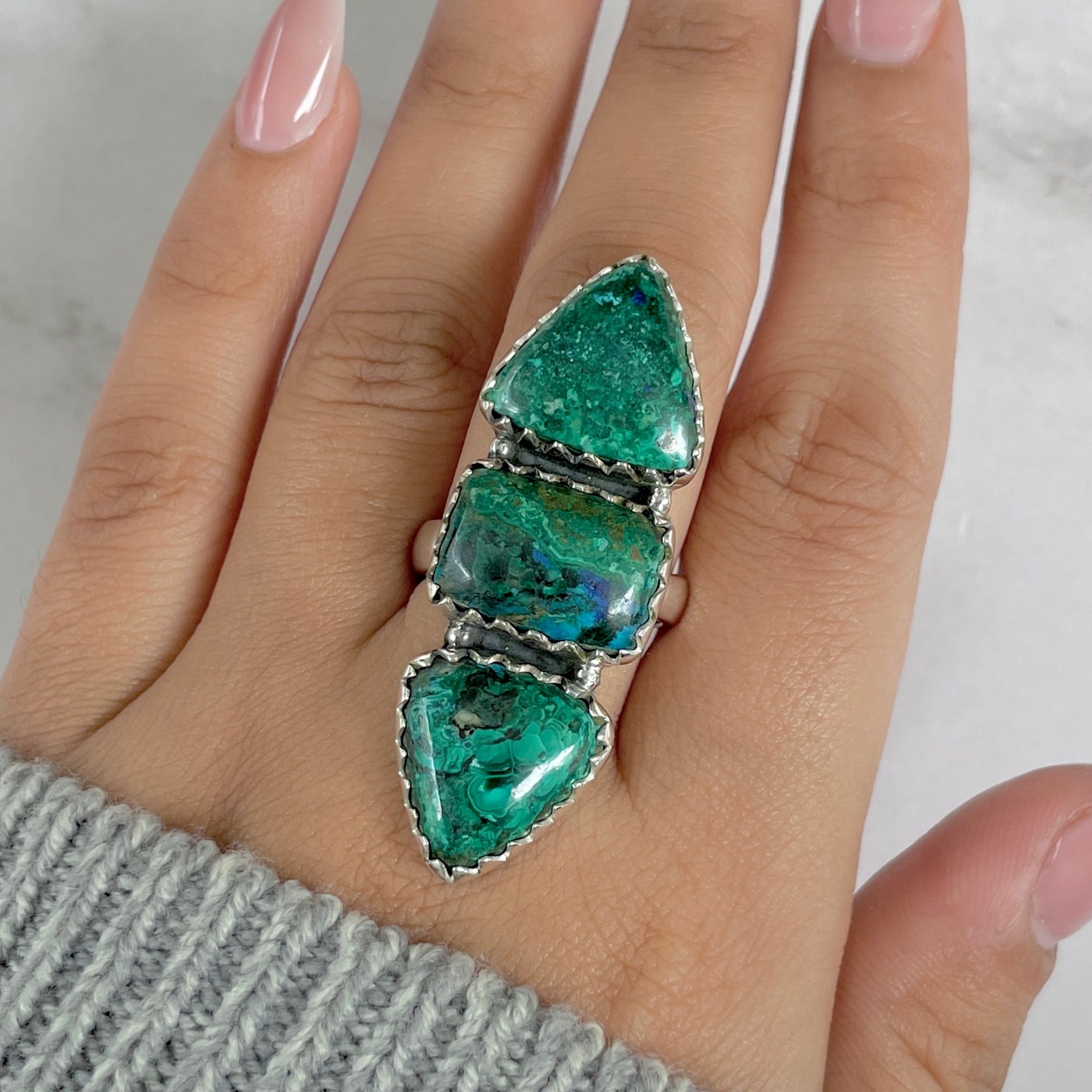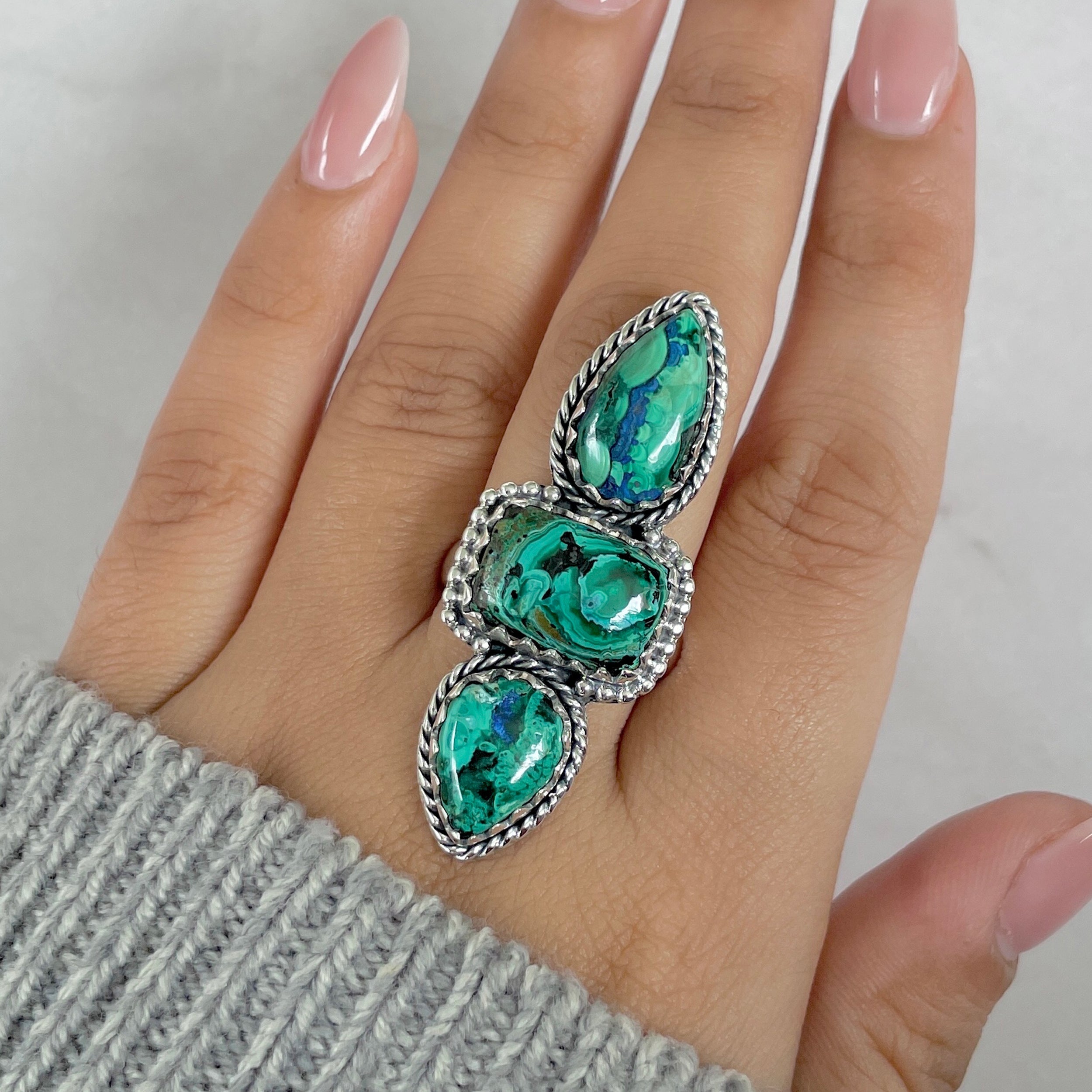 Alternatively, style a pair of statement Azurite Malachite earrings with fitted blazers or high-neck blouses to create an elegant look with a dash of sophistication. If you want a more laid-back appearance, use a statement Azurite Malachite pendant with jeans and basic tees to give your regular outfit a splash of color. Finally, to showcase the dazzling jewels, mix Azurite Malachite Jewelry accessories with sleek, monochrome outfits for a sophisticated evening look.