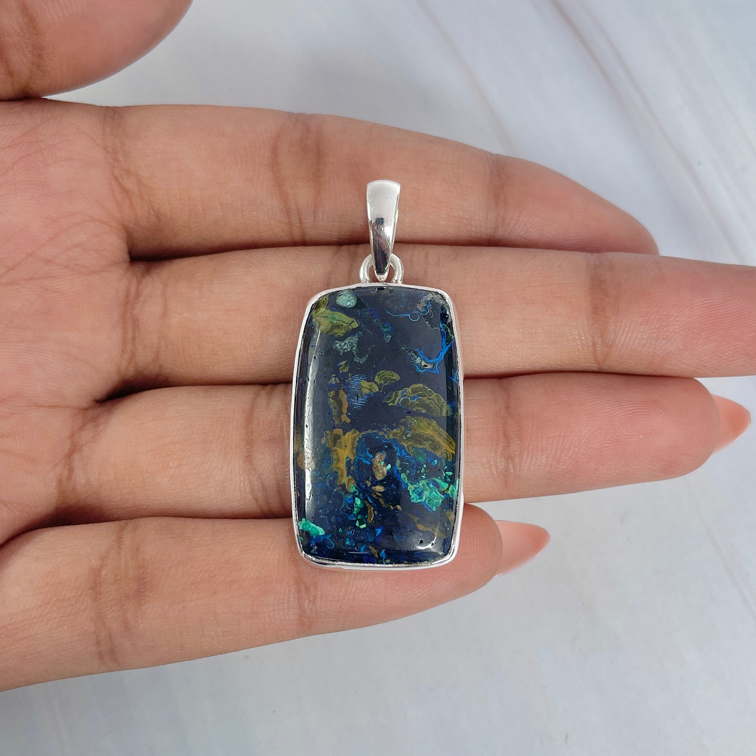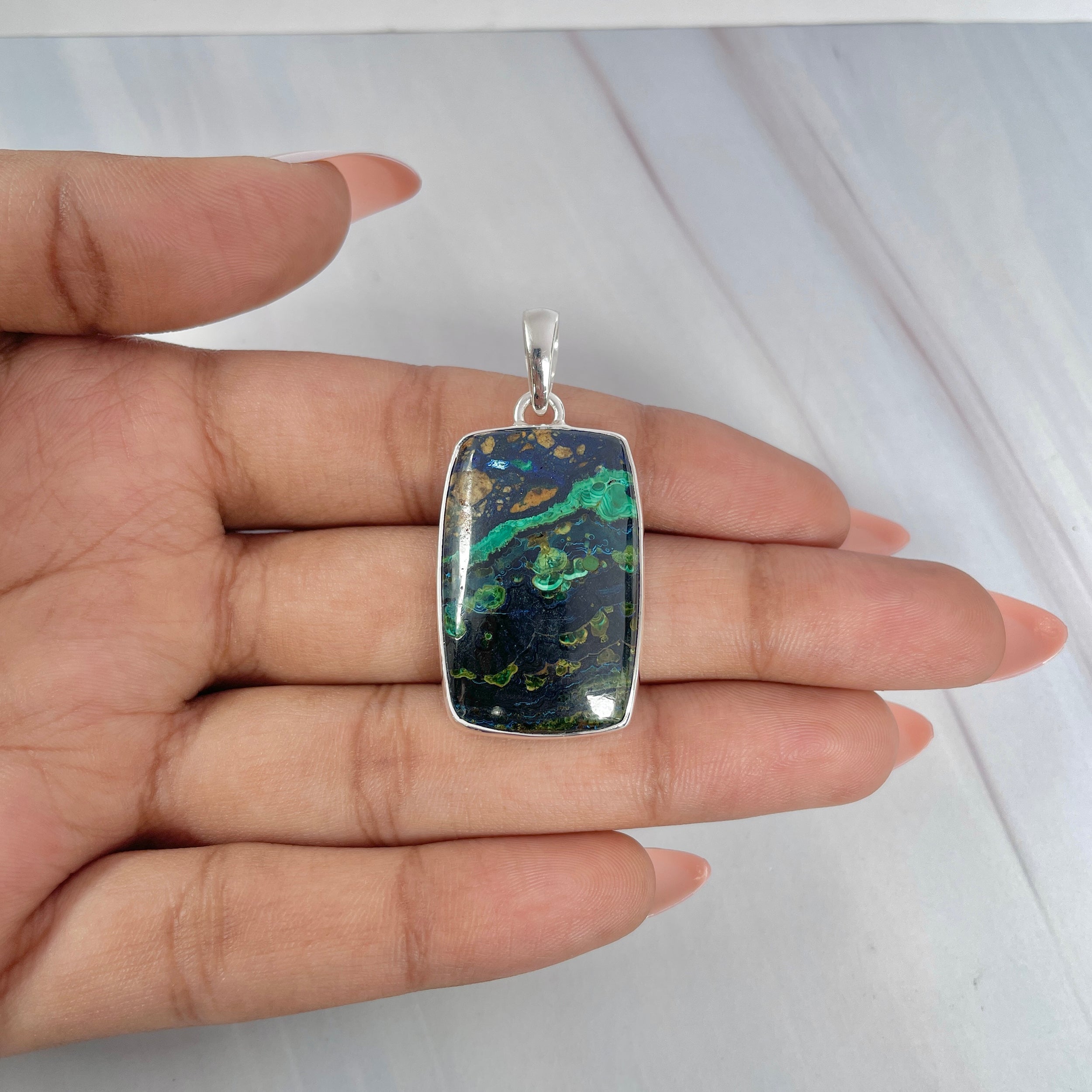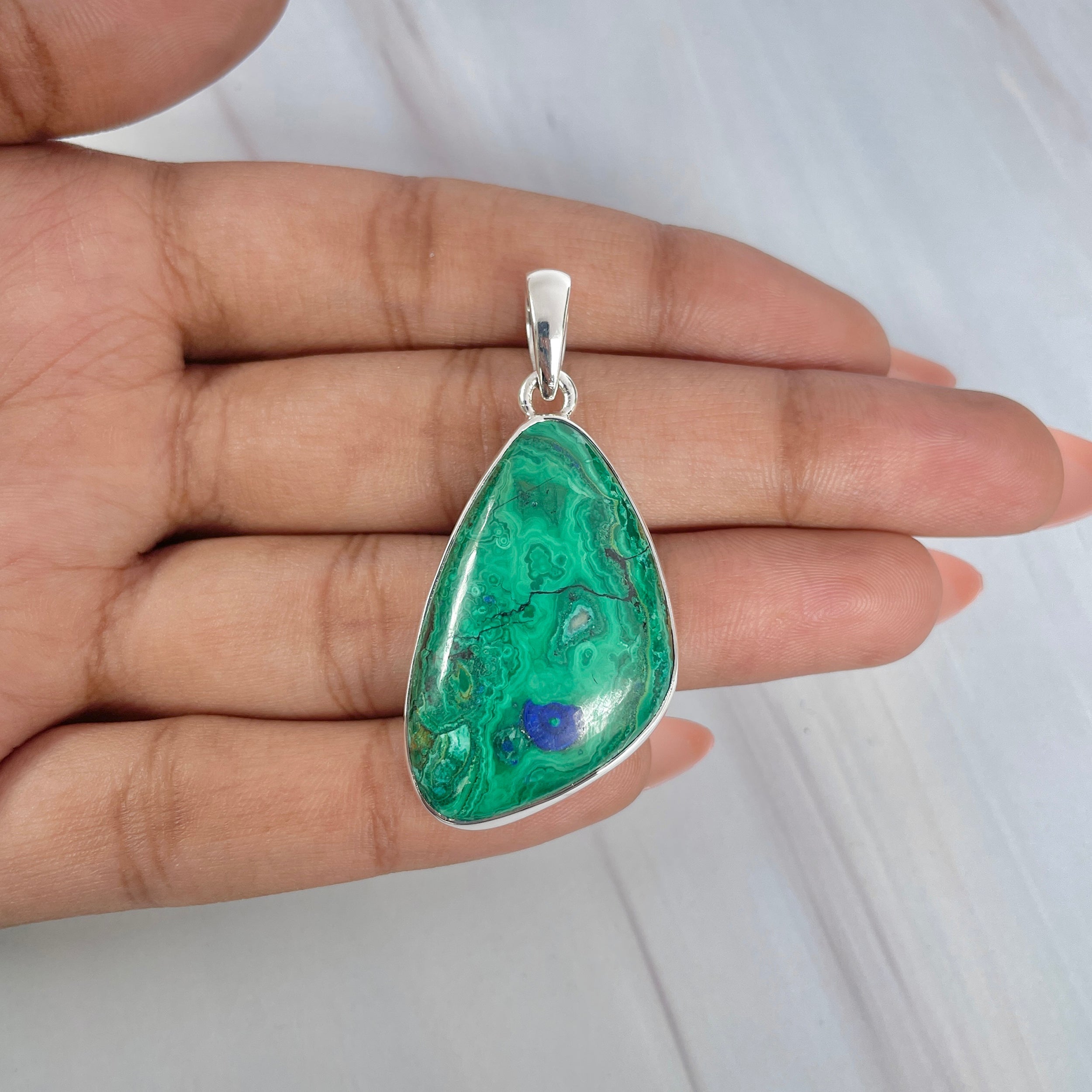 Azurite Malachite bears marvelous esoteric effects that stimulate the person to have a robust, uninterrupted spiritual transmission. It lets an individual acquire spiritual direction and advice and enrich psychic powers. This gemstone is often associated with fostering self-expression, creativity, and calmness. Wearable for its visual appeal or its alleged metaphysical qualities, Azurite Malachite jewelry is prized for its spiritual meaning and the good vibes it is said to infuse into one's existence.
