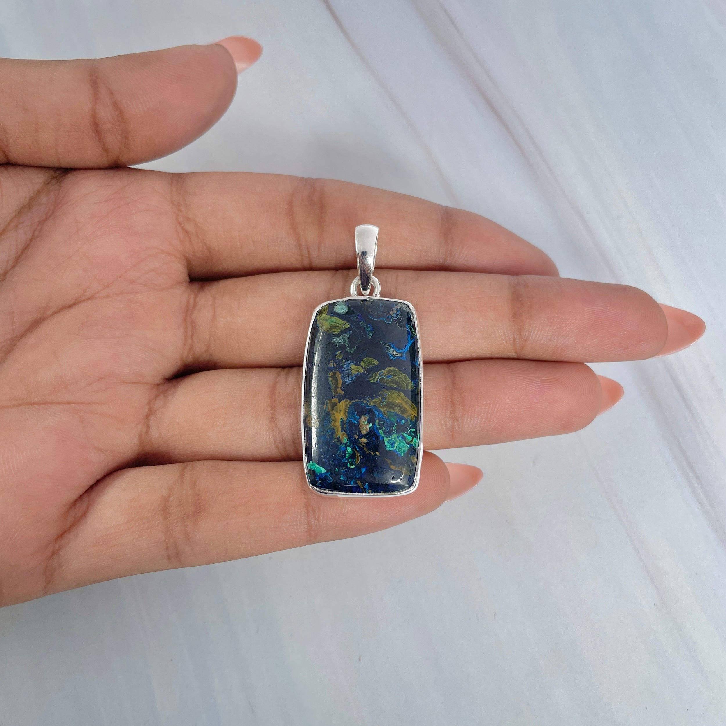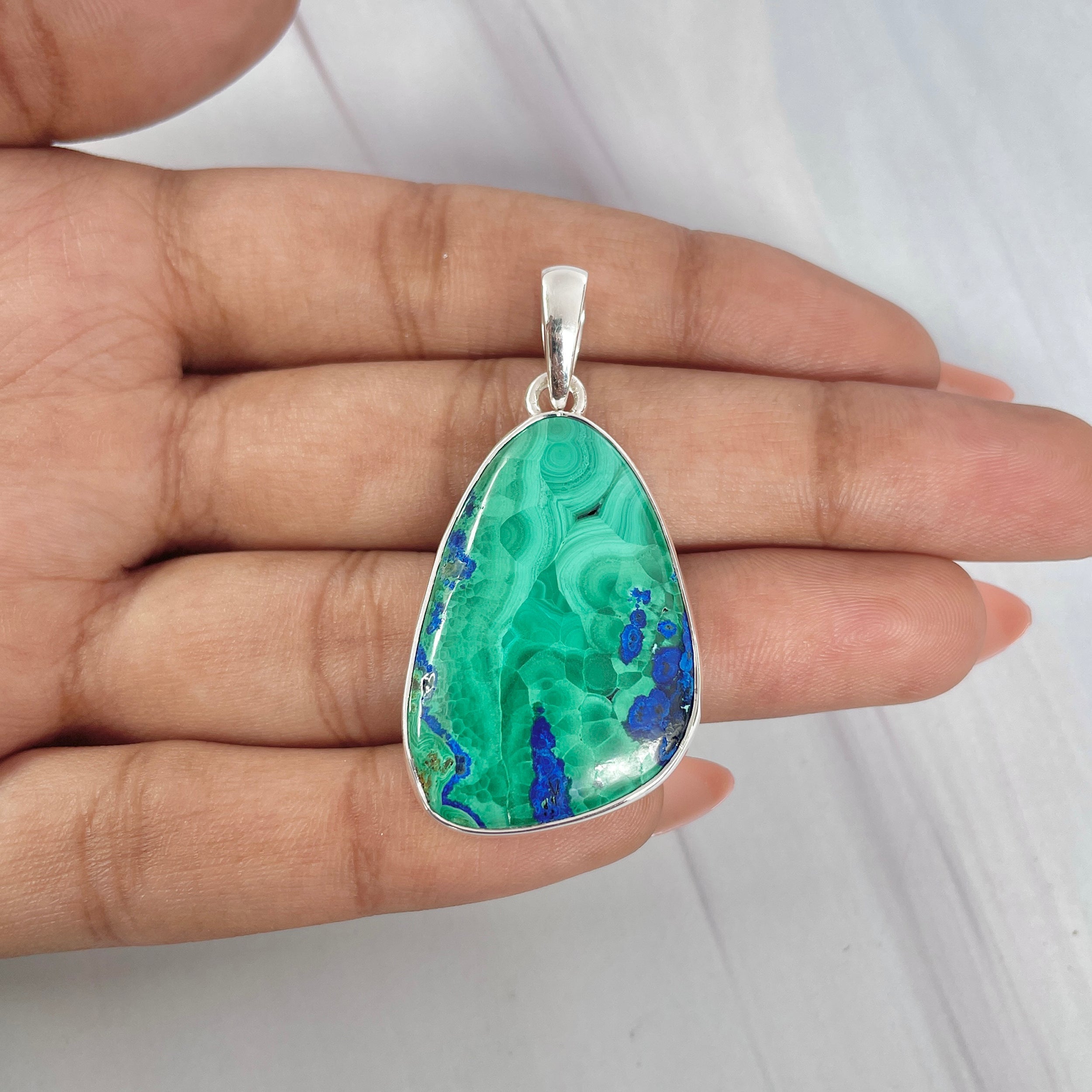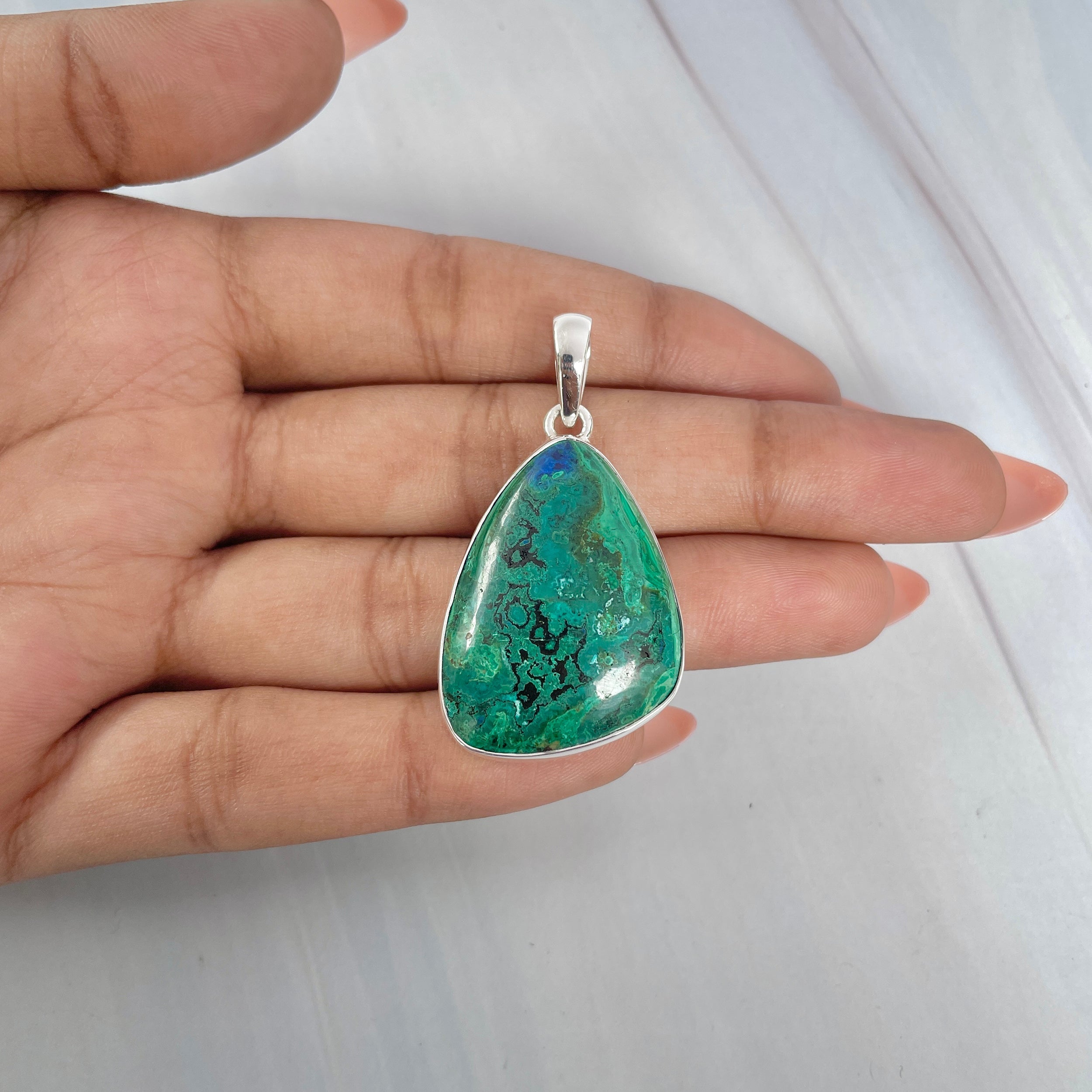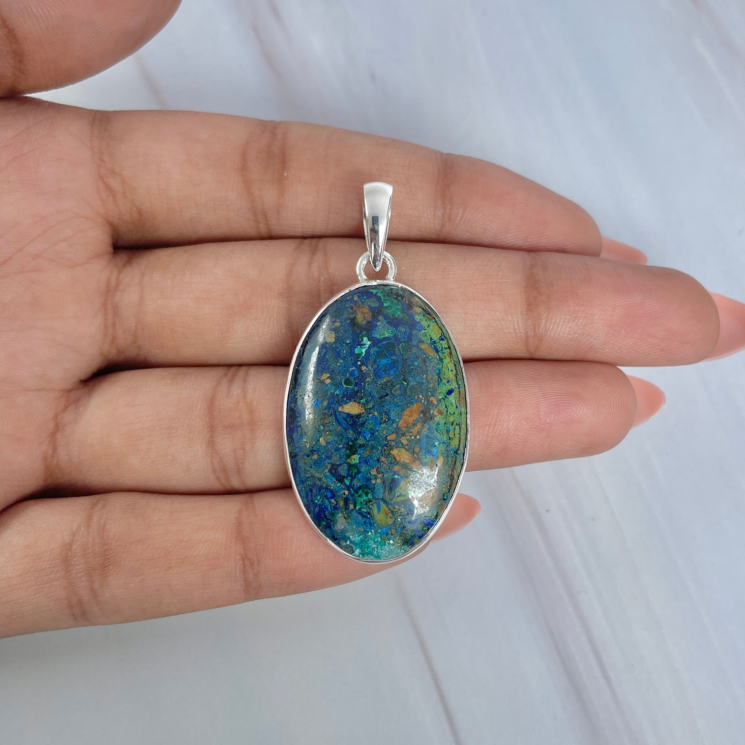 Azurite Malachite bears marvelous esoteric effects that stimulate the person to have a robust, uninterrupted spiritual transmission. It lets an individual acquire spiritual direction and advice and enrich psychic powers. This gemstone is often associated with fostering self-expression, creativity, and calmness. Wearable for its visual appeal or its alleged metaphysical qualities, Azurite Malachite jewelry is prized for its spiritual meaning and the good vibes it is said to infuse into one's existence.