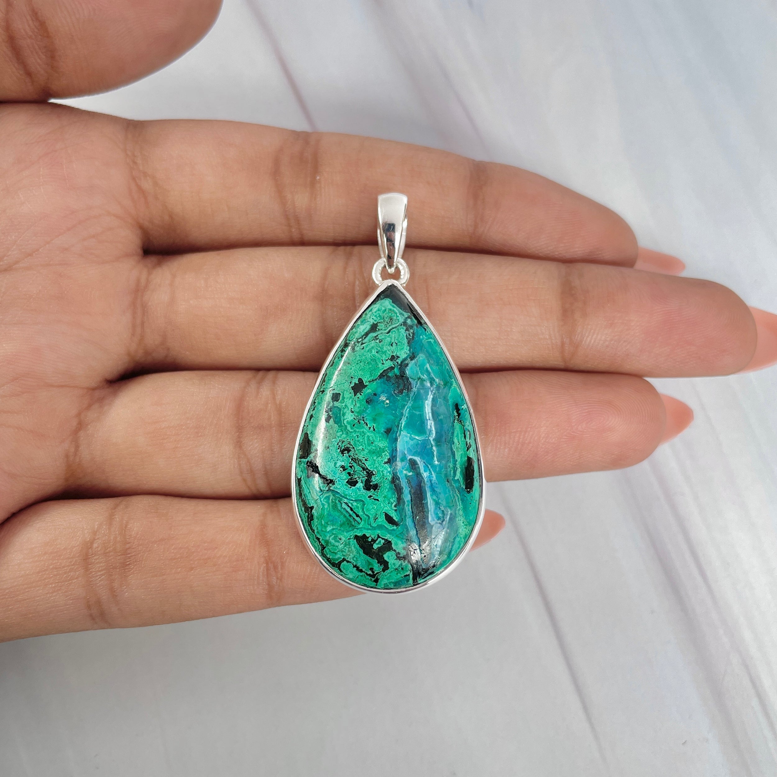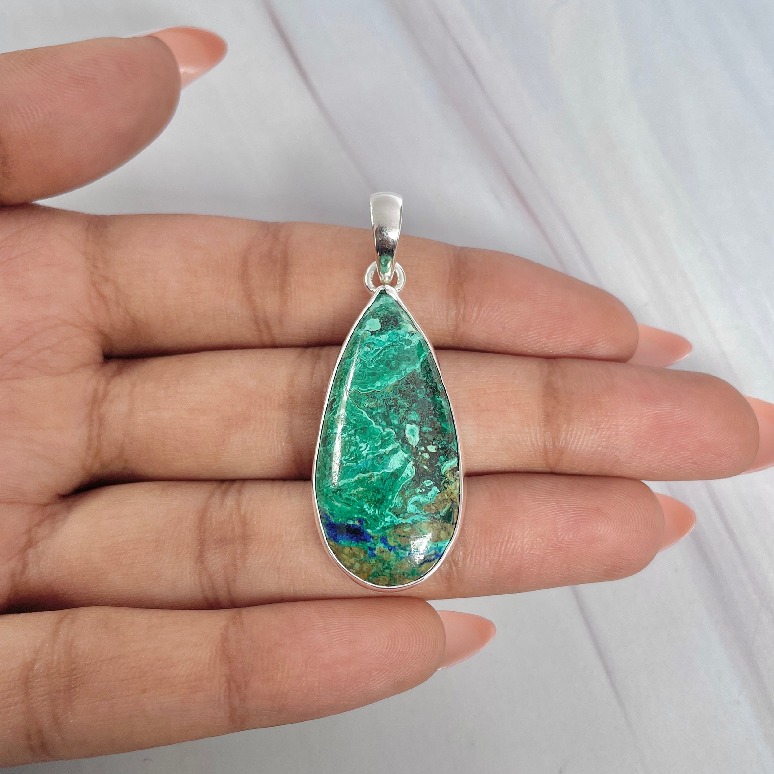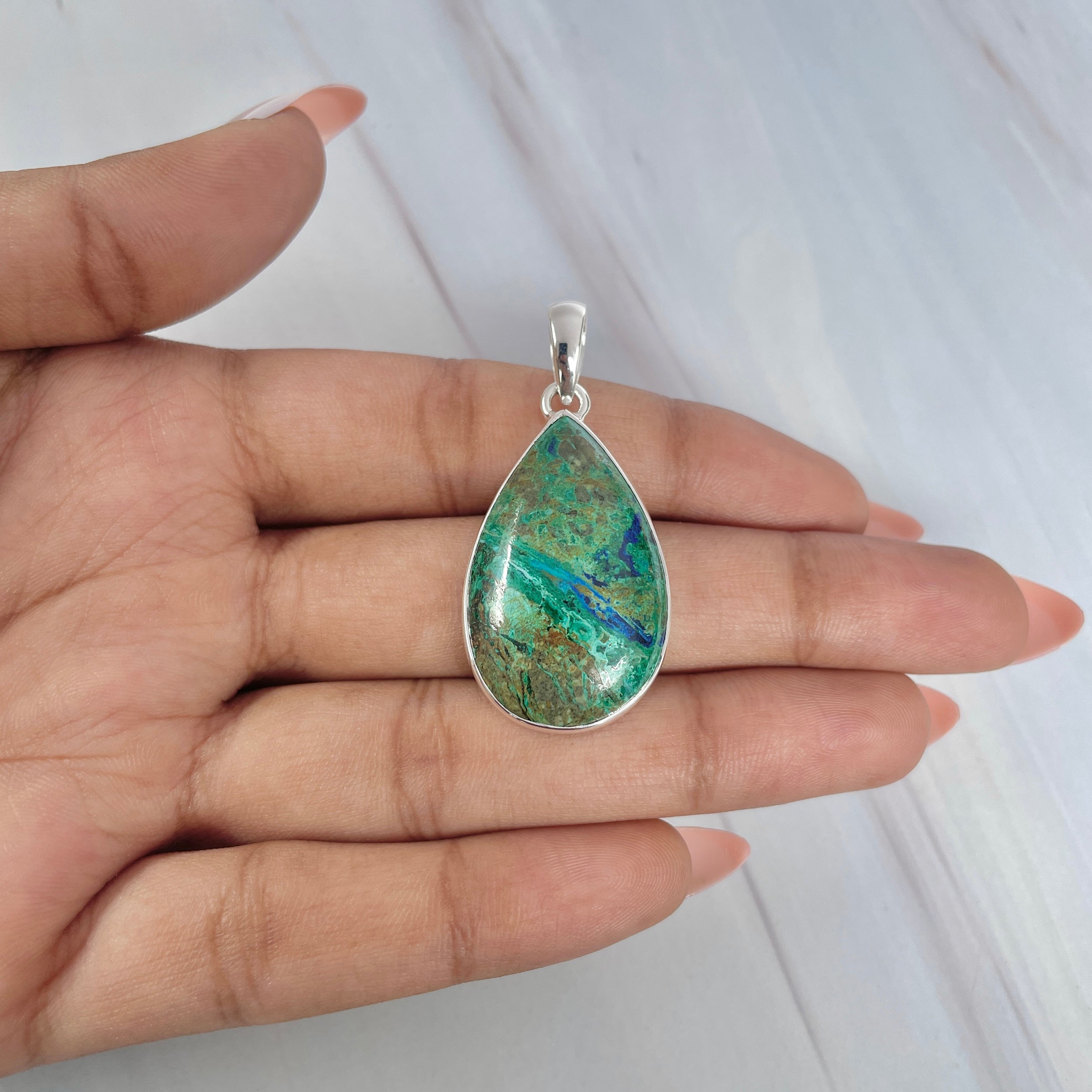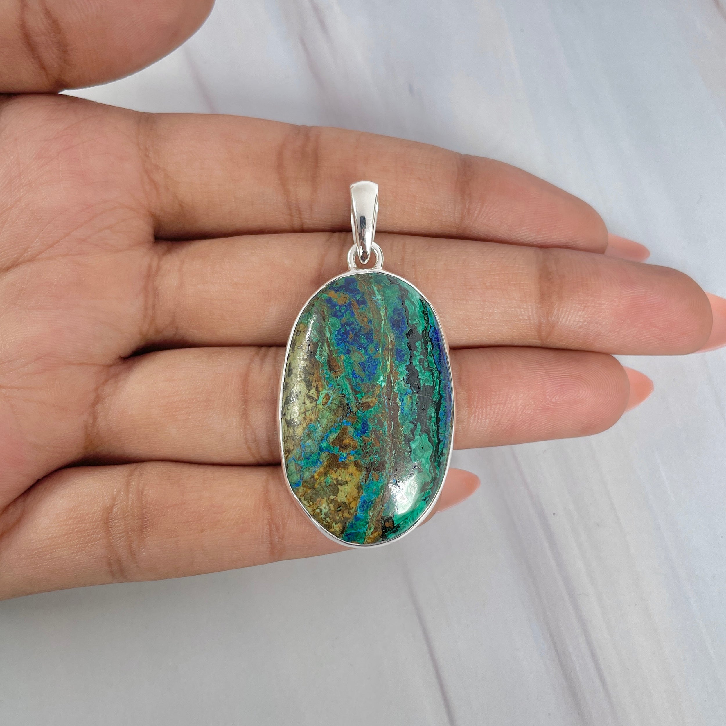 Alternatively, style a pair of statement Azurite Malachite earrings with fitted blazers or high-neck blouses to create an elegant look with a dash of sophistication. If you want a more laid-back appearance, use a statement Azurite Malachite pendant with jeans and basic tees to give your regular outfit a splash of color. Finally, to showcase the dazzling jewels, mix Azurite Malachite Jewelry accessories with sleek, monochrome outfits for a sophisticated evening look.