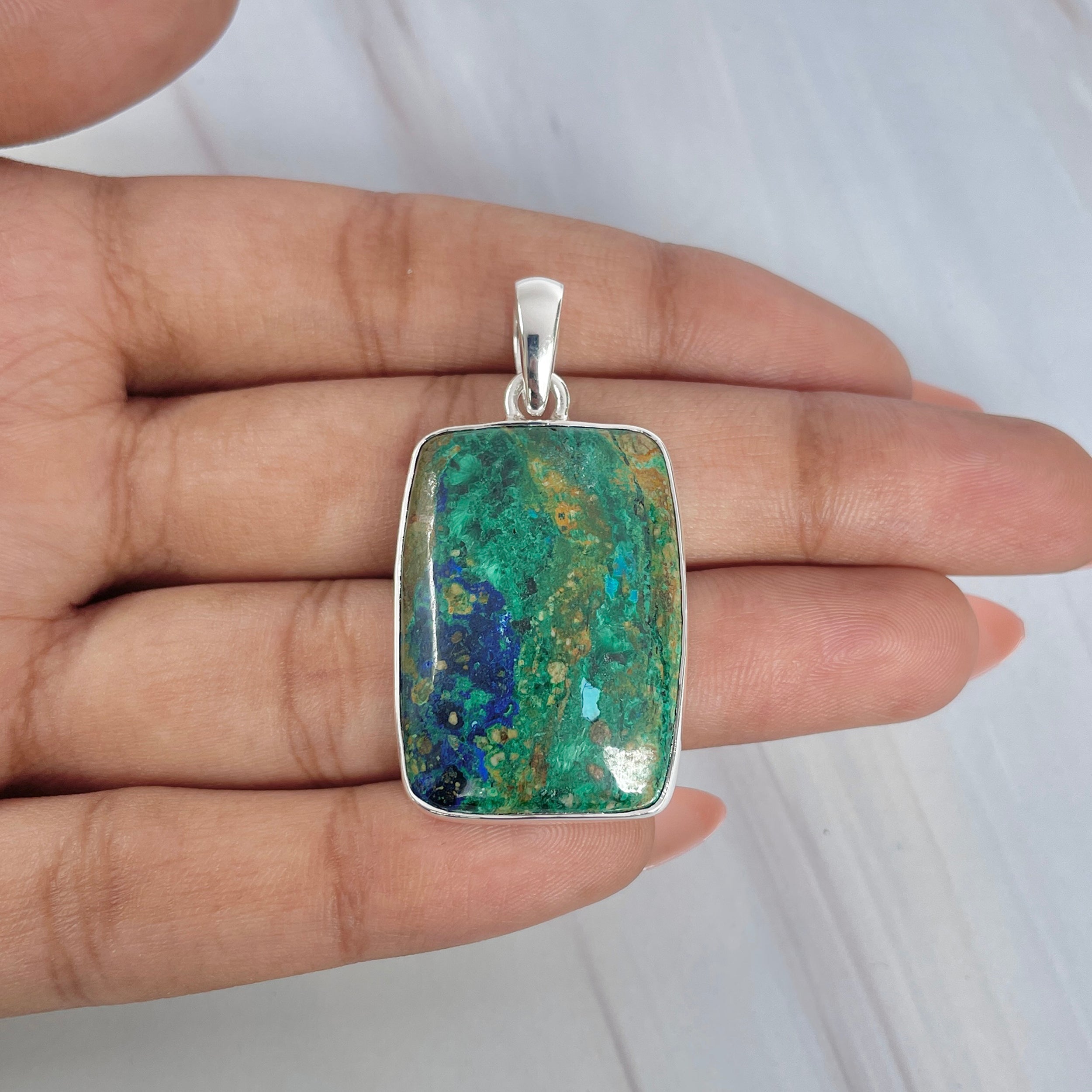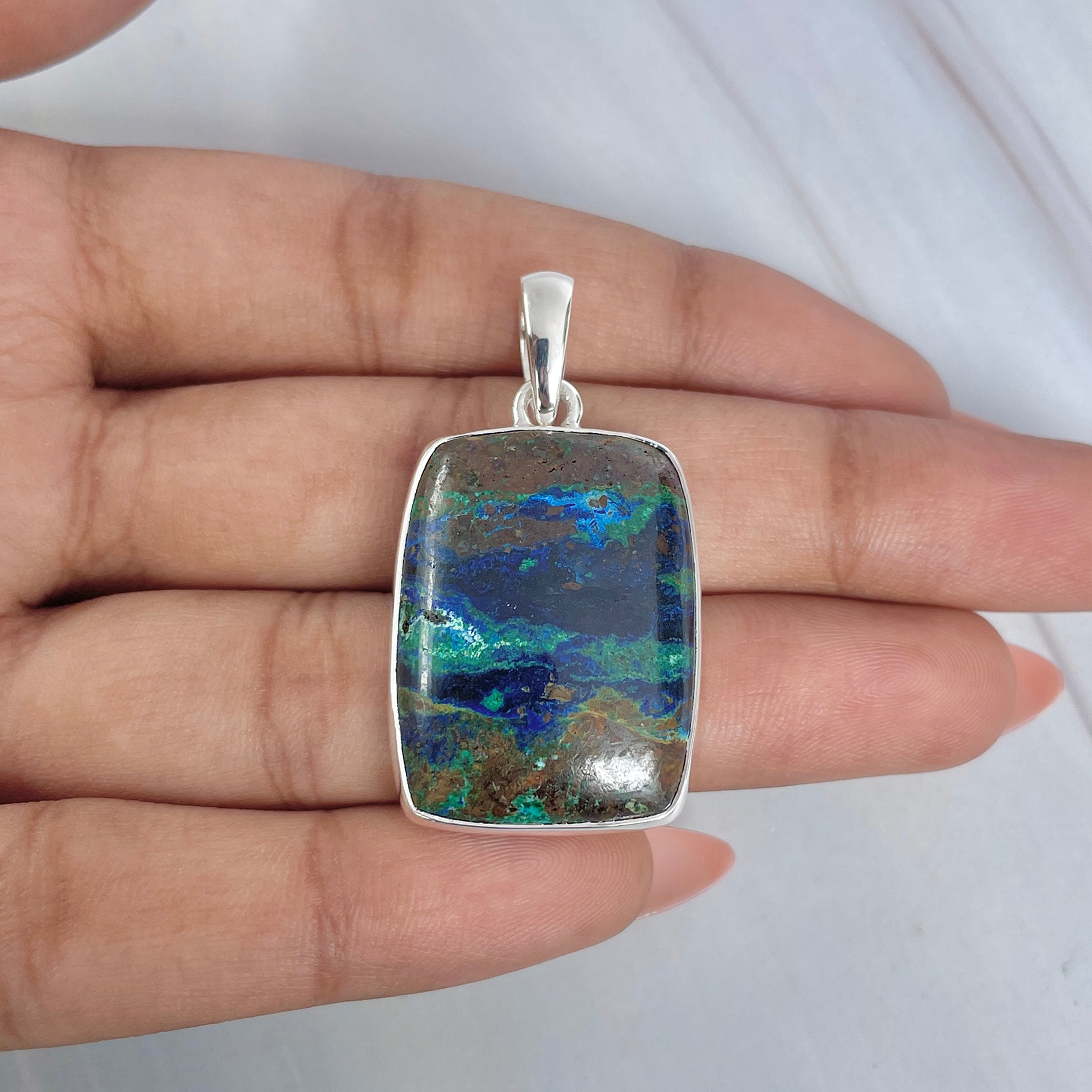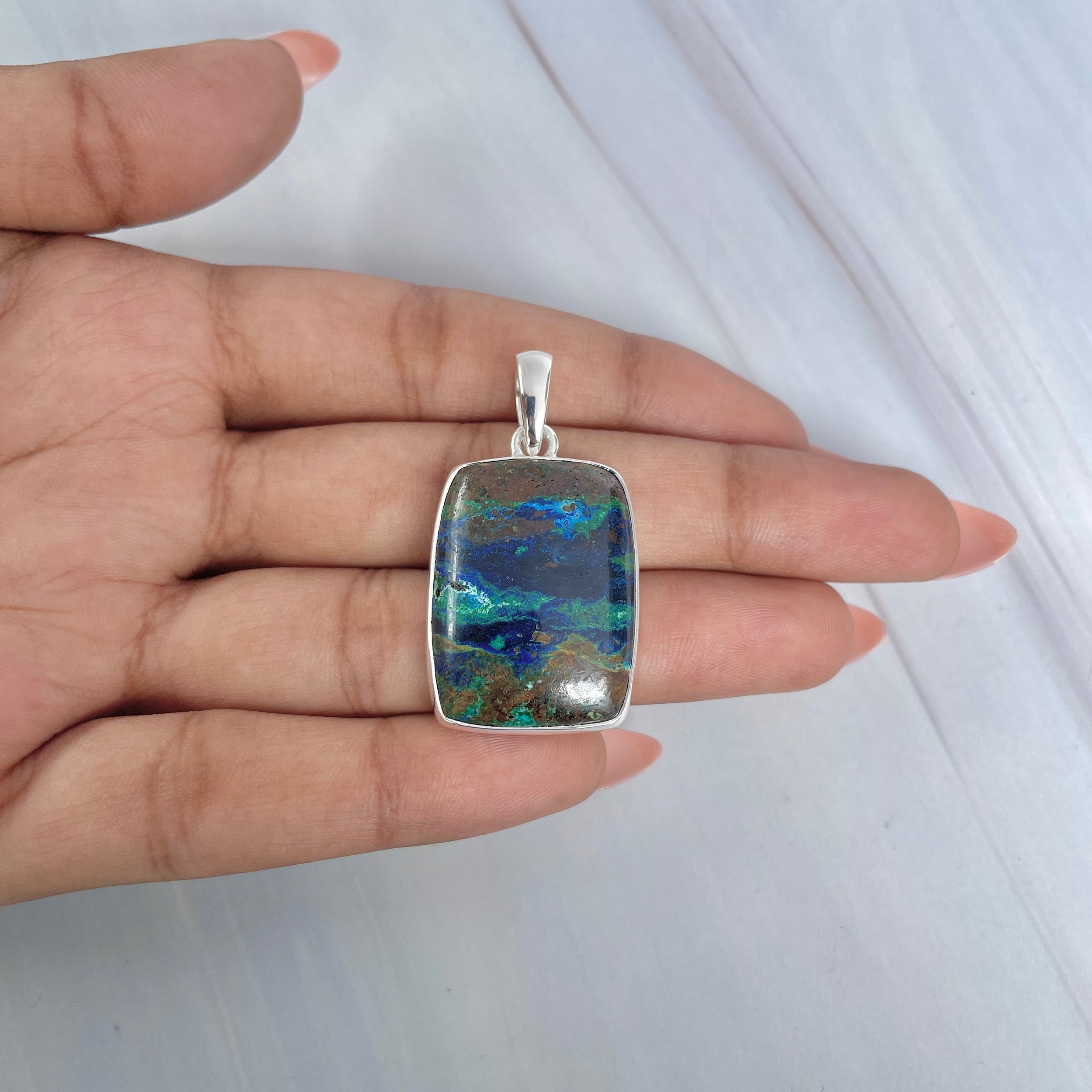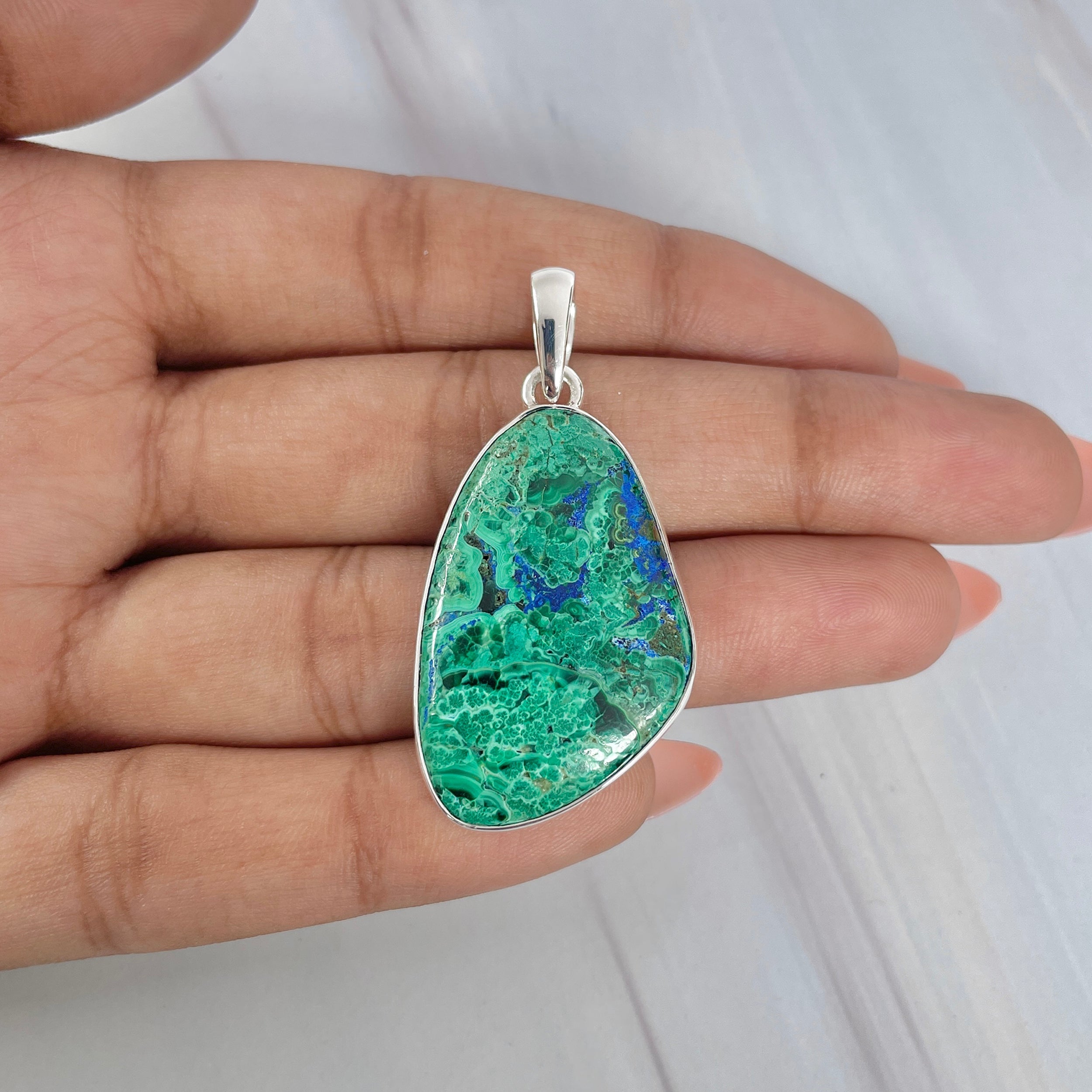 Wearing Azurite Malachite jewelry, such as rings, pendants, earrings, etc., in earthy tones to accentuate the stone's inherent colors is a stylish trend. A layered bracelet and flowing maxi skirts with a statement Azurite Malachite pendant create a whimsical, free-spirited boho style. Azurite Malachite jewelry often showcases intricate designs that highlight the stone's natural beauty, making each piece a distinctive accessory that enhances personal style with its artistic flair and timeless allure.