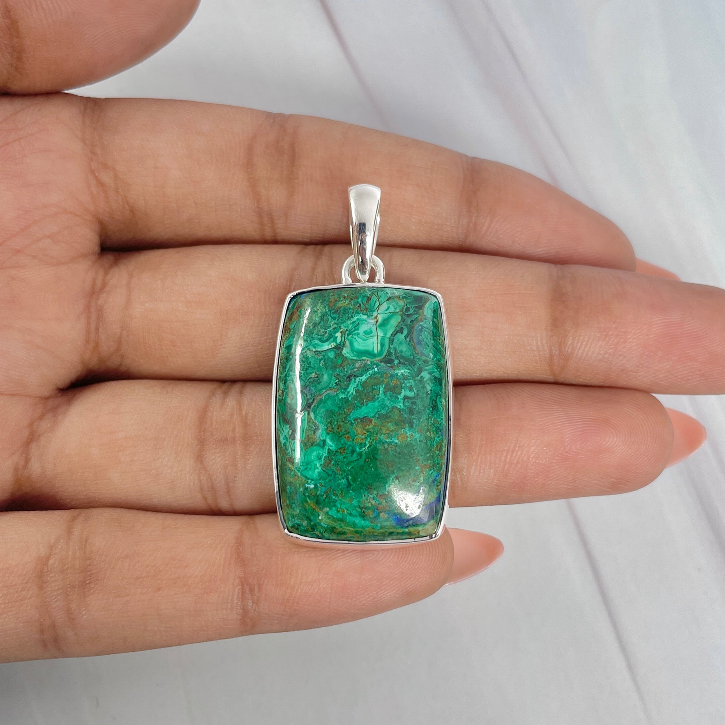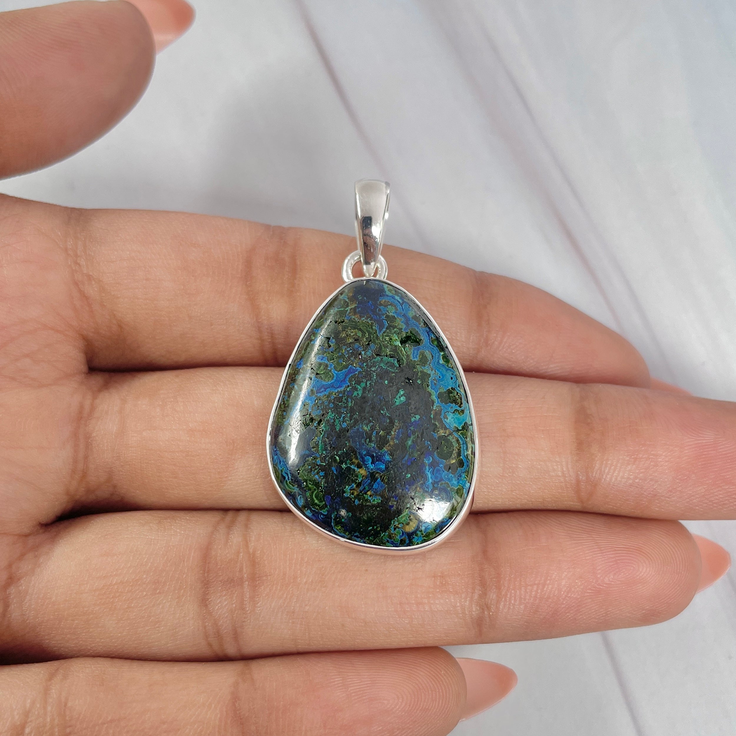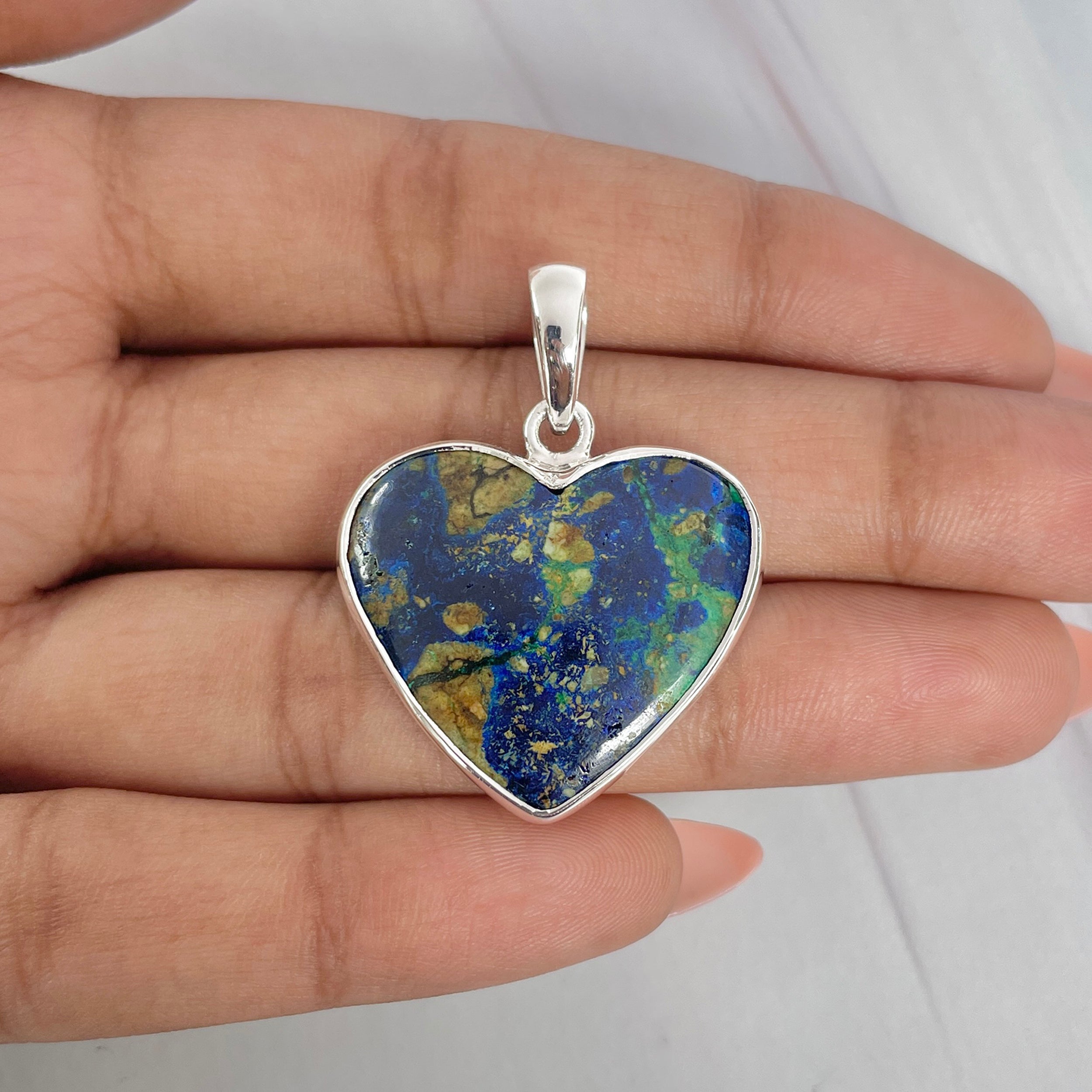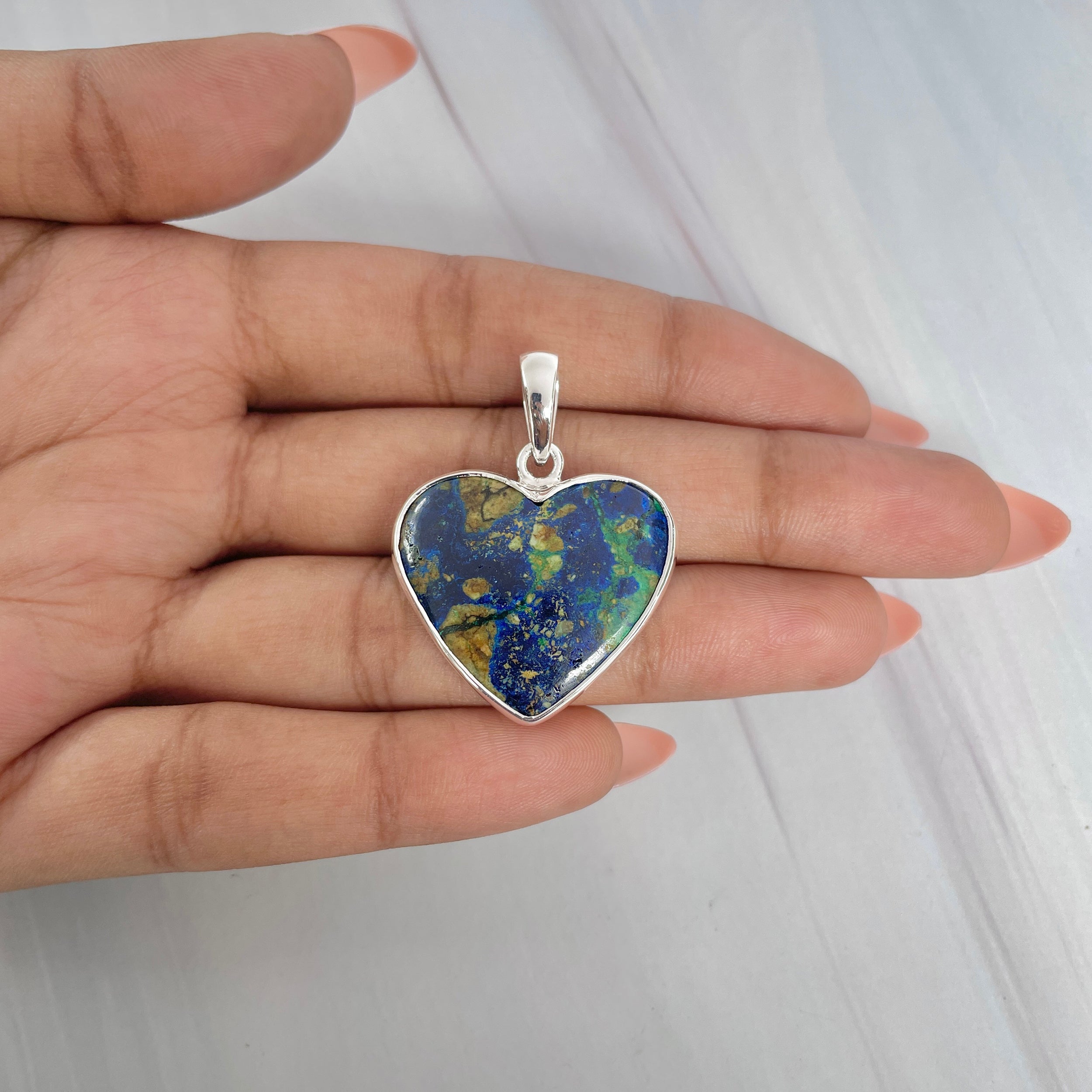 Wearing Azurite Malachite jewelry, such as rings, pendants, earrings, etc., in earthy tones to accentuate the stone's inherent colors is a stylish trend. A layered bracelet and flowing maxi skirts with a statement Azurite Malachite pendant create a whimsical, free-spirited boho style. Azurite Malachite jewelry often showcases intricate designs that highlight the stone's natural beauty, making each piece a distinctive accessory that enhances personal style with its artistic flair and timeless allure.