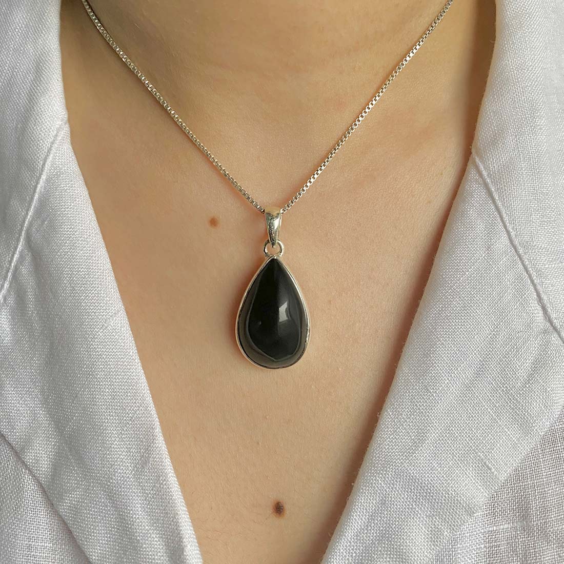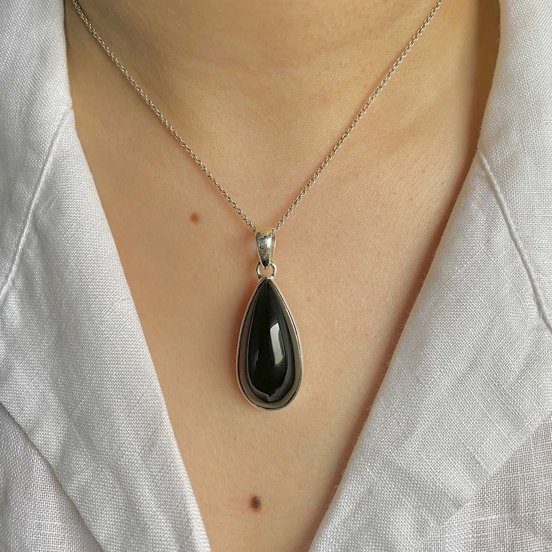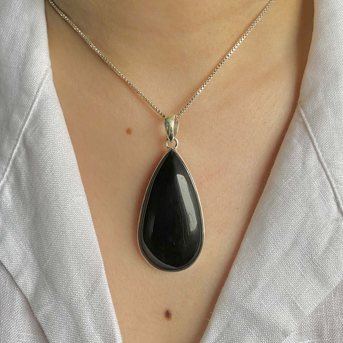 This incident leaves a pleasing, vitreous, and smooth glassy texture in black shades, creating charismatic Black Obsidian sterling silver Jewelry that flatters all skin tones and can be worn on any occasion. The soft, glass-like stone with a shiny surface ranks 5.5 on the Mohs hardness scale, meaning it is not an ideal choice to wear daily but can add interesting details on special occasions. Today, a vast variety of Black Obsidians can be found around the world, including Mexico, the United States, Iceland, Italy, Japan, Turkey, Russia, Greece, Hungary, etc.