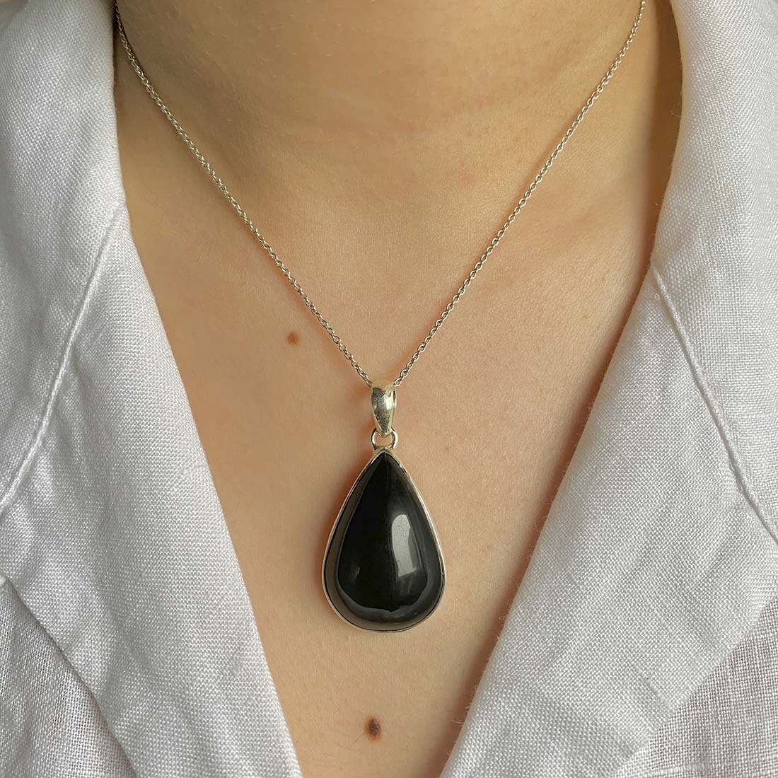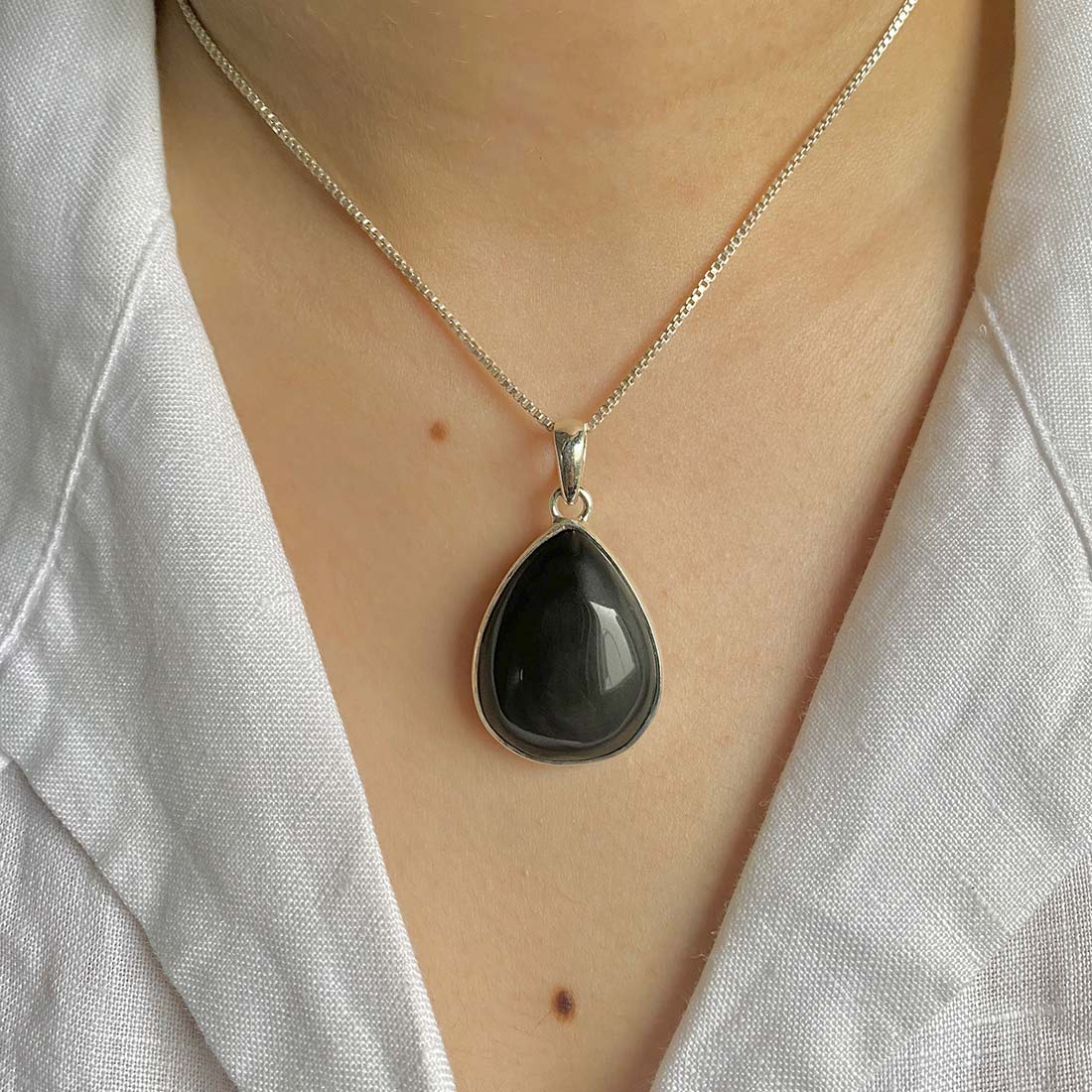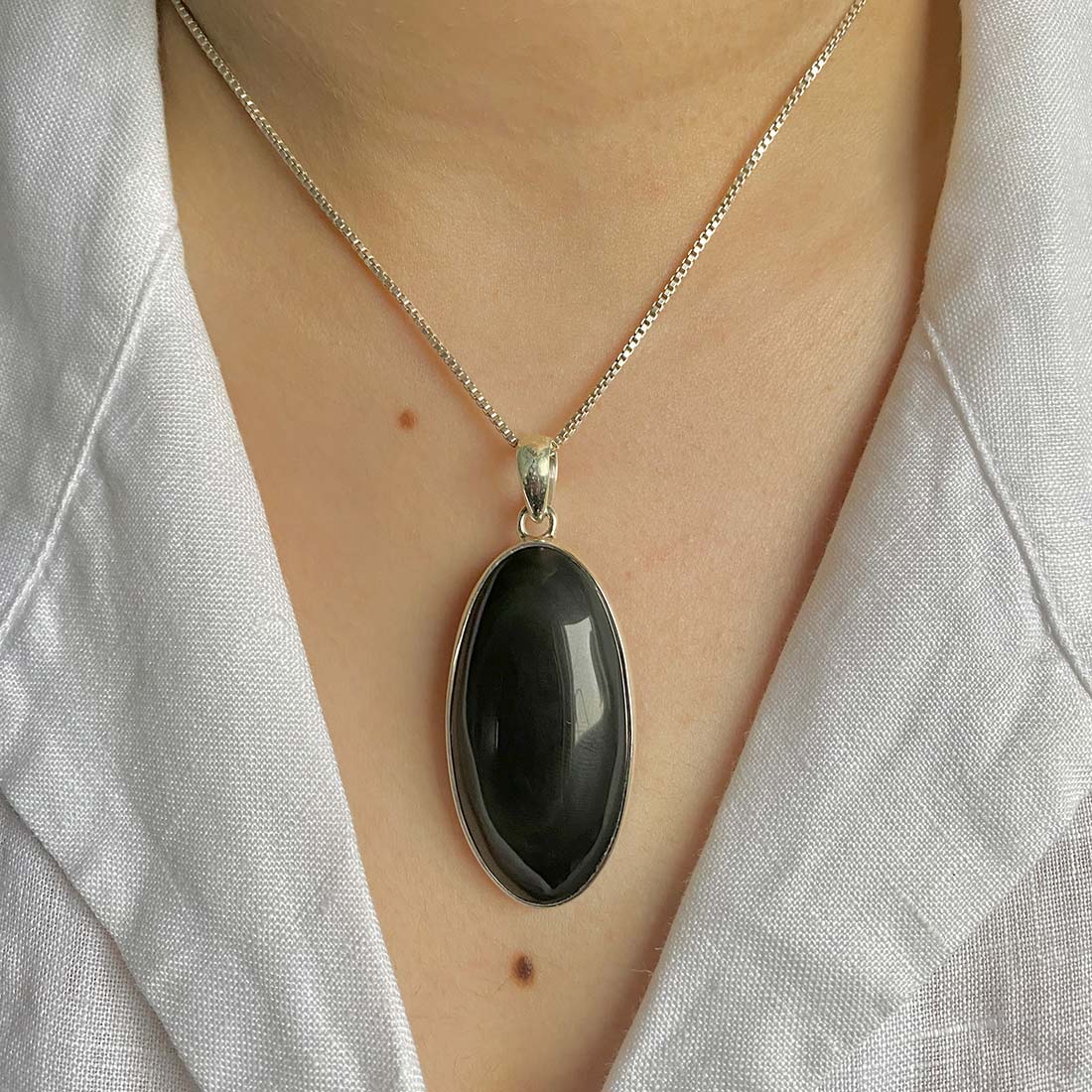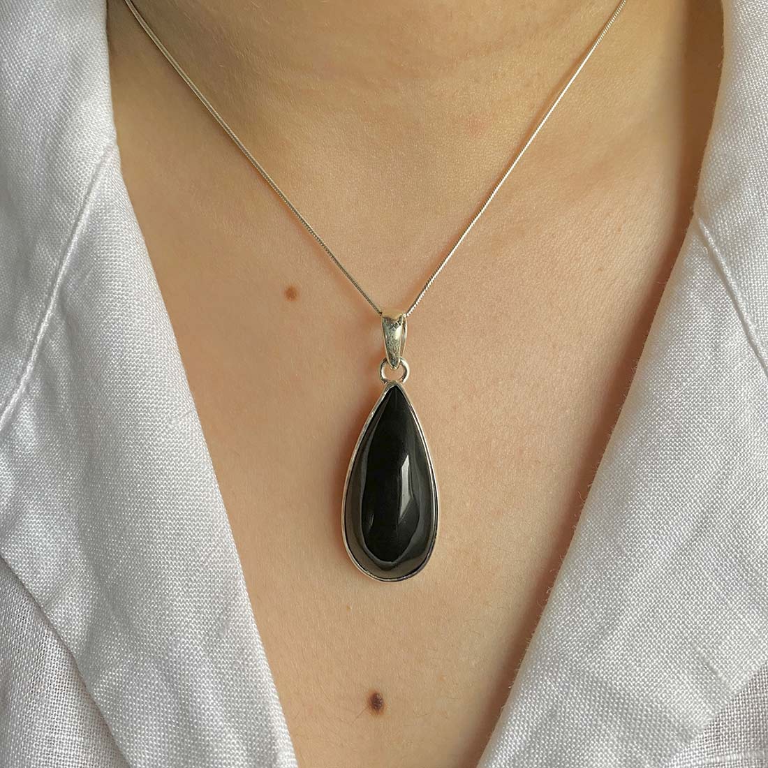 This incident leaves a pleasing, vitreous, and smooth glassy texture in black shades, creating charismatic Black Obsidian sterling silver Jewelry that flatters all skin tones and can be worn on any occasion. The soft, glass-like stone with a shiny surface ranks 5.5 on the Mohs hardness scale, meaning it is not an ideal choice to wear daily but can add interesting details on special occasions. Today, a vast variety of Black Obsidians can be found around the world, including Mexico, the United States, Iceland, Italy, Japan, Turkey, Russia, Greece, Hungary, etc.