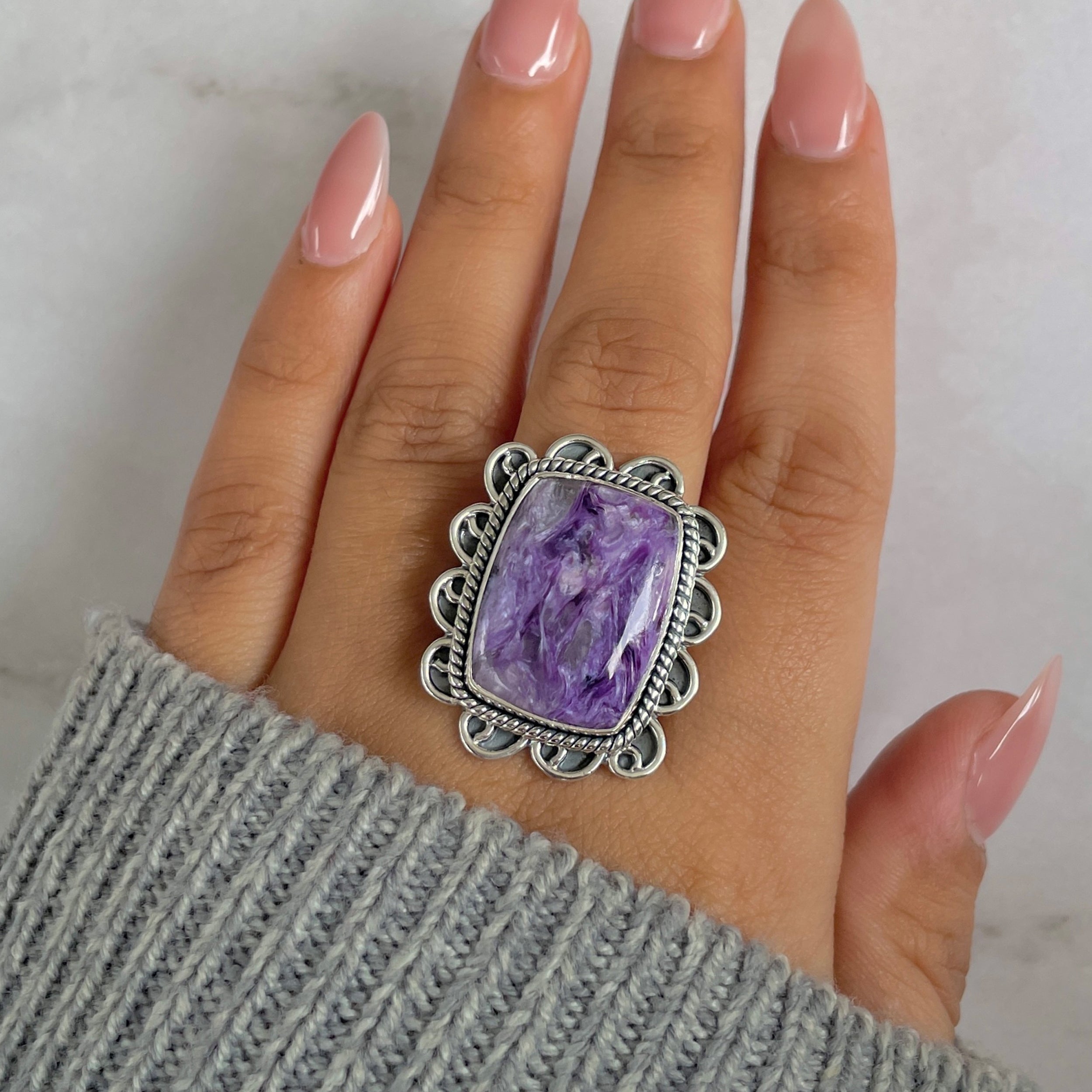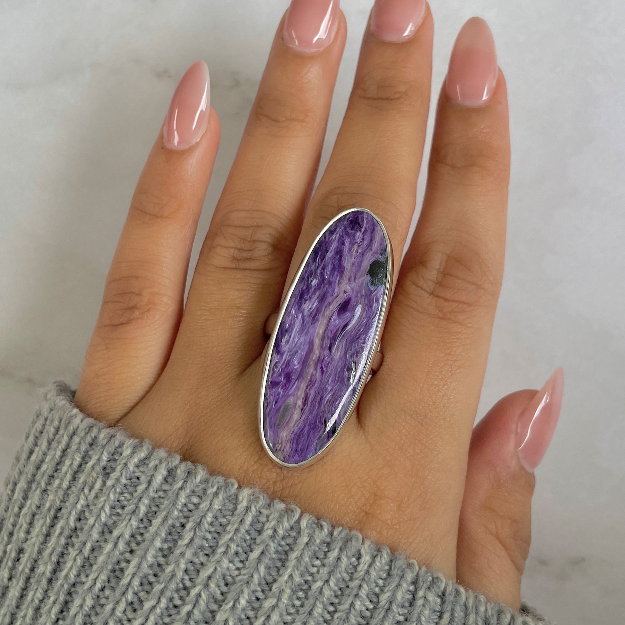 A statement Charoite ring can provide the perfect contrast, whether attending a formal function or just wanting to dress up your everyday wardrobe. Its striking purple hue and intricate patterns match every skin tone and style. Put on a lengthy chain and choose a statement Charoite pendant. The statement Charoite jewelry can be styled in various ways, being a selection to create an ideal look for every situation, from traditional to bohemian style.