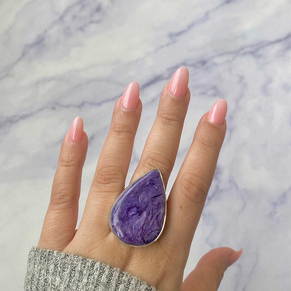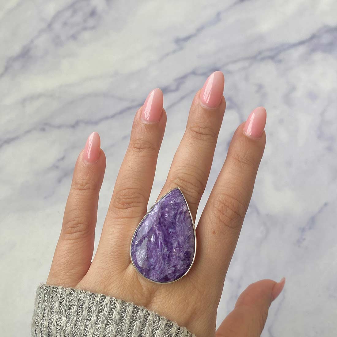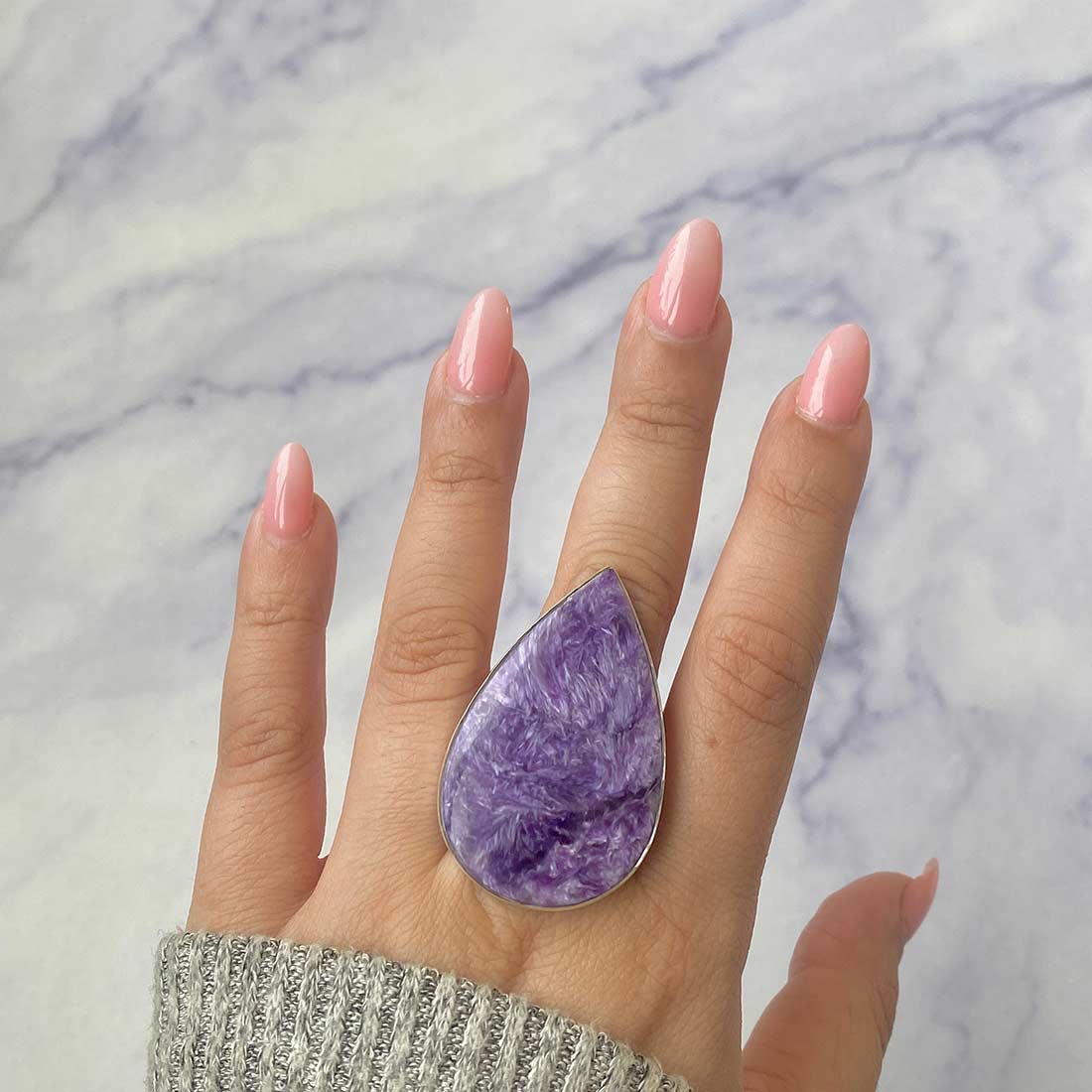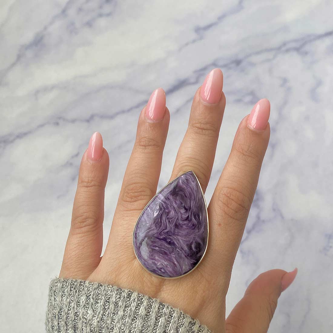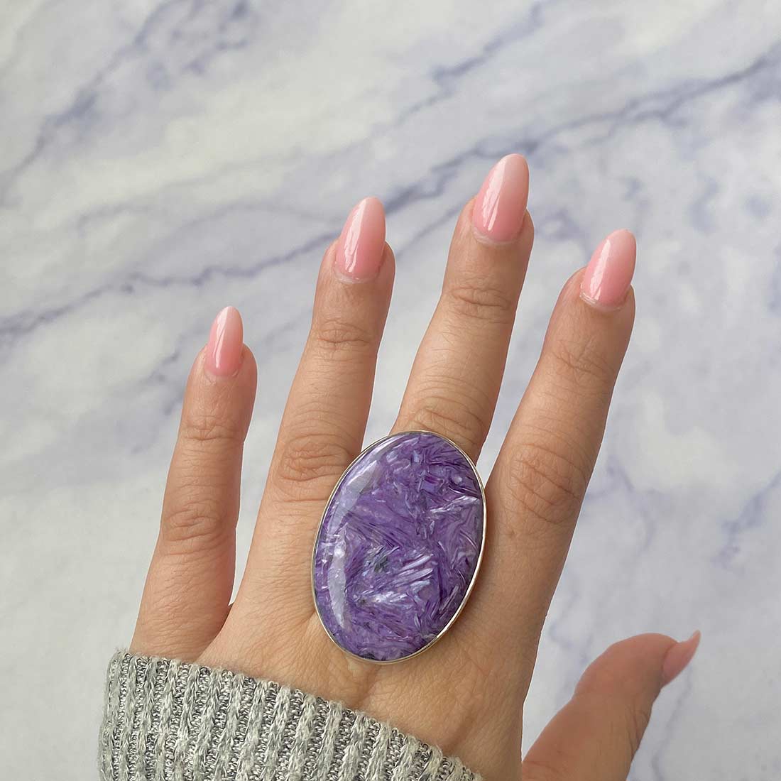 A statement Charoite ring can provide the perfect contrast, whether attending a formal function or just wanting to dress up your everyday wardrobe. Its striking purple hue and intricate patterns match every skin tone and style. Put on a lengthy chain and choose a statement Charoite pendant. The statement Charoite jewelry can be styled in various ways, being a selection to create an ideal look for every situation, from traditional to bohemian style.
