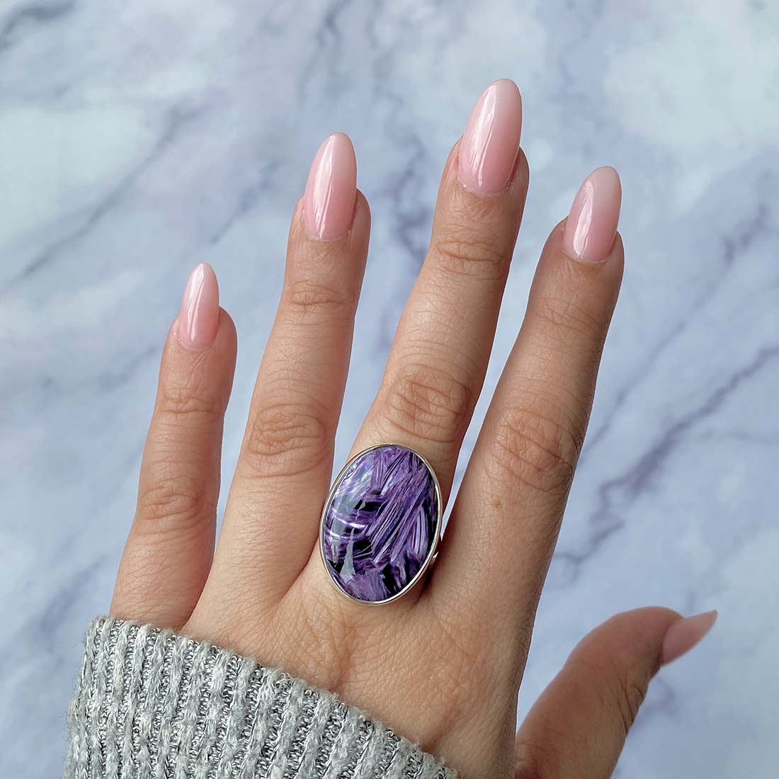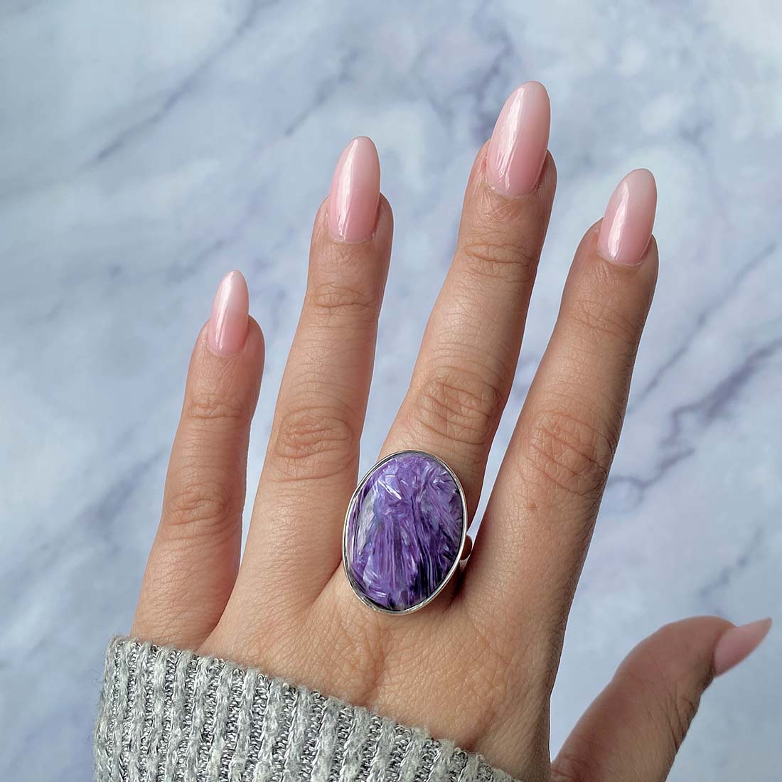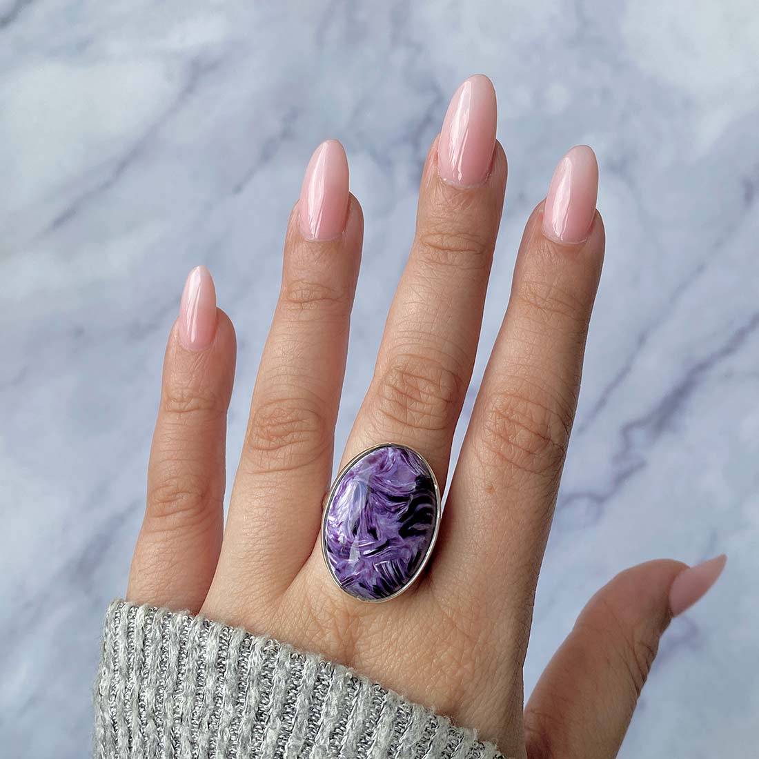 A statement Charoite ring can provide the perfect contrast, whether attending a formal function or just wanting to dress up your everyday wardrobe. Its striking purple hue and intricate patterns match every skin tone and style. Put on a lengthy chain and choose a statement Charoite pendant. The statement Charoite jewelry can be styled in various ways, being a selection to create an ideal look for every situation, from traditional to bohemian style.