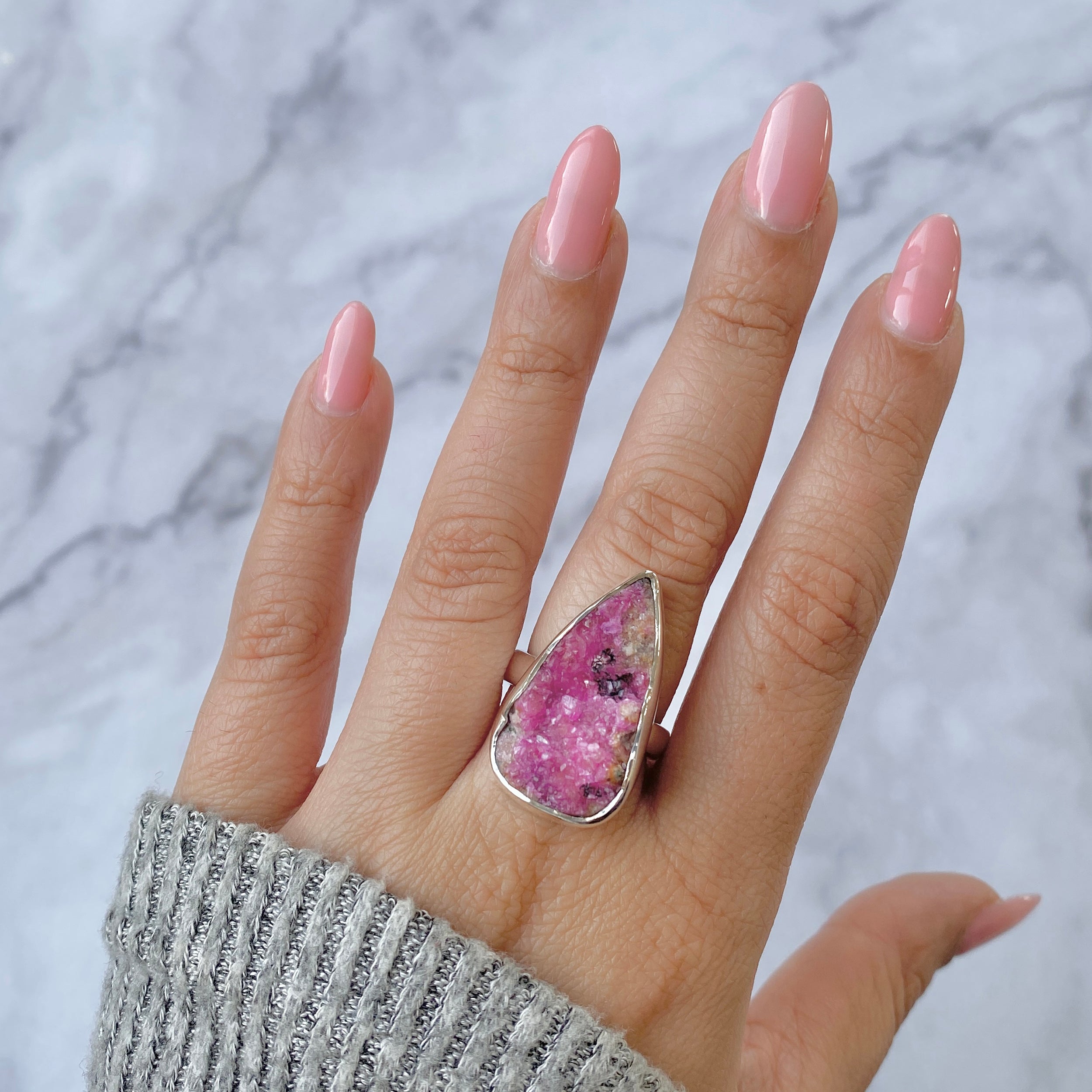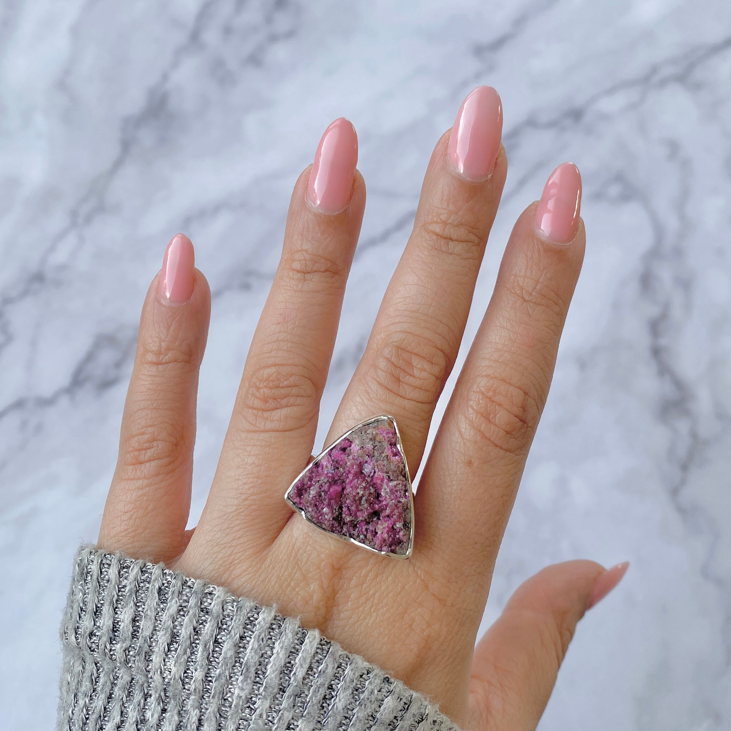 According to the Mohs scale of hardness, Cobalt Calcite holds a score between 3 and 4. It means you can wear your Cobalt Calcite Jewelry on special days due to its delicacy and vulnerability against everyday breakages. It emerges in pale to dark pink, reddish-pink, and pinkish-purple color which elevates an outfit without overwhelming the look. It is a member of the calcite mineral group and is crystallized in the Trigonal crystal structure. It appears with uneven bands of white fibrous inclusions that might create a mosaic design or white particles with a striped formation. This stone can be transparent to translucent. Cobalt Calcite Jewelry exhibits a vitreous to pearly brilliance with a colorless to white streak and has a refractive index of 1.490-1.885.