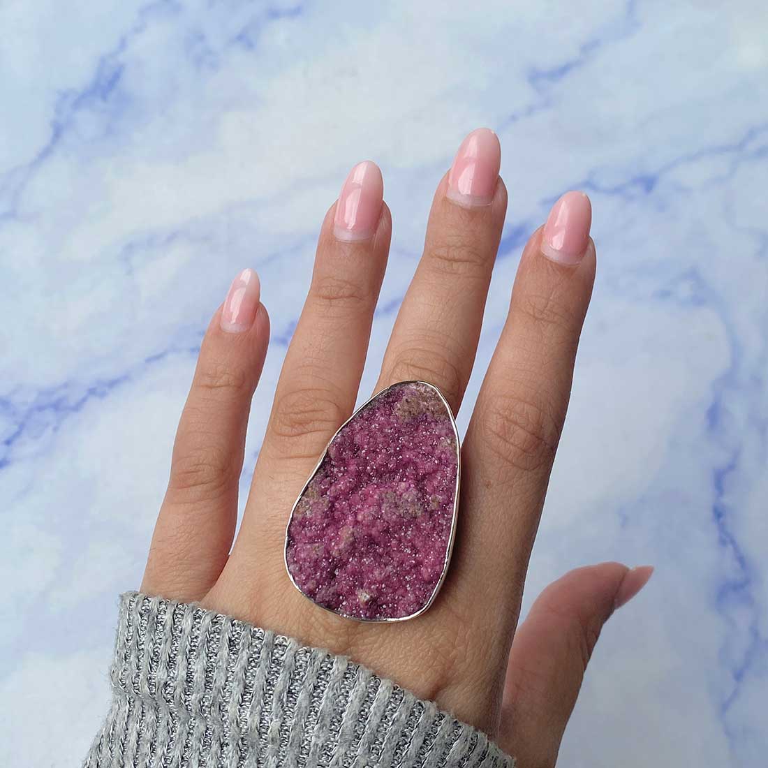 The gorgeous Cobalt Calcite jewelry pieces are so exquisite that they will win your heart and enhance your cuteness. For a summery, boho look, team a statement Cobalt Calcite pendant with a flowy maxi dress, layered necklaces, and a floppy cap. You can add a touch of shine to your artsy appearance by wearing statement Cobalt Calcite rings when you experiment with multiple ensembles and wear apparel with many colors and unusual prints.
