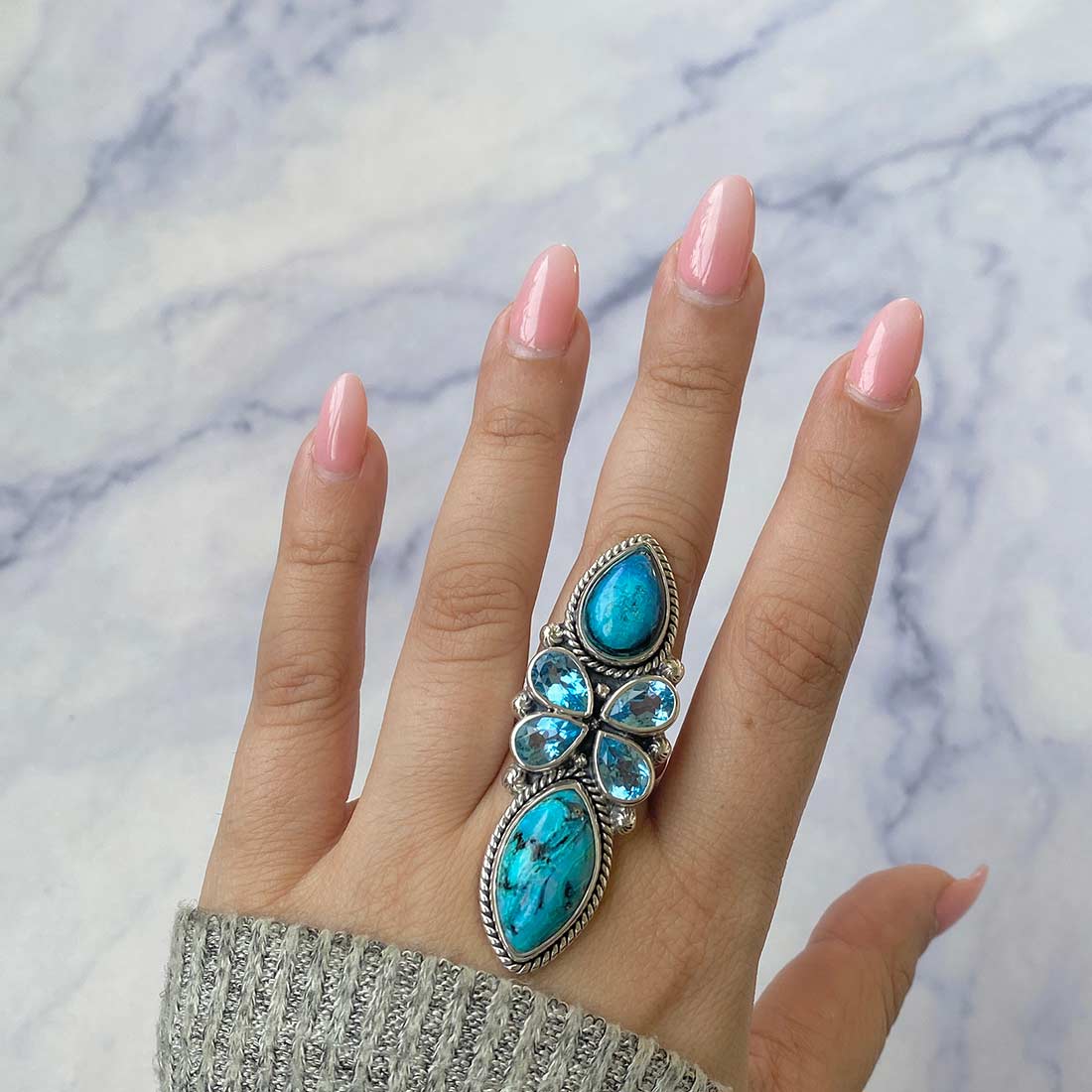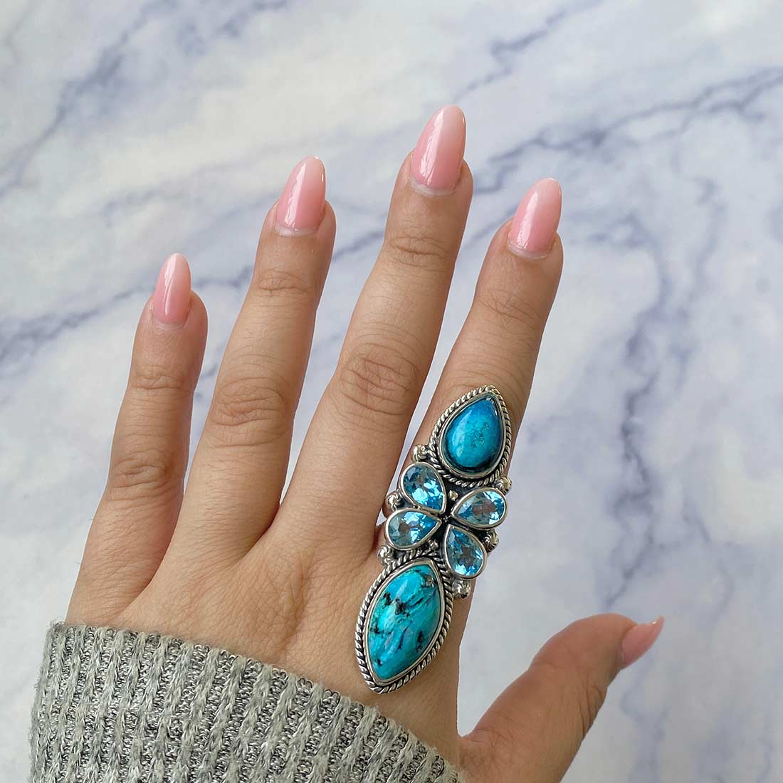 After acquiring so many facts and knowledge about the crawler statement rings, we can conclude that the gemstones possessed in these rings have proved to be the best companion for the wearer. And now, if we talk about its styling element, the crawler statement ring can be styled iconically with the turquoise bracelet and blue topaz necklace, which can give an ultimate bohemian vibe at any event. As it not only embraces your beauty with its charming styling elements but also embraces your soul with power-pack healing properties.