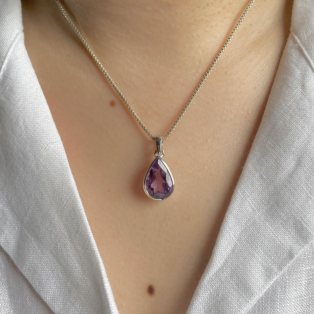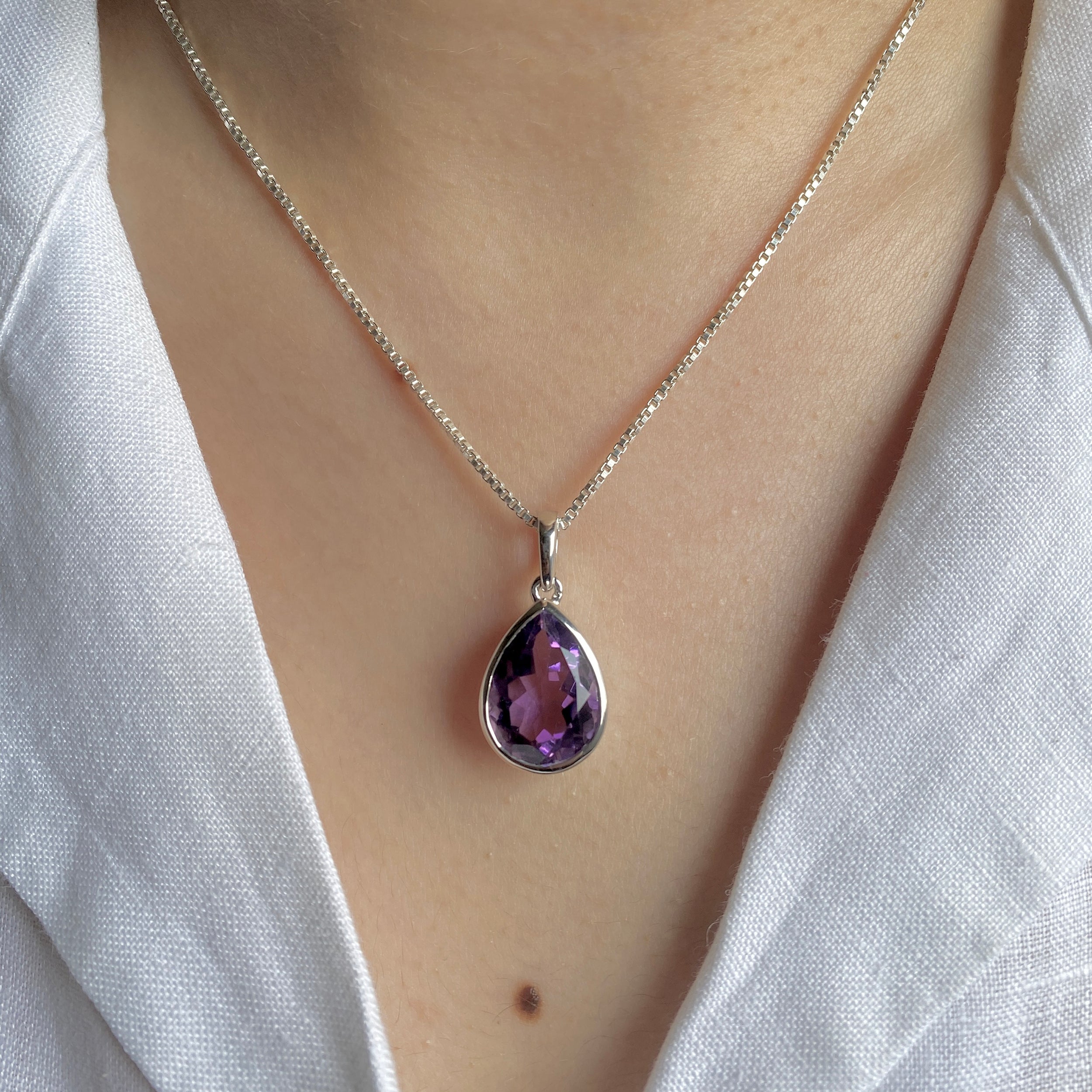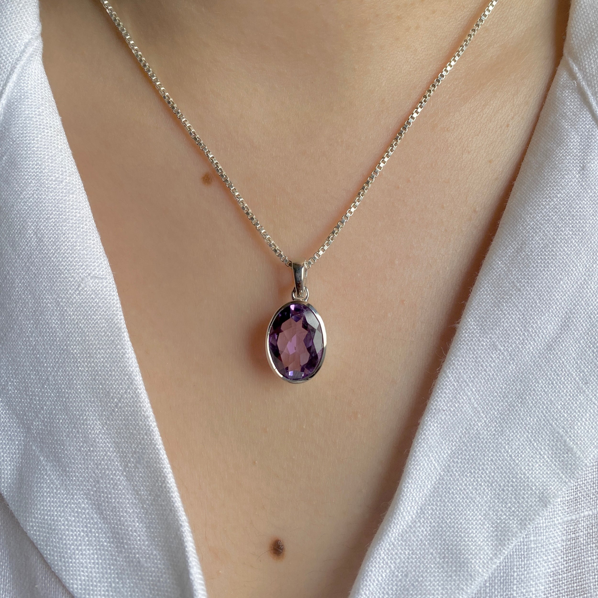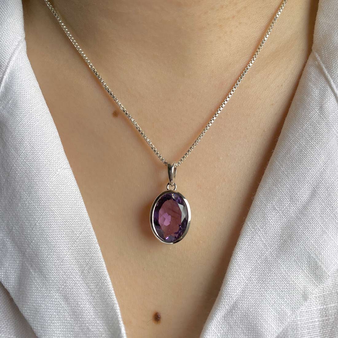 Today, the beautiful gem is found in many parts of the world, including Brazil, India, Mexico, Africa, South America, Canada, Pakistan, Zambia, Spain, Bolivia, and the United States. Plus, a hardness of 7 on the Mohs scale creates durable and scratch-resistant Amethyst necklaces you can wear daily. The stone is usually translucent, making people gaze upon 925 sterling silver Amethyst pendants without blinking an eye.