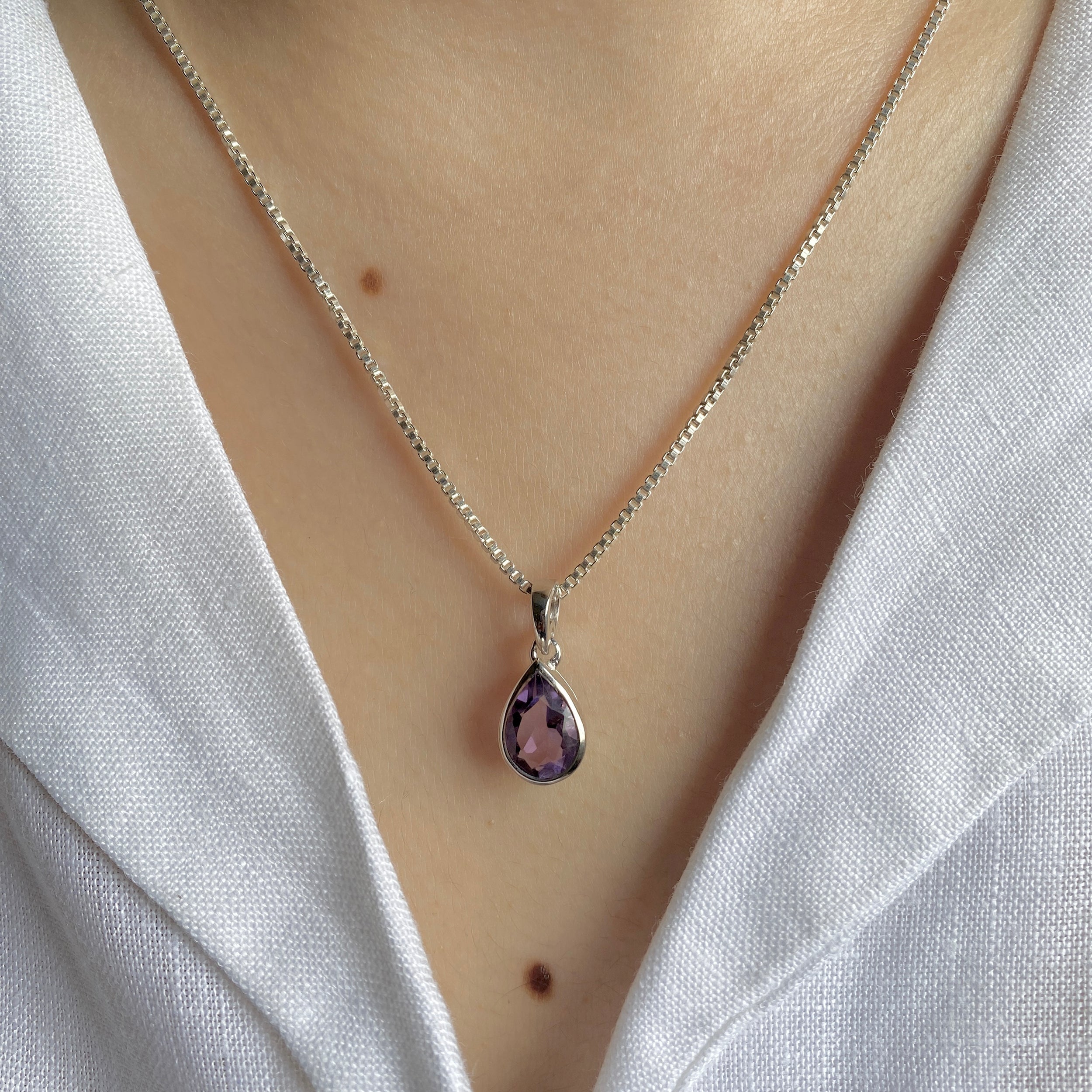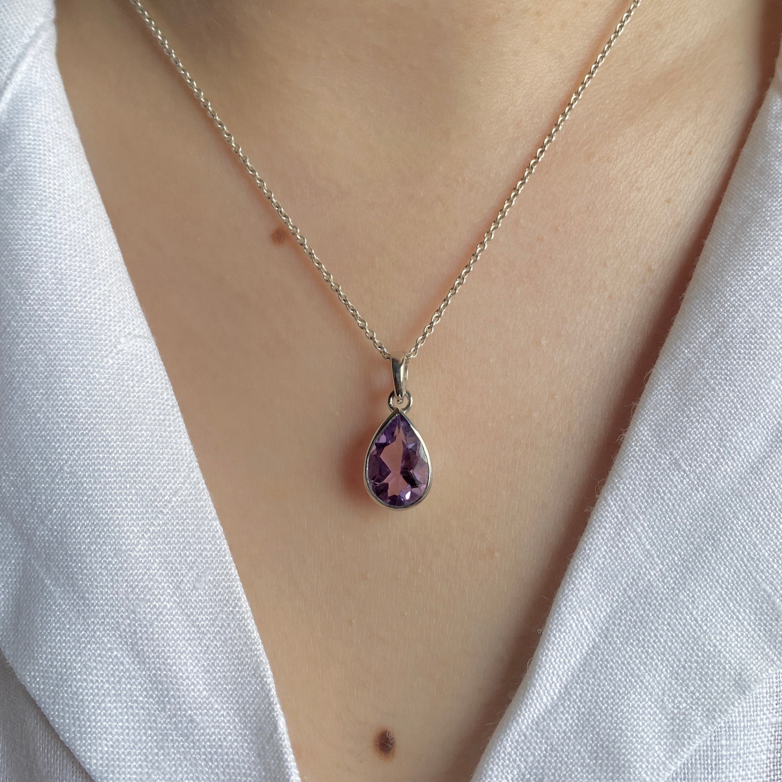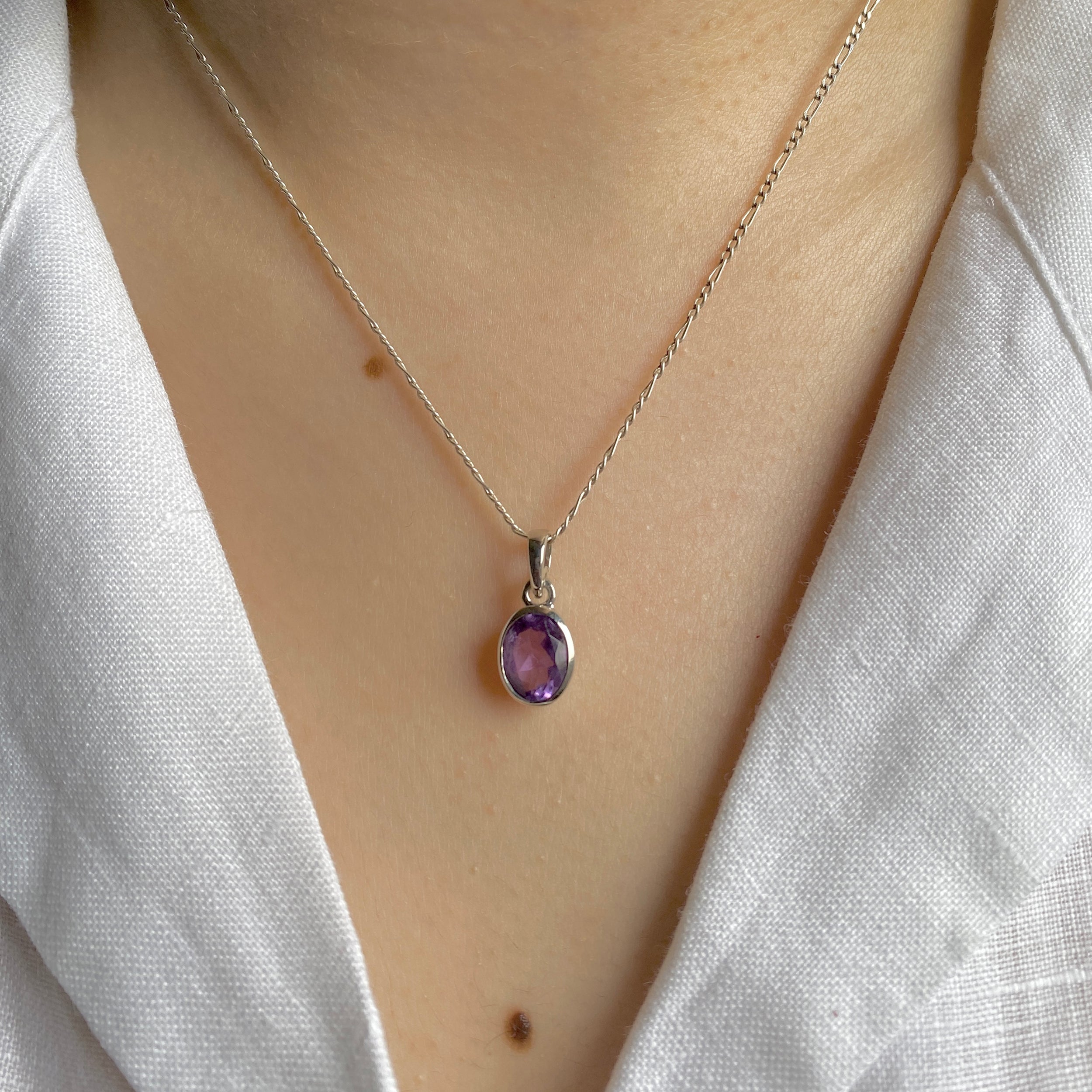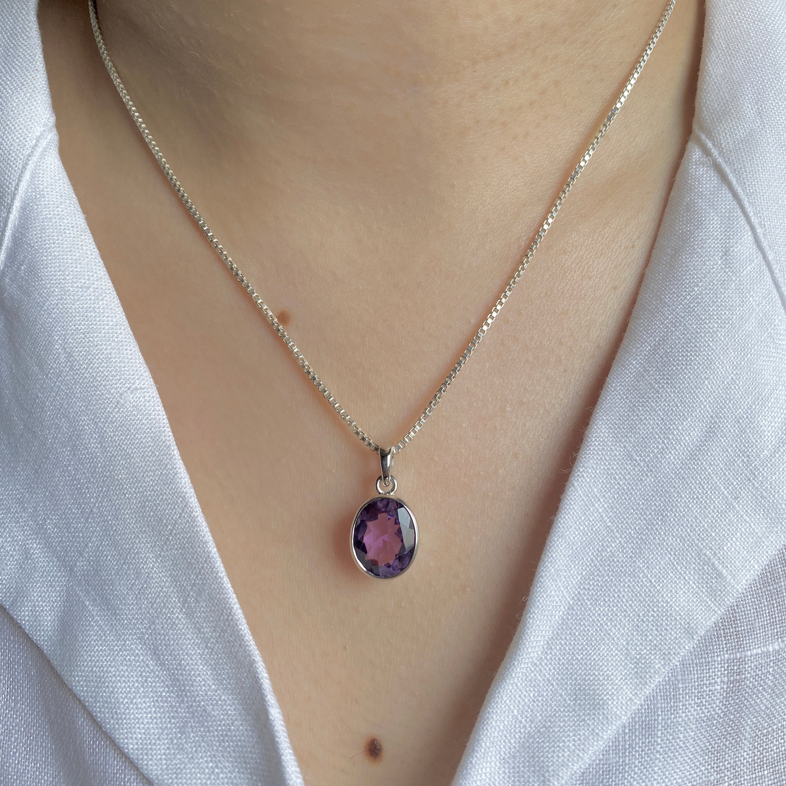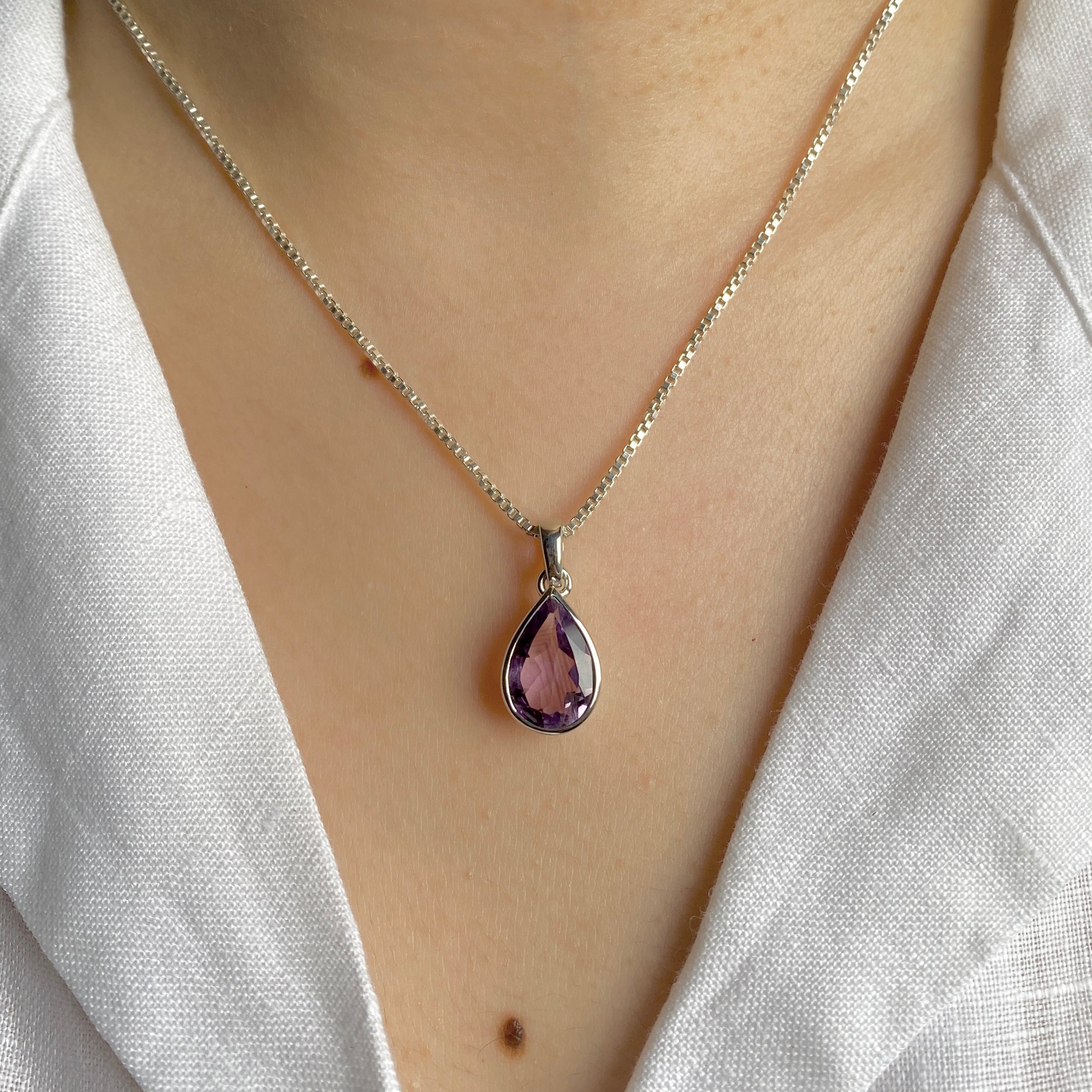 Today, the beautiful gem is found in many parts of the world, including Brazil, India, Mexico, Africa, South America, Canada, Pakistan, Zambia, Spain, Bolivia, and the United States. Plus, a hardness of 7 on the Mohs scale creates durable and scratch-resistant Amethyst necklaces you can wear daily. The stone is usually translucent, making people gaze upon 925 sterling silver Amethyst pendants without blinking an eye.