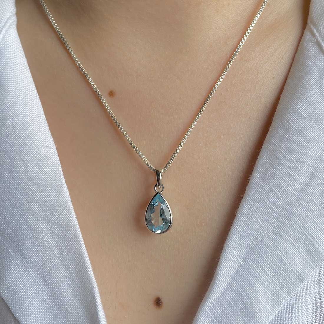 Besides their aesthetic beauty and classic allure, these gorgeous crystals are revered for their effective healing properties. Wearing a Blue Topaz necklace helps activate our throat and third-eye chakra, further aiding in unlocking our communication blockages and channeling psychic abilities to reach higher levels of consciousness. Also, December-born individuals under the Sagittarius, Scorpio, and Pisces zodiac signs are believed to resonate well with the stone’s healing energies.