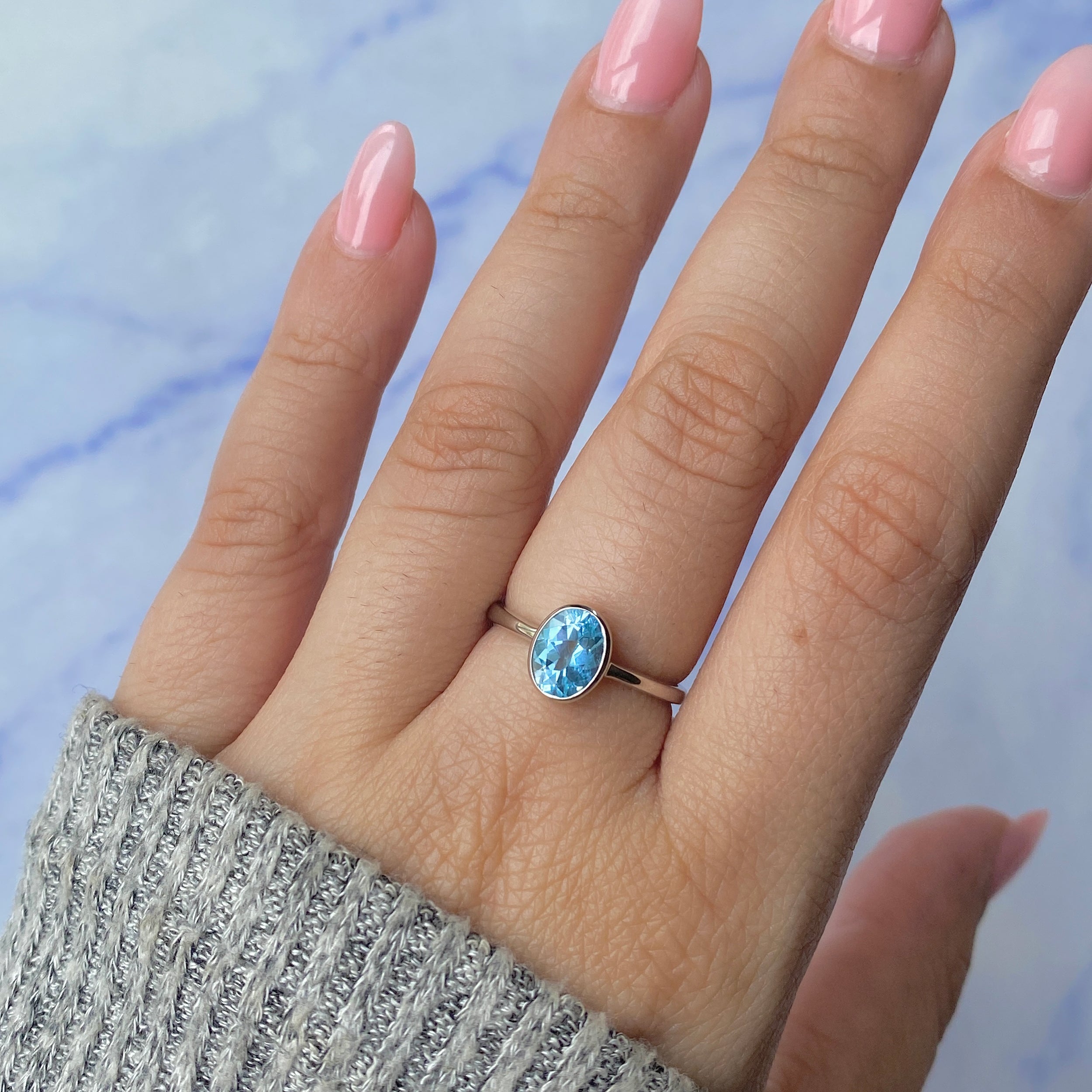 Everything about the dainty blue topaz ring is unique, from its style and fashion sense to its ability to heal the body and mind from the depth of the soul. When it comes to the healing attributes of this wonderful eccentric gemstone ring, it always surprises the person with its unique healing abilities. People are very curious about their growth and productivity, and undoubtedly, the dainty blue topaz ring works amazingly with the depth of the core especially if you combine them with other crystals. For example, combining Blue Topaz with Amethyst rings can promote spiritual growth, whereas wearing it with Citrine rings can increase Topaz’s powers to manifest goals. Also, pairing it with Deerfawn Jasper rings can help you absorb its high vibrational energies. So, to delve deeper into its uniqueness, let's explore the healing properties of the dainty blue topaz ring.