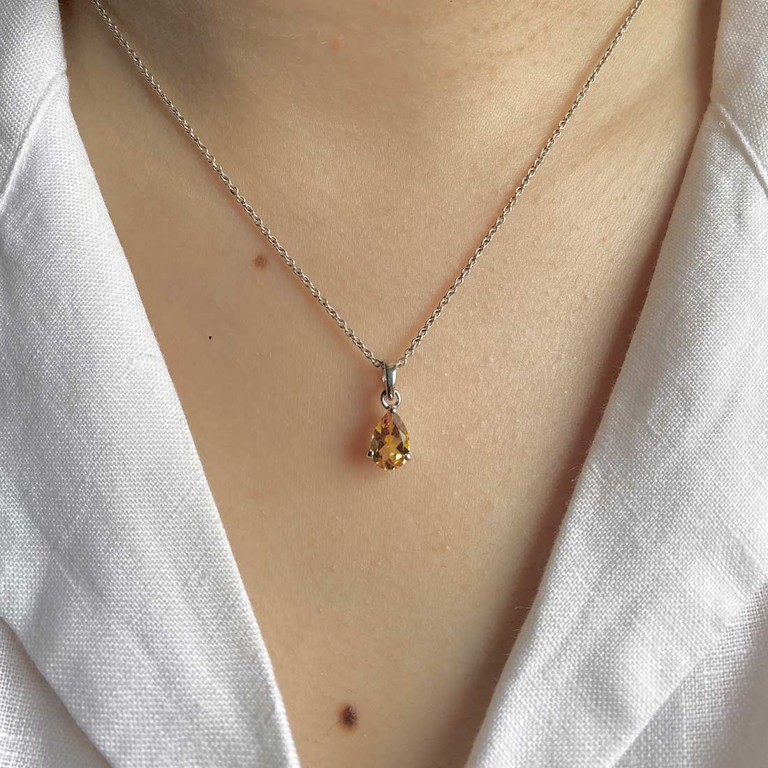 Our Citrine pendants are an excellent option for a stealer look at an event, whether you are dressing up for a special party or want to add a touch of glamour to your everyday style. Its luxurious feel and bright color make it a go-to accessory. When it comes to styling them, try to pair our Citrine pendants with warm colors such as red, orange, and brown. Although our Citrine earrings go well with cooler colors like blue and purple, ensure balanced contrast. Try to stick with simple pieces that keep your Citrine pendant in the focal area and accentuate your outfit. You can also get a bohemian look by layering funky chains or mixing other metals.