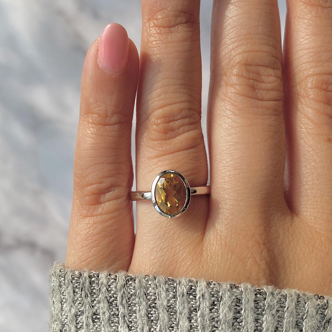 Talking about its significant appearance, the versatile luster of the dainty citrine ring possessed bright shades of amber that beautifully displayed the cloudy and smokey appearance on its surface. Apart from this, the dainty citrine rings reflect the power of positivity that helps the wearers attain more excellent hikes and realms of growth in the different stages of life. The dainty citrine ring has slight vintage yellow vibes and all the hustle and courage on the table. Moreover, the golden sparkles of citrine pendants adorn the wearer's hands more beautifully and authentically.
