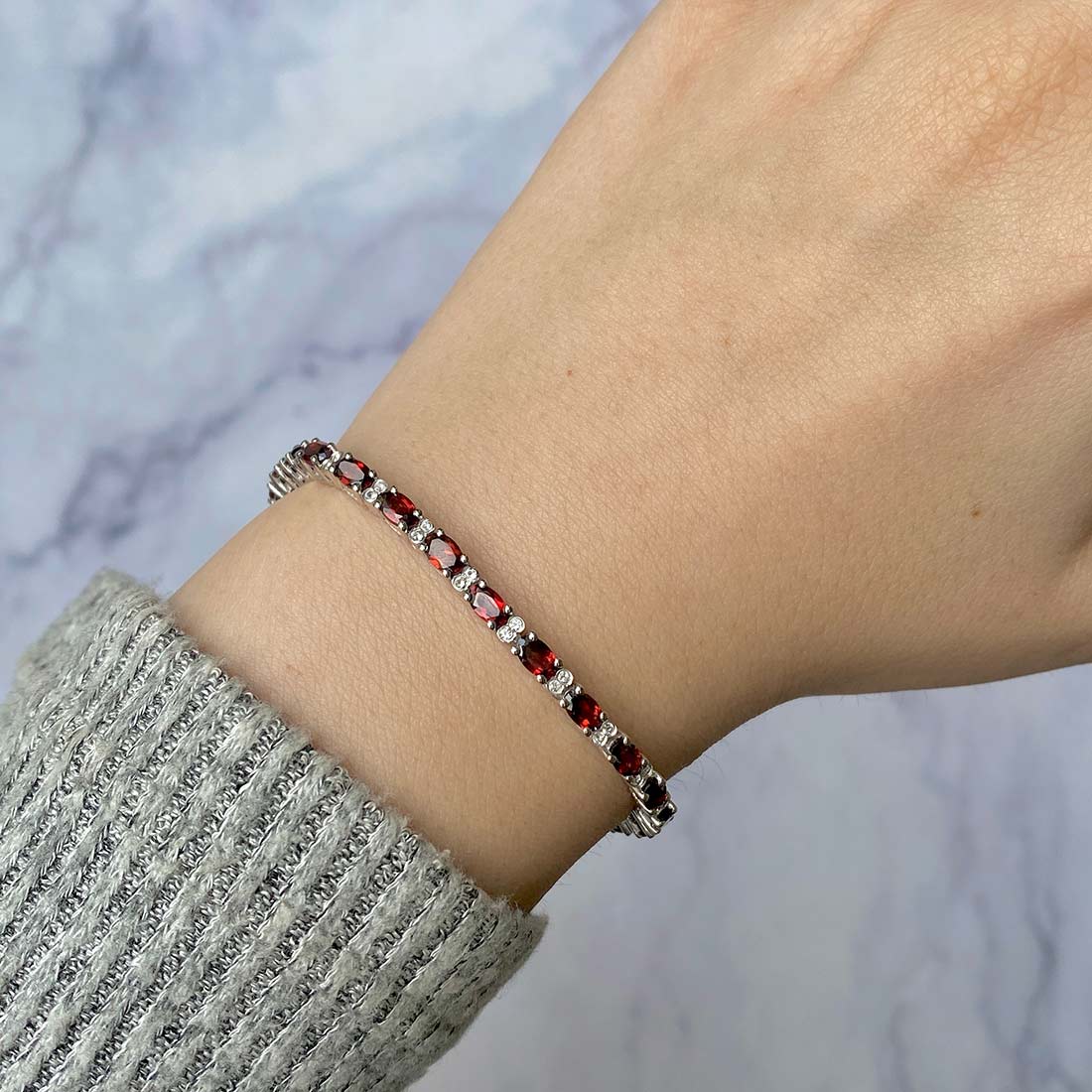 According to market trends for Garnet bracelets, the demand for distinctive and eye-catching jewelry is increasing day by day. Shoppers are attracted more and more to the Garnet because it has a striking and sophisticated appearance and a rich, deep red color. It is an outstanding trend to wear a Garnet bracelet paired with White Topaz jewels to generate a more fashionable article.