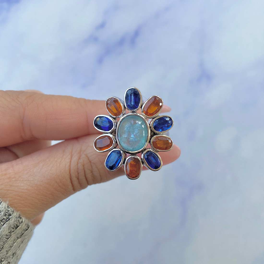 Green Kyanite Ring gets its hue from the intercalation of chromium in the crystal lattice matrix, giving it the faint green of a clear emerald or the deep green of a tropical forest. Metaphysical properties – Green Kyanite is used for growth and renewal and is known as the Stone of Vitality. That holds in intentions to meet with the heart chakra and thus dainty green kyanite ring helps achieve a balance, develop compassion, and empower one to connect with the energies of nature.