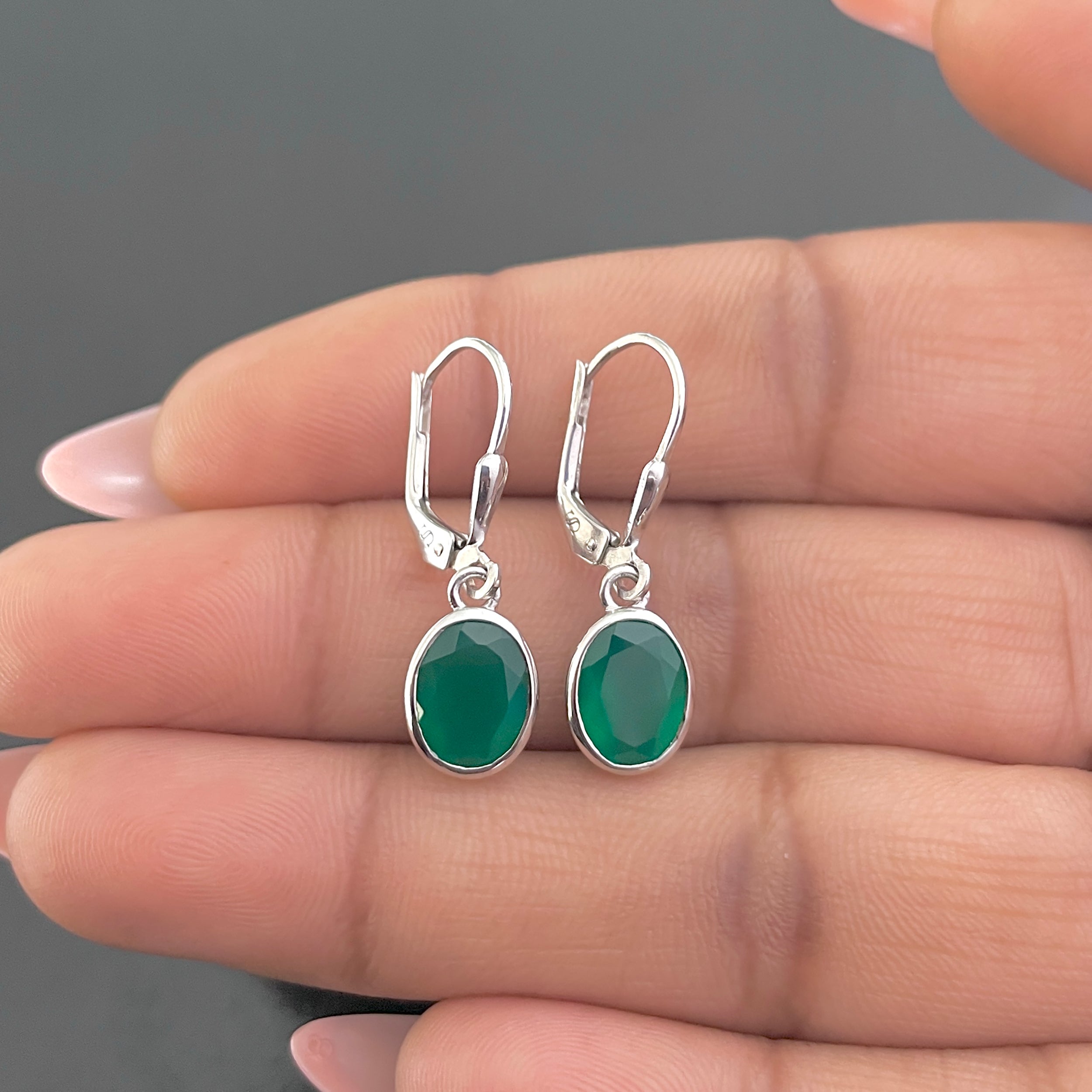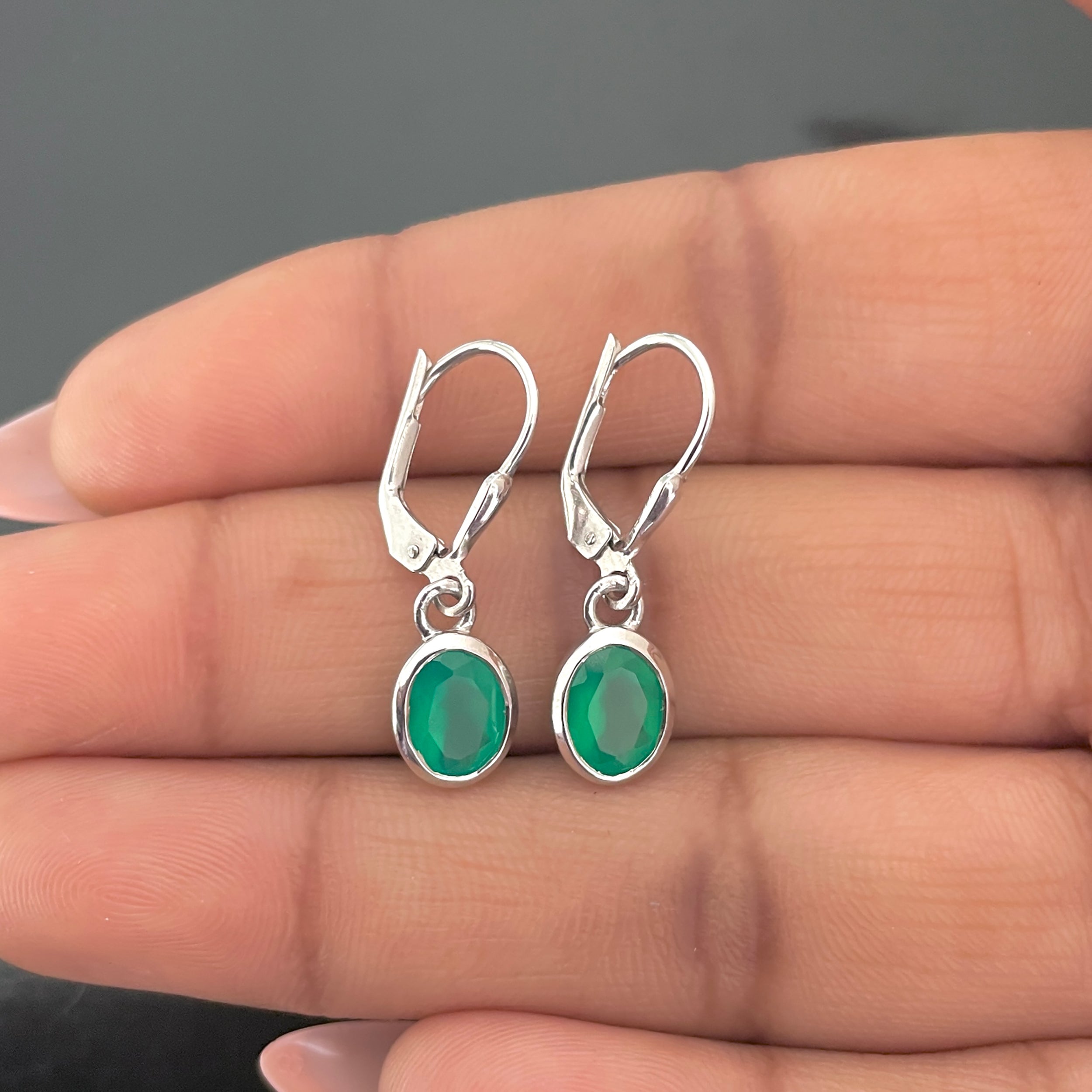 Dainty Green Onyx Earrings
