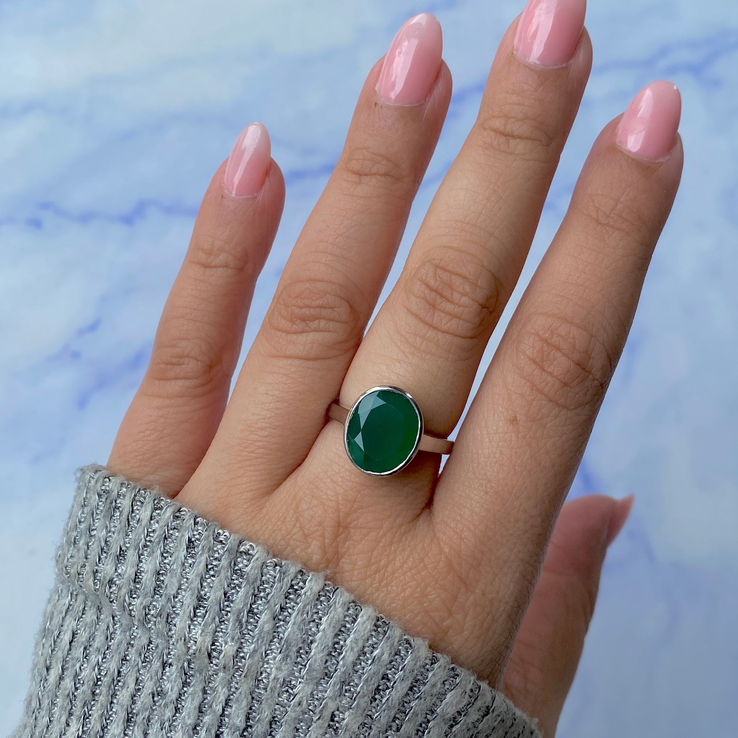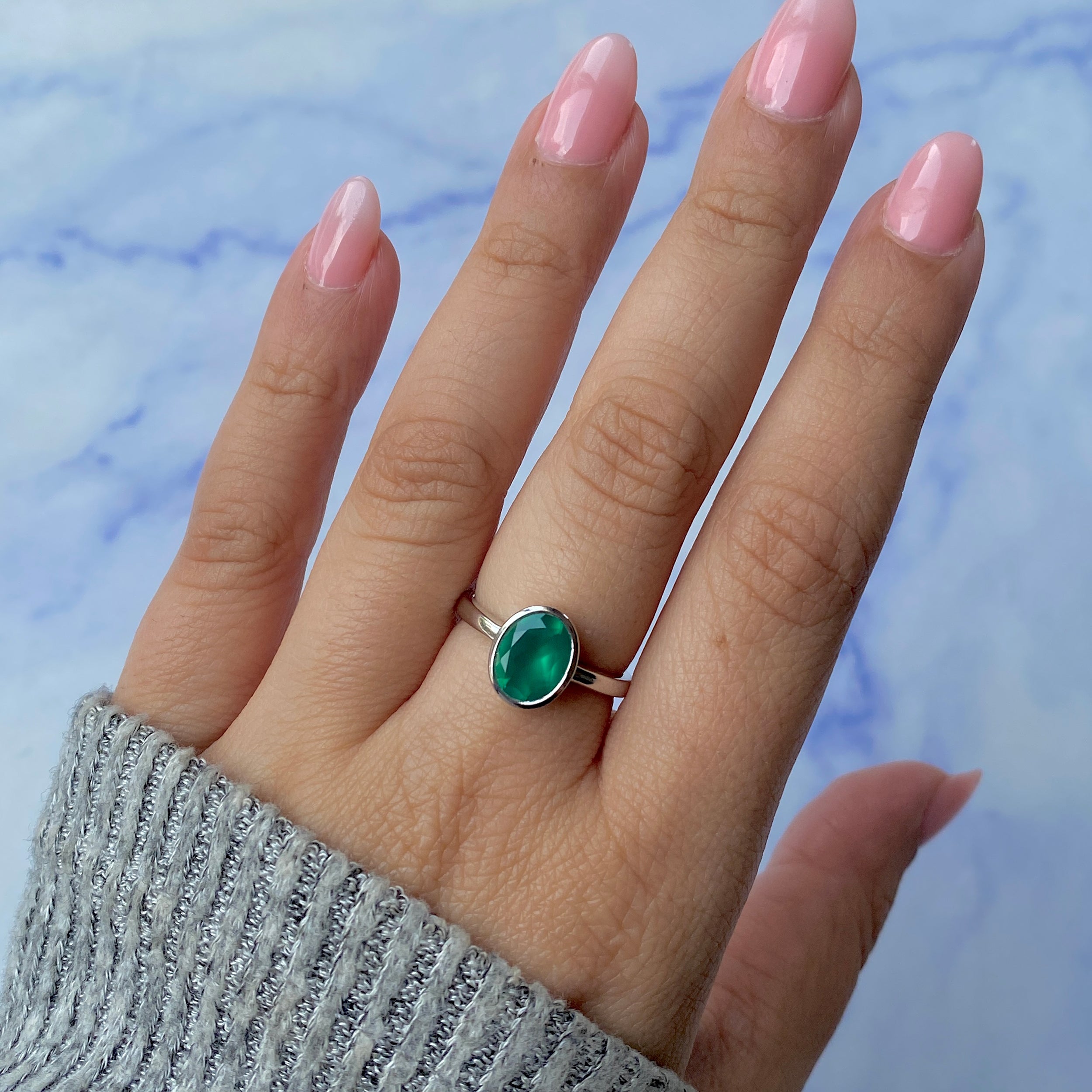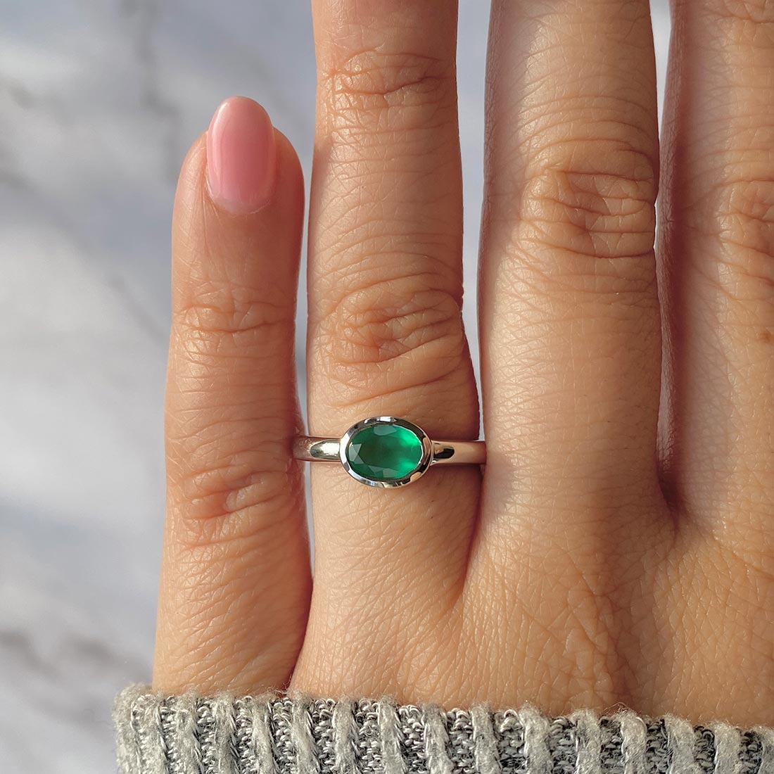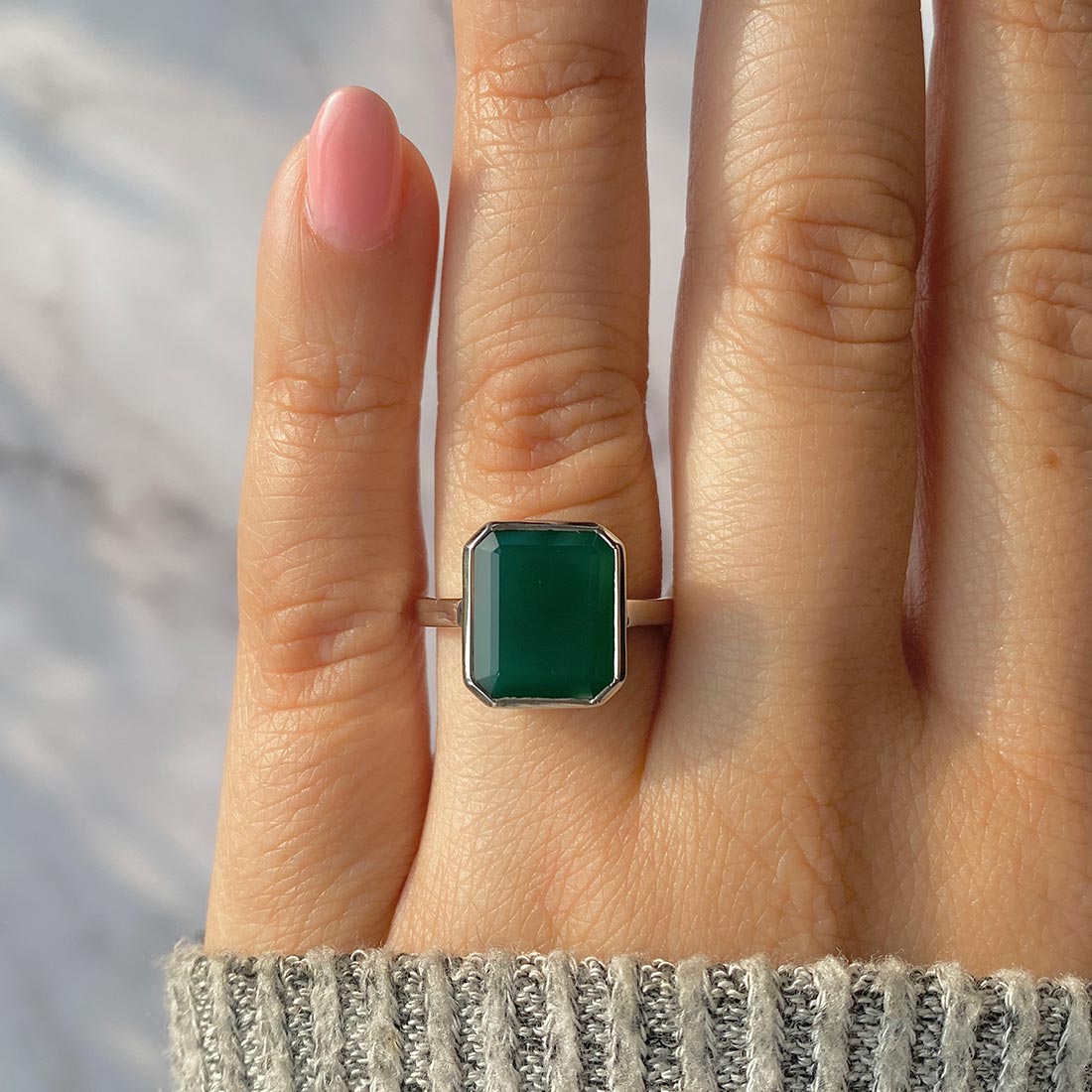 A Gem of Elegance: The Dainty Green Onyx Ring