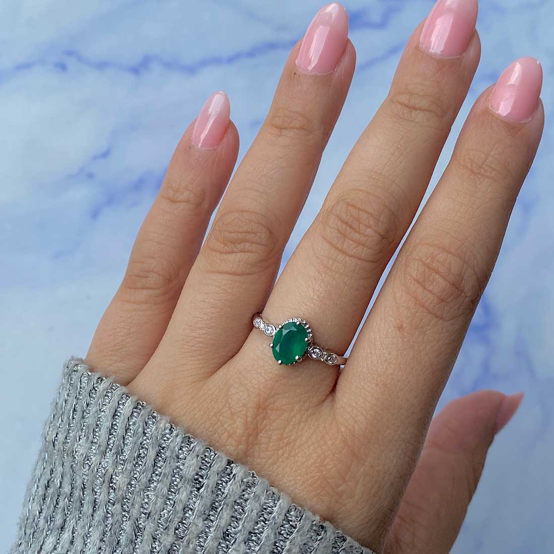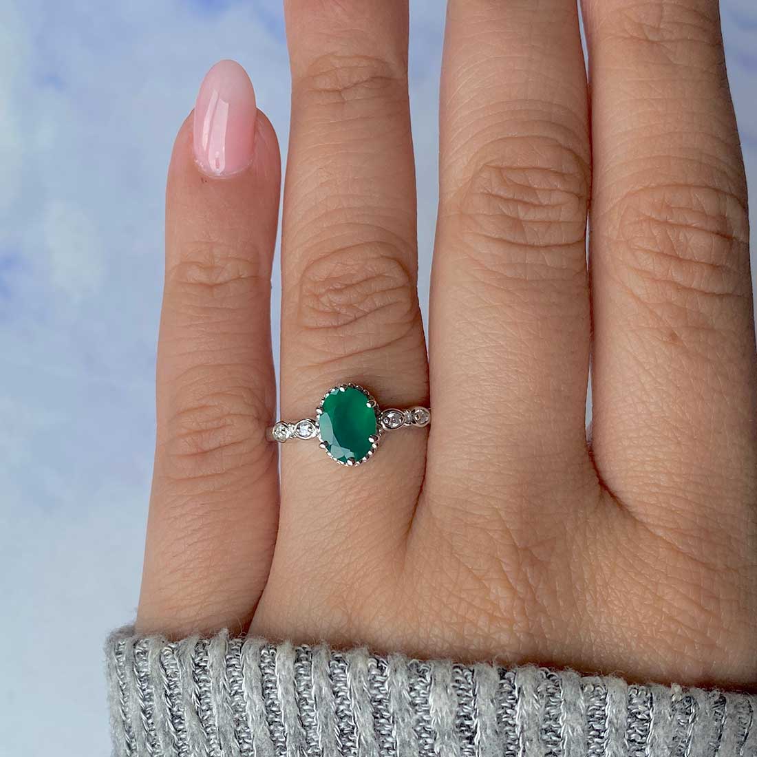 A Green Onyx ring is spirited, sophisticated, and adaptable to the individual and everyday wearers. Each piece reeks of elegance; it can be presented in a simple solitaire style to bring out the mysterious, intense green against the shiny silver or gold, or it can be presented in the chic style for a sleeker look. Delicate vintage-style engagement rings with floral engravings make buyers feel like they are from a different era, and Bigger stone rings with more complex designs appeal to buyers who want a more glamorous ring. To grace every woman's fingers, the dainty Green Onyx rings are the epitome of professionalism and mastery at Sagacia Jewelry, which produces it, ensuring that every piece is a masterpiece of perfect quality and finesse that can suit any occasion.