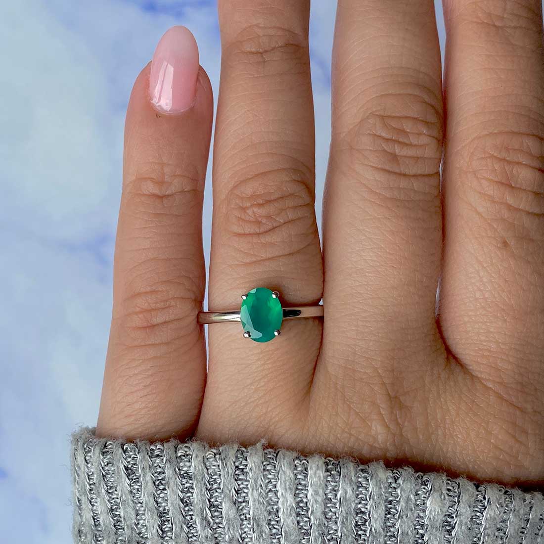 3. Variety of Designs: From minimalist solitaires to intricately designed settings, Sagacia Jewelry offers various designs of dainty Green Onyx rings to suit every taste and occasion.
