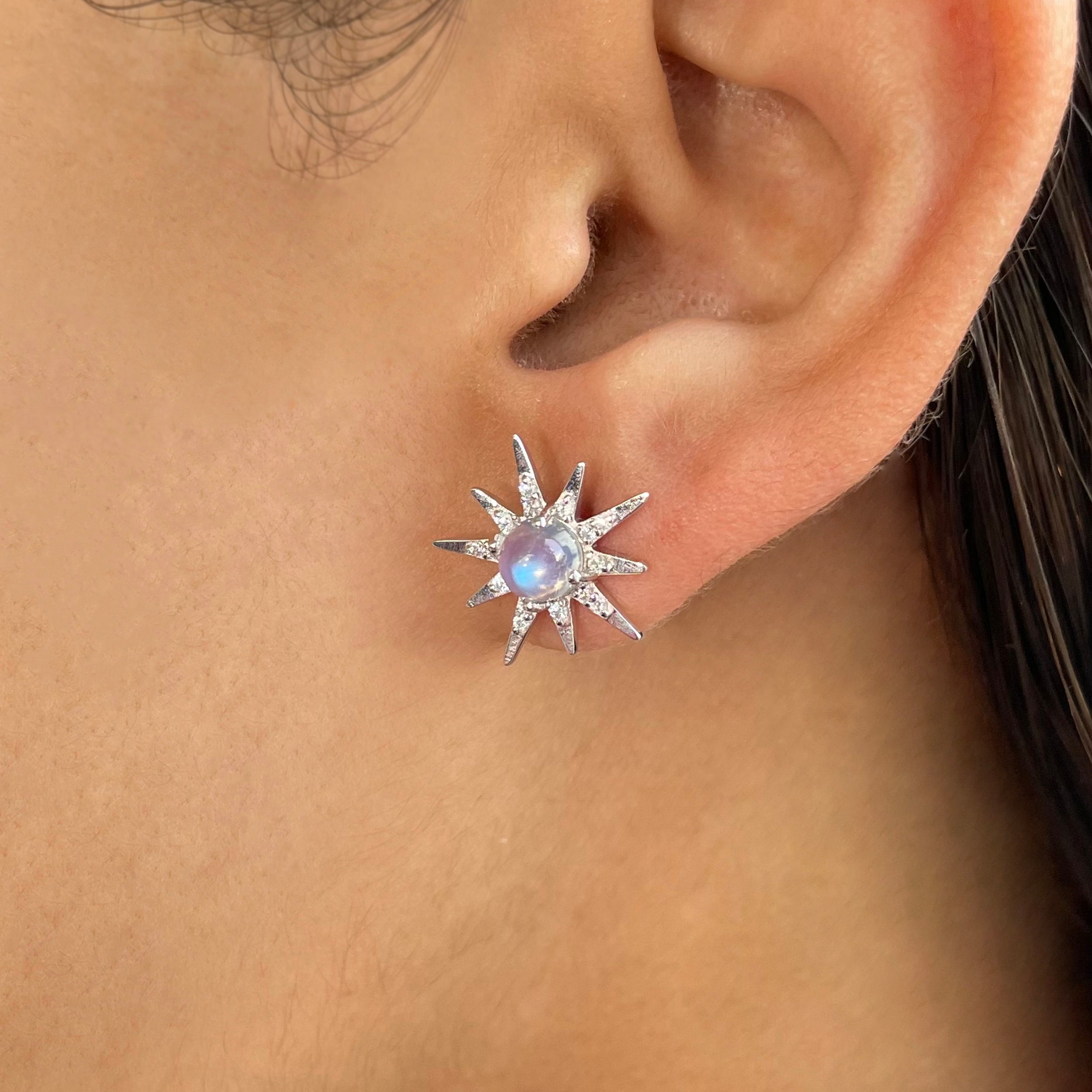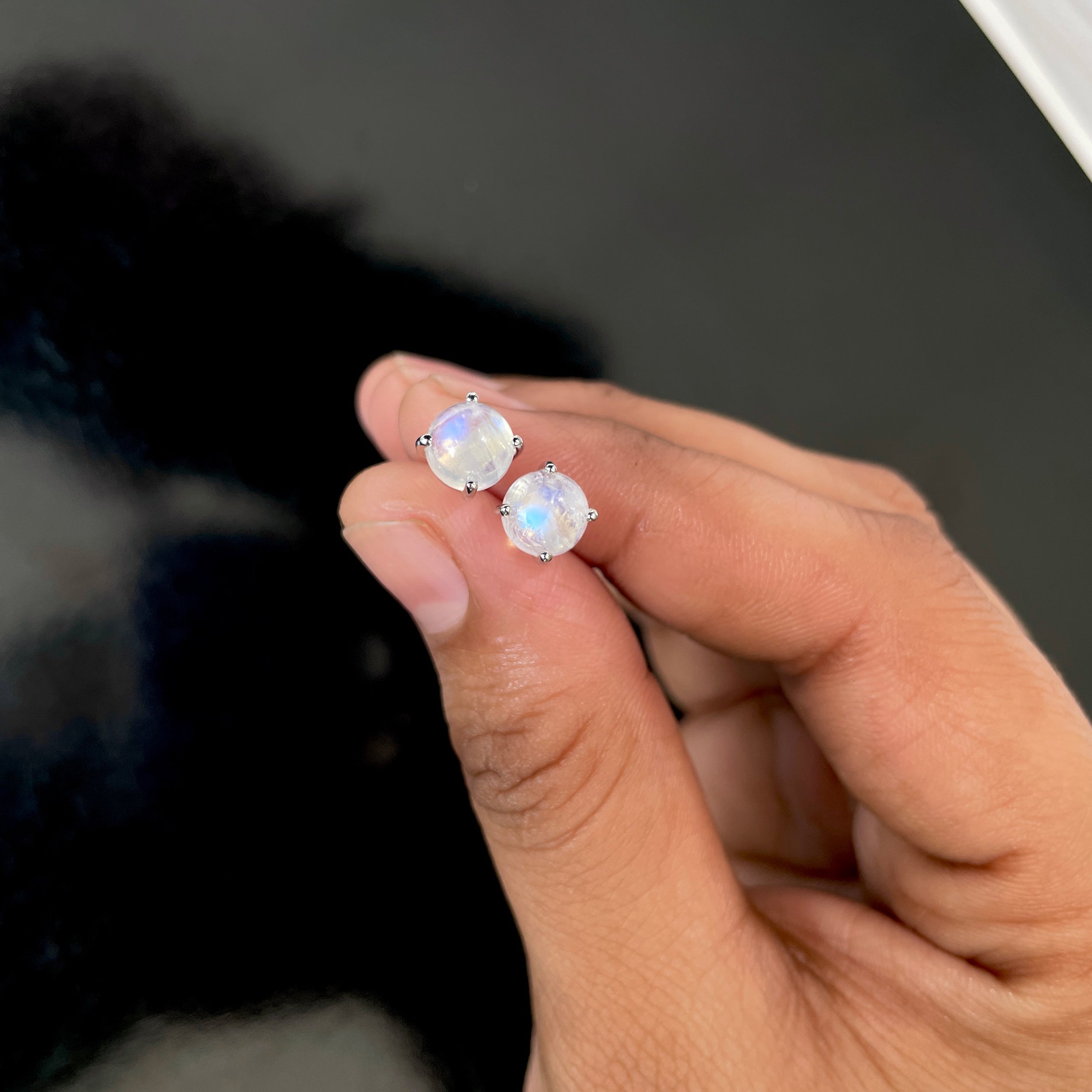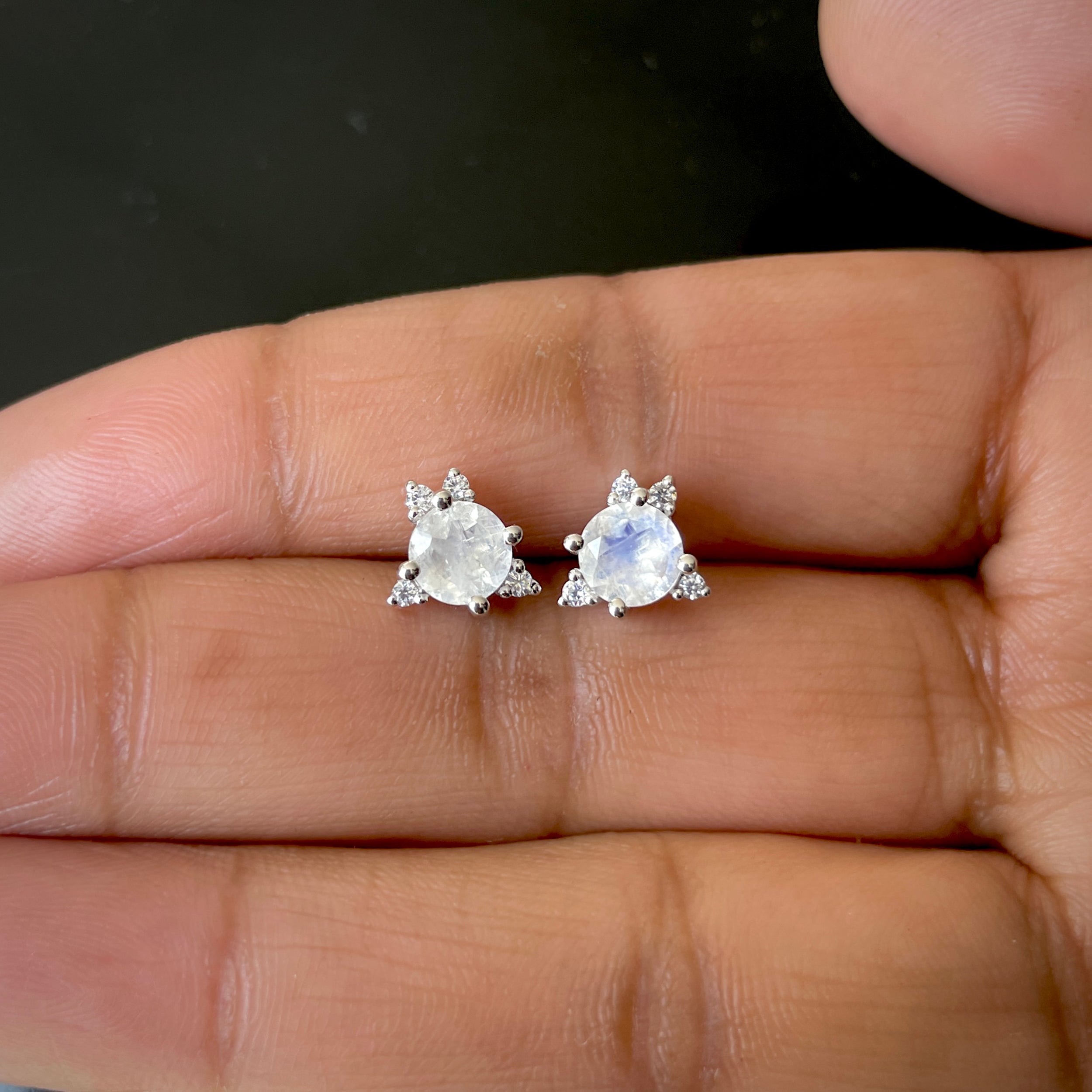 Elevate your style with dainty moonstone earrings, the gemstone which is associated with feminine allure. These tiny ornament pieces are the most elegant accessories that can add a hint of grace to any look. These delicate earrings are meticulously created with small understated settings that highlight the natural beauty of the moonstone. The dainty nature of these earrings make them versatile which allows them to be worn with both casual and formal attire.