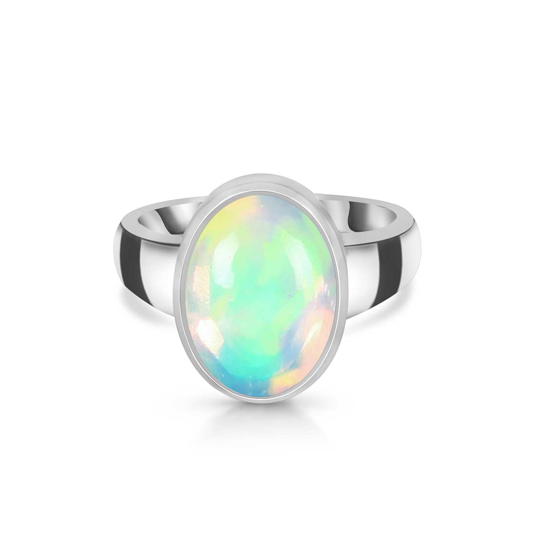 Opal is a semi-precious gemstone that attracts much attention due to its stunning and unusual appearance. The word 'play-of-color' refers to this stone's visual splendor, which causes the gem to flare diverse shades and designs when moved or reacted with light. Opal is a mineral part of a large group of minerals known as the "Silica family." It was formed from a solution of silicon dioxide and water. Opal requires more care when worn regularly, as its Mohs hardness score ranges from 5.5 to 6.5. Opals are classified into two types: valuable and ordinary Opals. Black or dark-colored matrix Opals are the most rare and valuable. Common Opals include White, Crystal, Jelly, Fire, Hyalite, Water, Hydrophane, and Honey. They are the most well-known stones for cabochon cutting. The Cabochon cut highlights the beauty, light reflection, and designs.