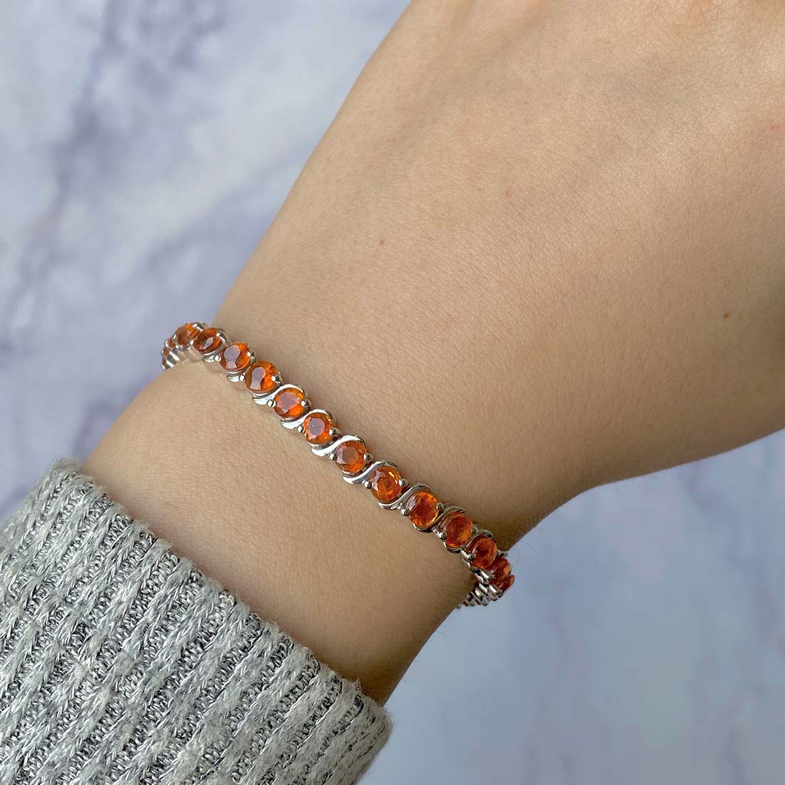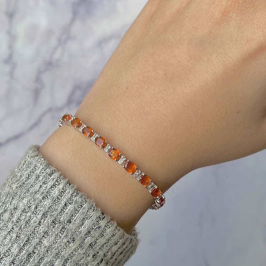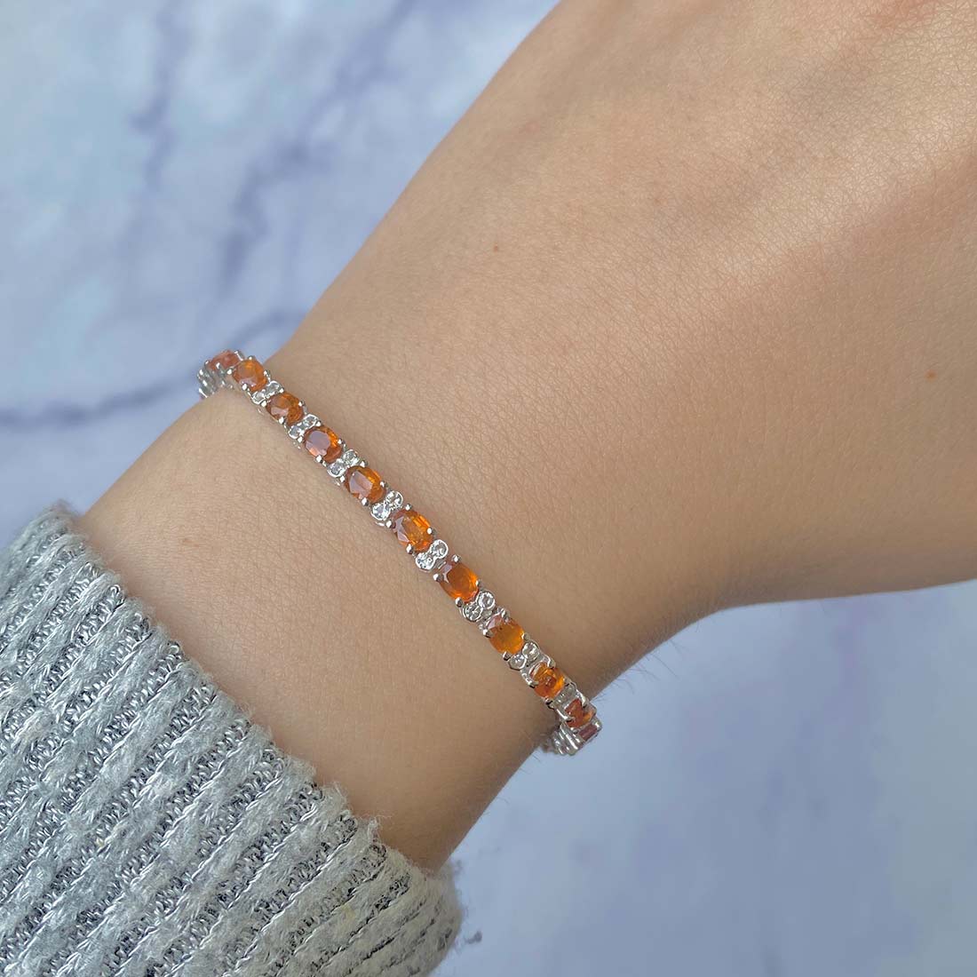 The dainty orange kyanite bracelet stands out on its own, requiring no additional jewelry to enhance its allure. Just picture yourself adorning this stunning bracelet with a chic, straight-line gown for a romantic evening out, complete with an alluring pair of dainty green kyanite pendant. The resulting look is absolutely enchanting and could very well turn your date night into a night to remember with a surprise proposal.