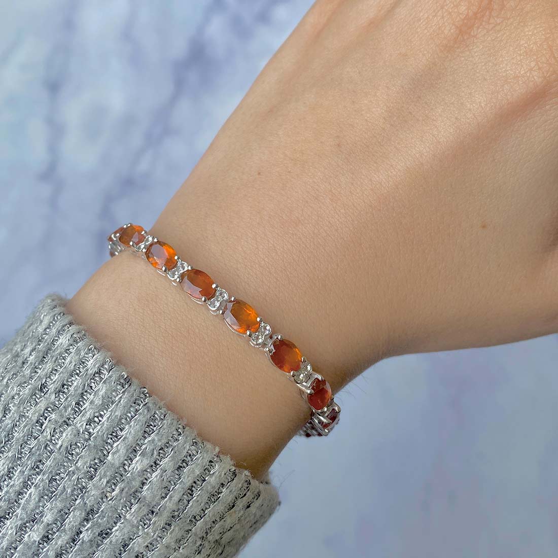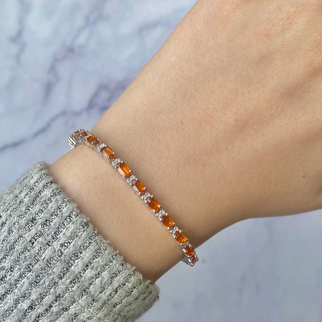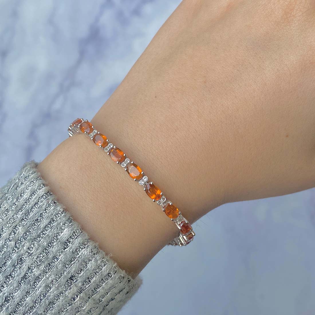 The dainty orange kyanite bracelet stands out on its own, requiring no additional jewelry to enhance its allure. Just picture yourself adorning this stunning bracelet with a chic, straight-line gown for a romantic evening out, complete with an alluring pair of dainty green kyanite pendant. The resulting look is absolutely enchanting and could very well turn your date night into a night to remember with a surprise proposal.