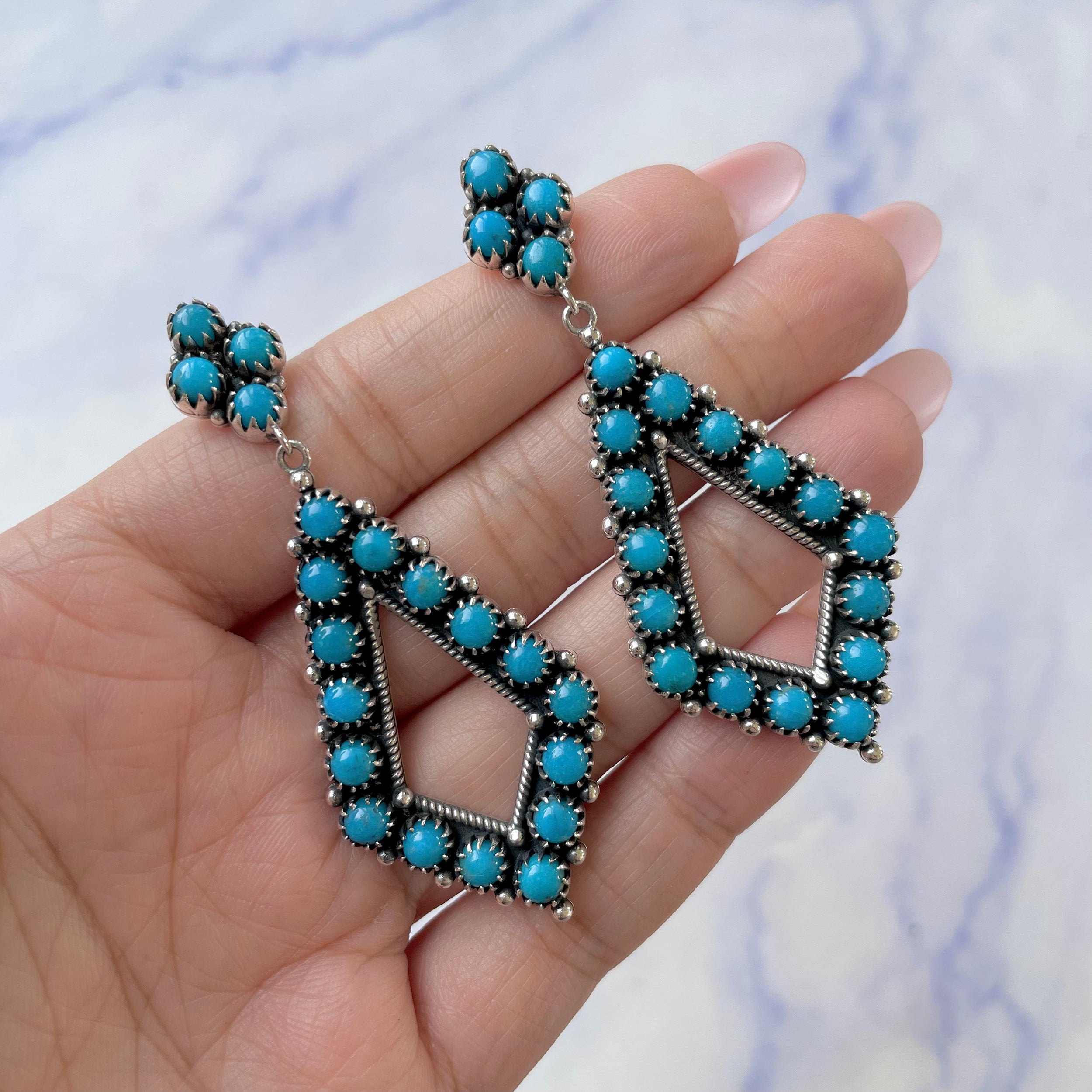 To create a complementary look you can also pair this beautiful accessory with a statement turquoise bracelet, and for contrasting appeal pair your gemstone earrings with a red wine maxi dress, black heels, and a citrine pendant. When it comes to caring for your dainty turquoise earrings, it’s important to handle them gently to avoid any kind of scratching and damage to their delicate surface, and when you clean them gently wipe them with a soft, damp cloth.