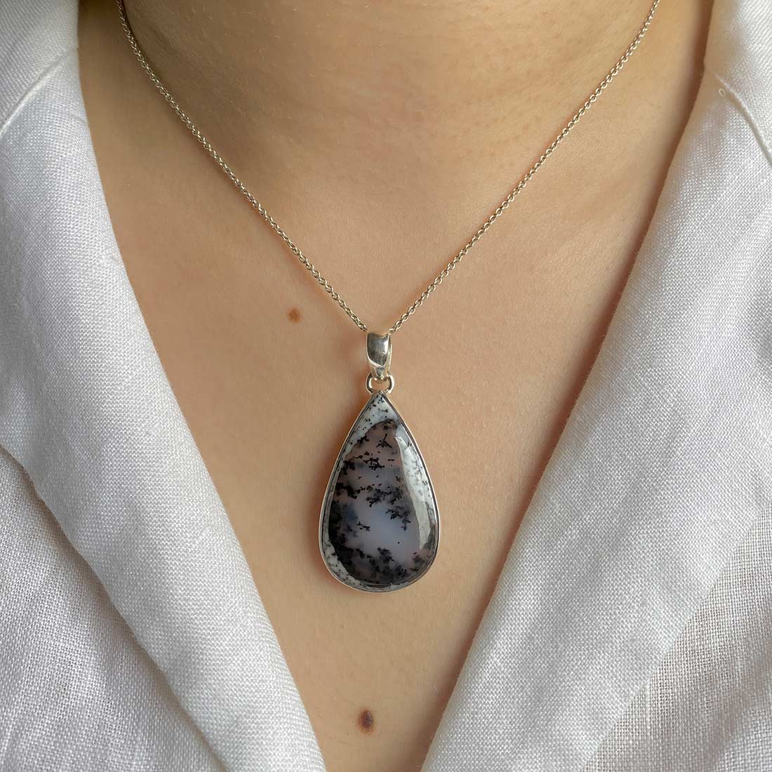 Wearing Dendritic Agate Jewelry brings a touch of spirituality to our everyday lives. It helps us stay grounded, balanced, and connected to the universe and our little corner of the world. It is like having a gratitude buddy and a source of positive energy. Dendritic Agate is also a go-to for healers who want to ease physical strain and discomfort caused by illness or stress. It is perfect for our bones, shoulders, and back muscles.