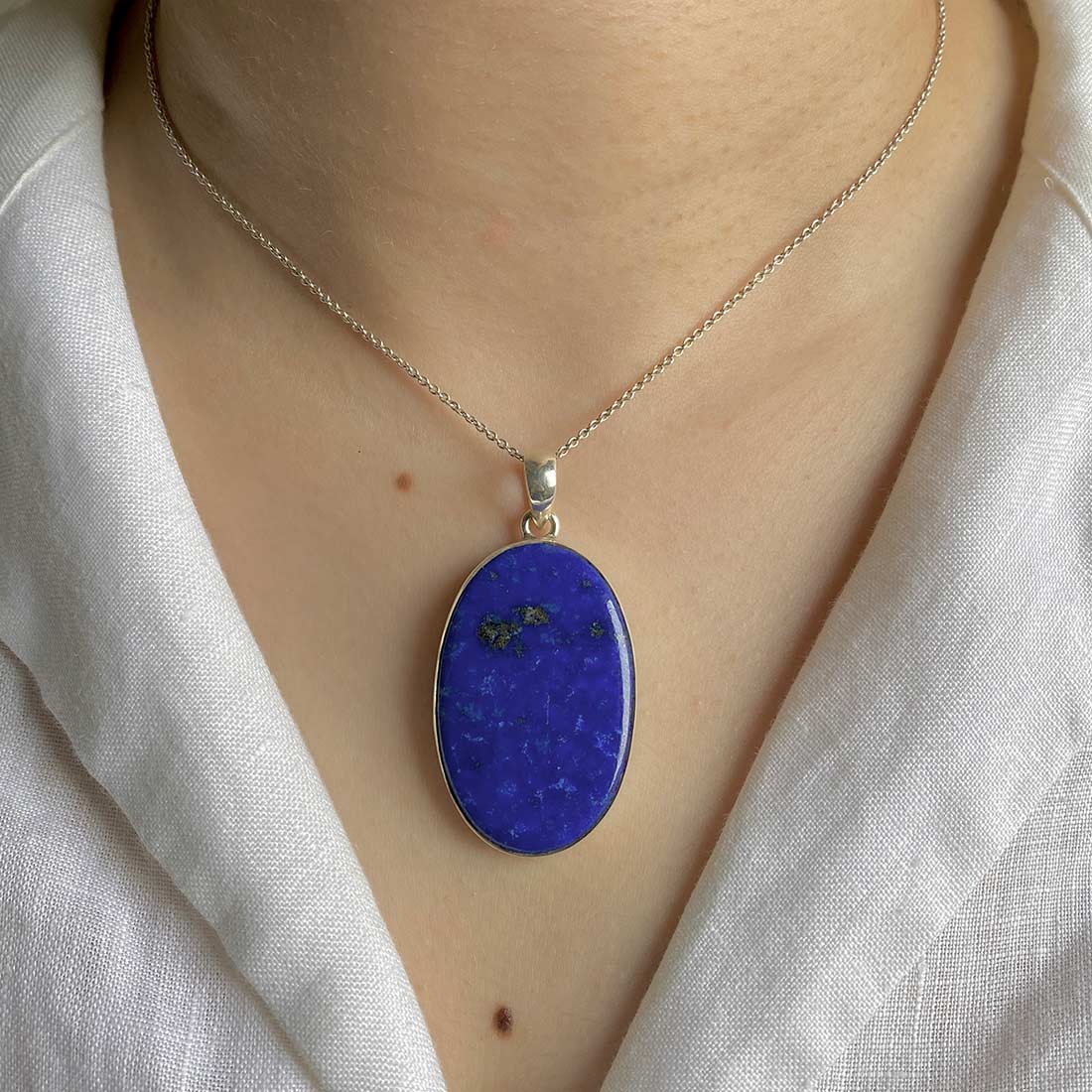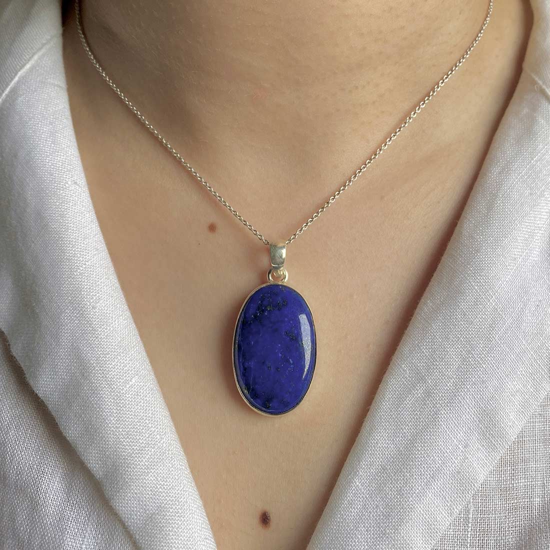 Lapis lazuli jewelry can be fashioned in unexplored ways by experimenting with various mixes and styles. For instance, layer your statement Lapis lazuli necklace with other gemstone pendants of diverse lengths to style a striking and modern look. For a more boho-chic style, try wearing statement Lapis lazuli pendants on a 925 sterling silver chain. Another option for a dapper and layered look is to combine a statement Lapis lazuli ring with a Lapis lazuli bracelet of different hues and textures.