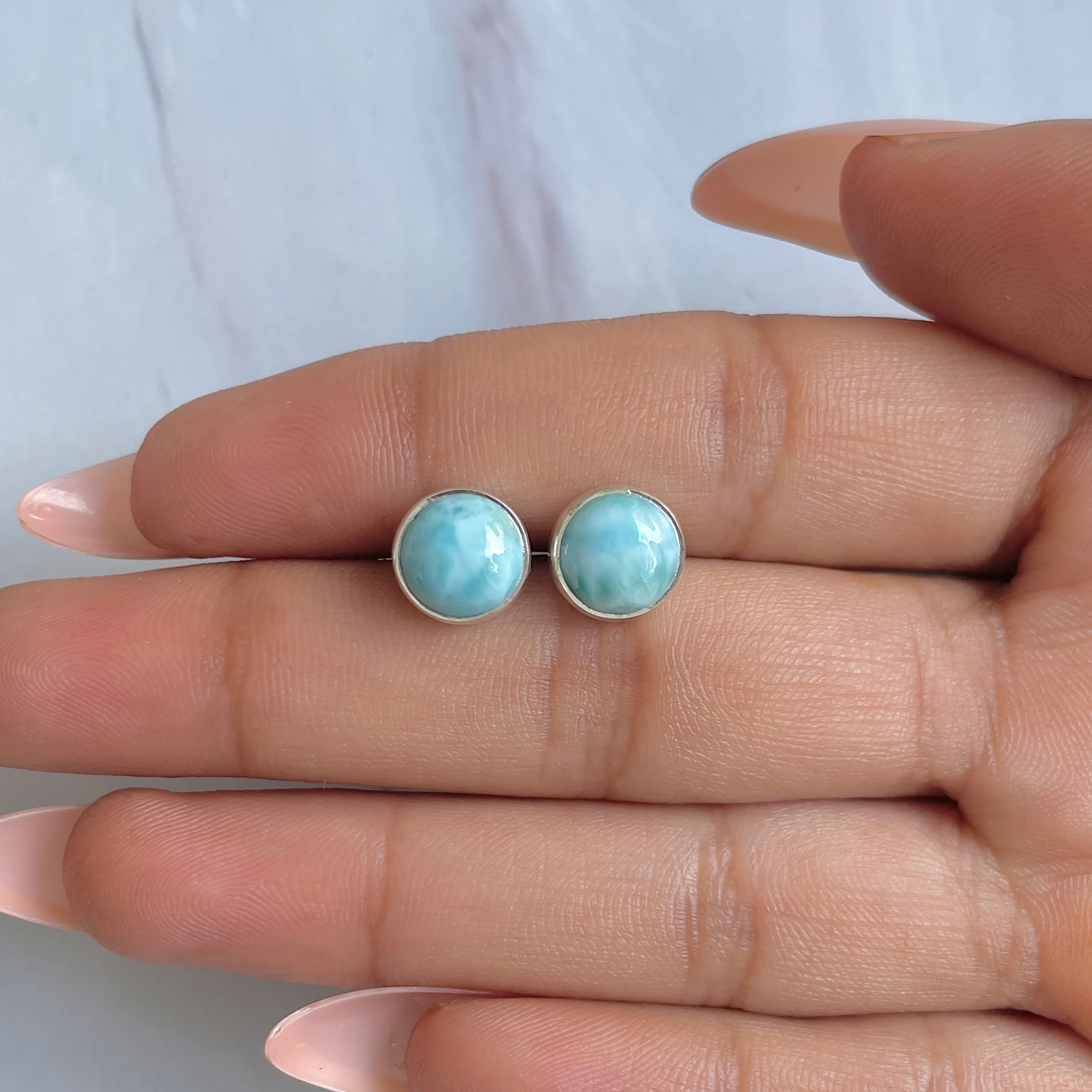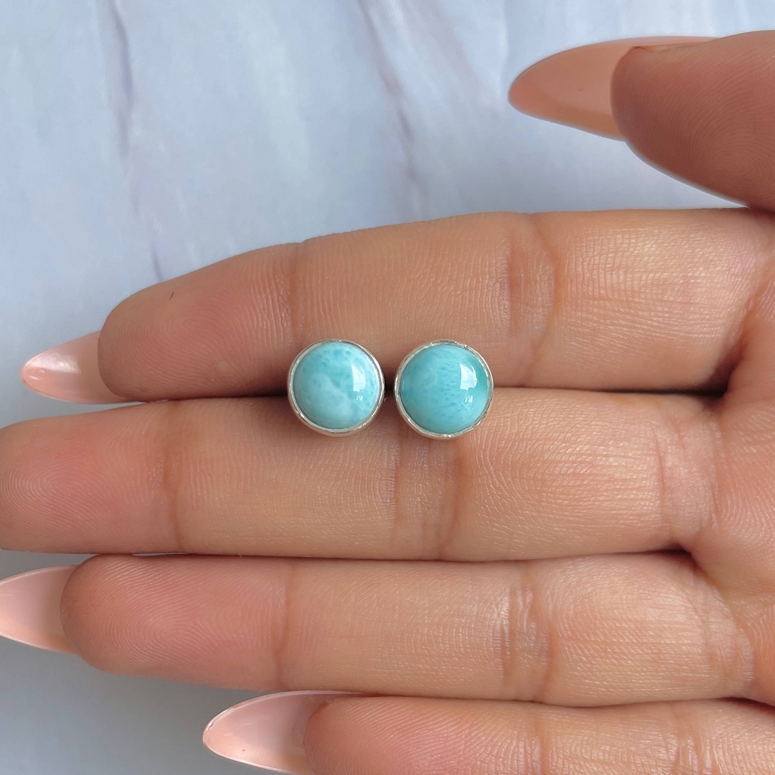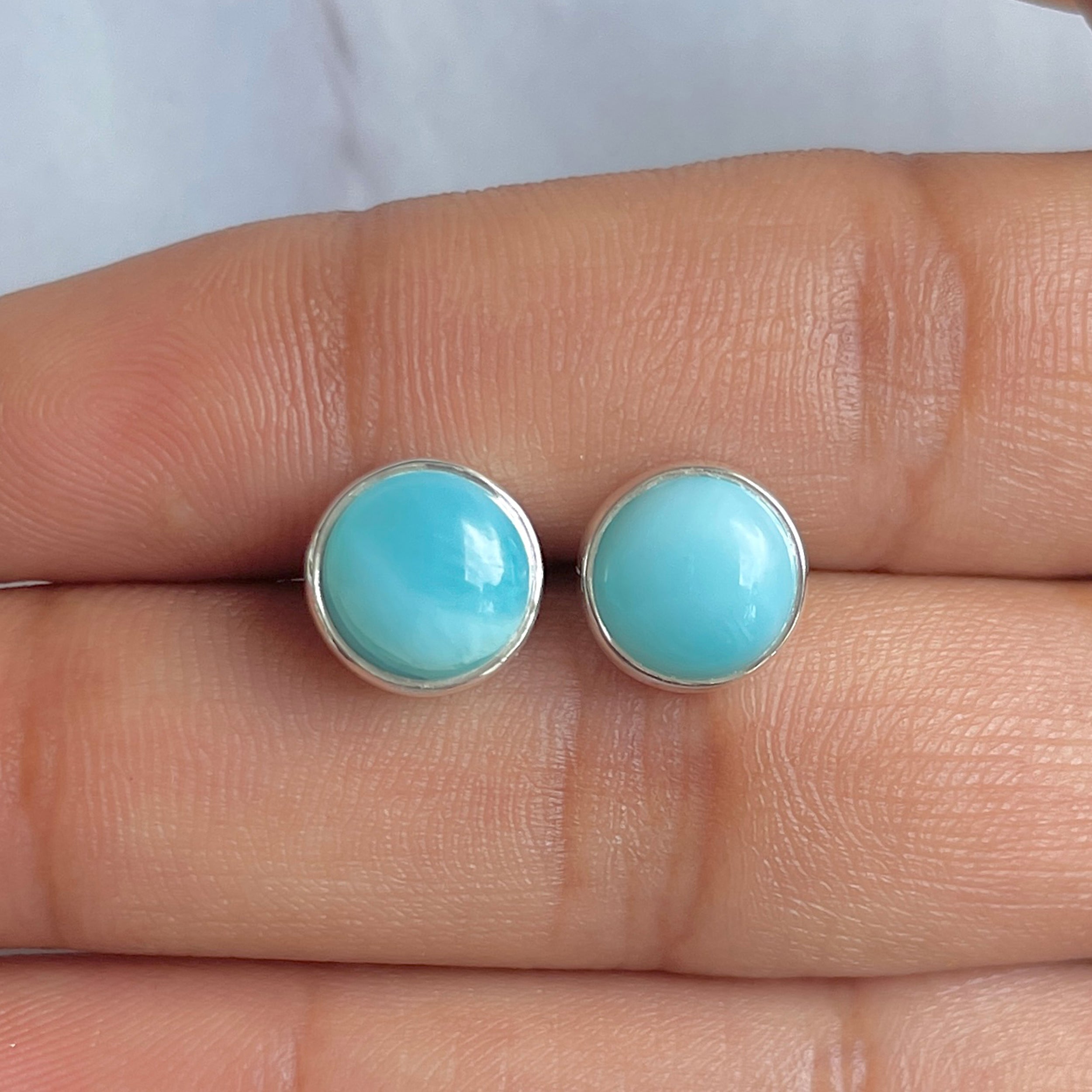 If you want to stay up to date with the newest styles, accessorize your ensemble with Larimar jewelry. For a stylish yet laid-back look, team a statement Larimar pendant with a fashionable off-the-shoulder top and high-waisted jeans. Layer statement Larimar bracelets with other delicate bangles or cuffs for a more refined effect. This stacked wrist design goes well with a fitted blazer and wide-leg pants. Wear a lovely flowery dress with statement Larimar rings for a charming and sophisticated bohemian look. Don't be scared to combine various Larimar jewelry pieces to make a one-of-a-kind statement that flawlessly reflects your distinctive sense of style. For a subtle look, adorn this classy pair of Larimar earrings with a trendy hairstyle and let your facial features accentuate.