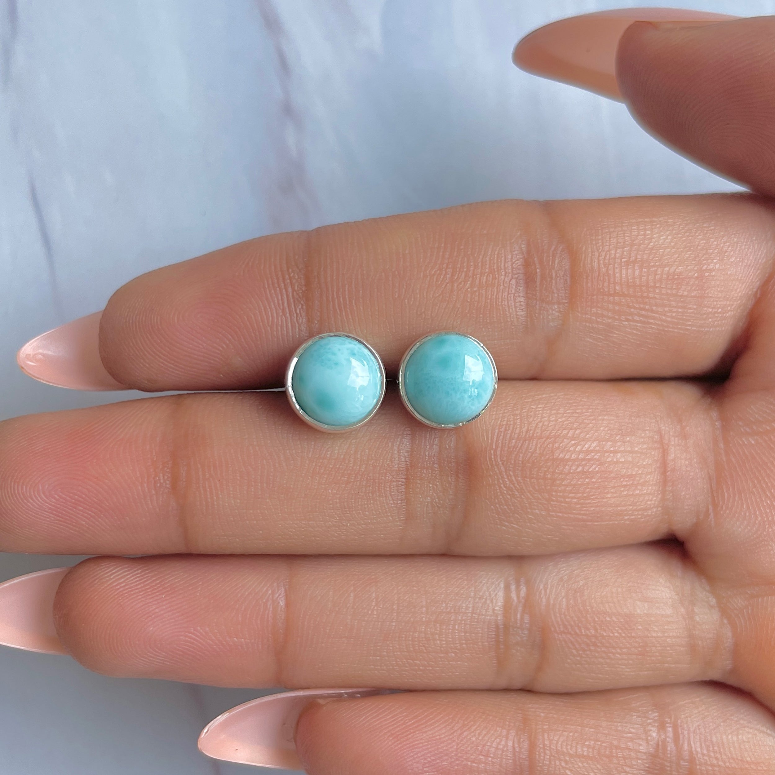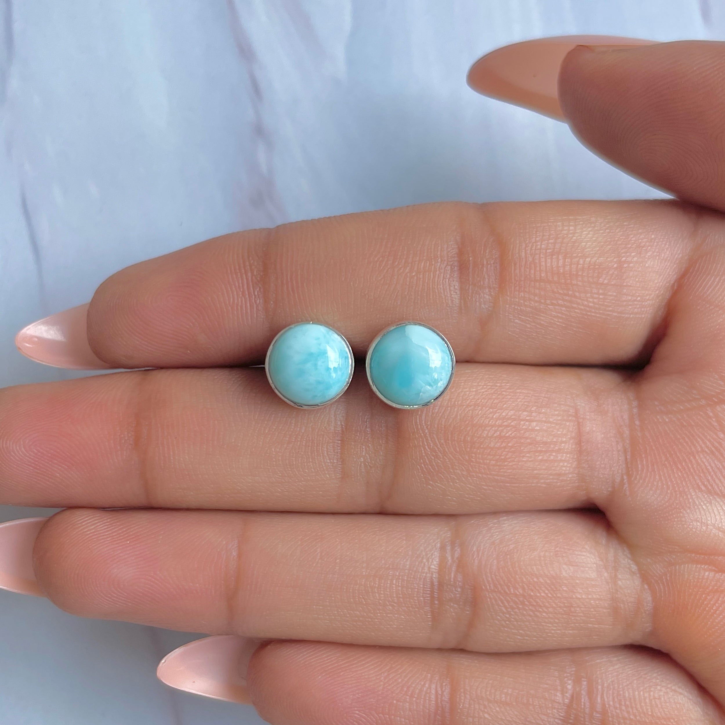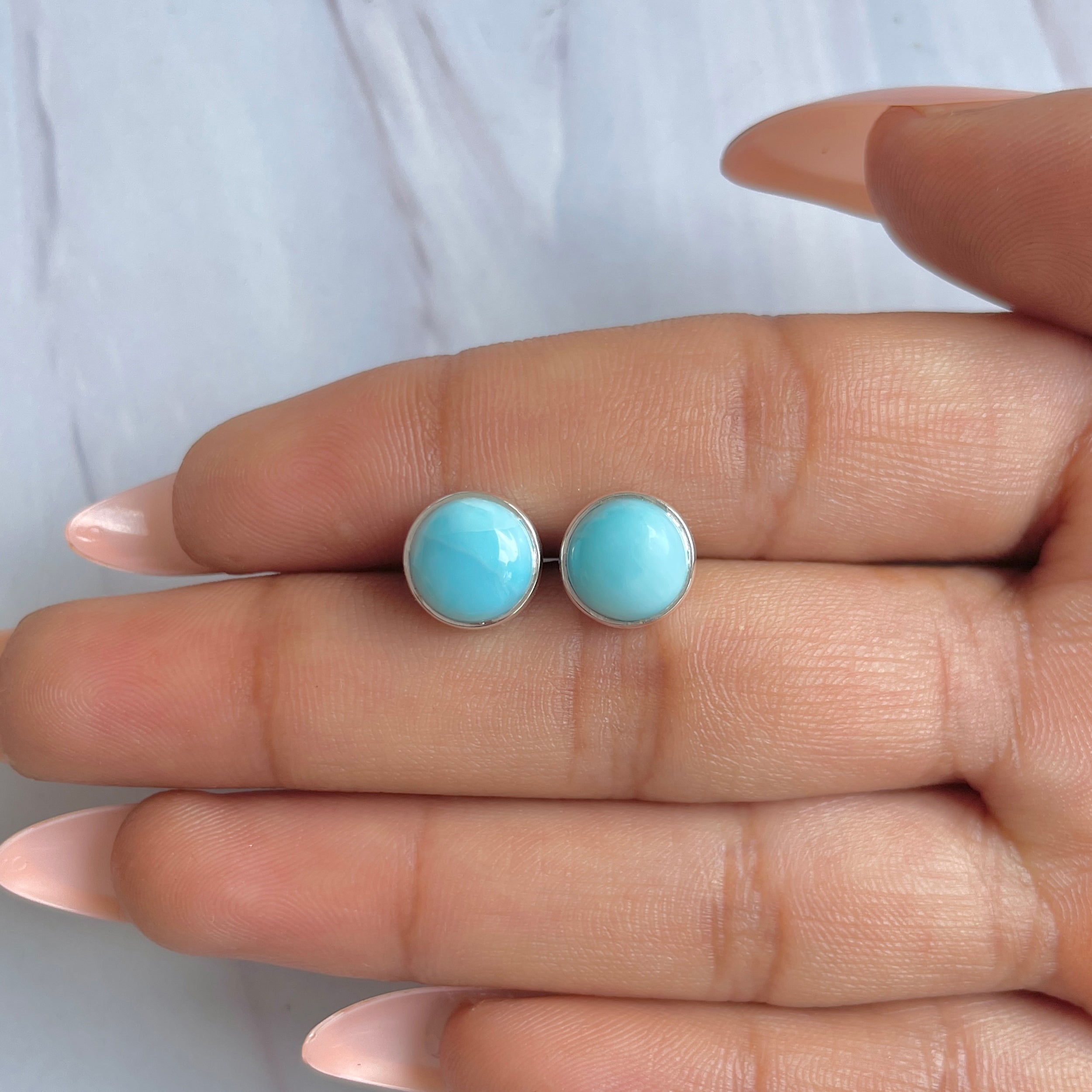 If you want to stay up to date with the newest styles, accessorize your ensemble with Larimar jewelry. For a stylish yet laid-back look, team a statement Larimar pendant with a fashionable off-the-shoulder top and high-waisted jeans. Layer statement Larimar bracelets with other delicate bangles or cuffs for a more refined effect. This stacked wrist design goes well with a fitted blazer and wide-leg pants. Wear a lovely flowery dress with statement Larimar rings for a charming and sophisticated bohemian look. Don't be scared to combine various Larimar jewelry pieces to make a one-of-a-kind statement that flawlessly reflects your distinctive sense of style. For a subtle look, adorn this classy pair of Larimar earrings with a trendy hairstyle and let your facial features accentuate.