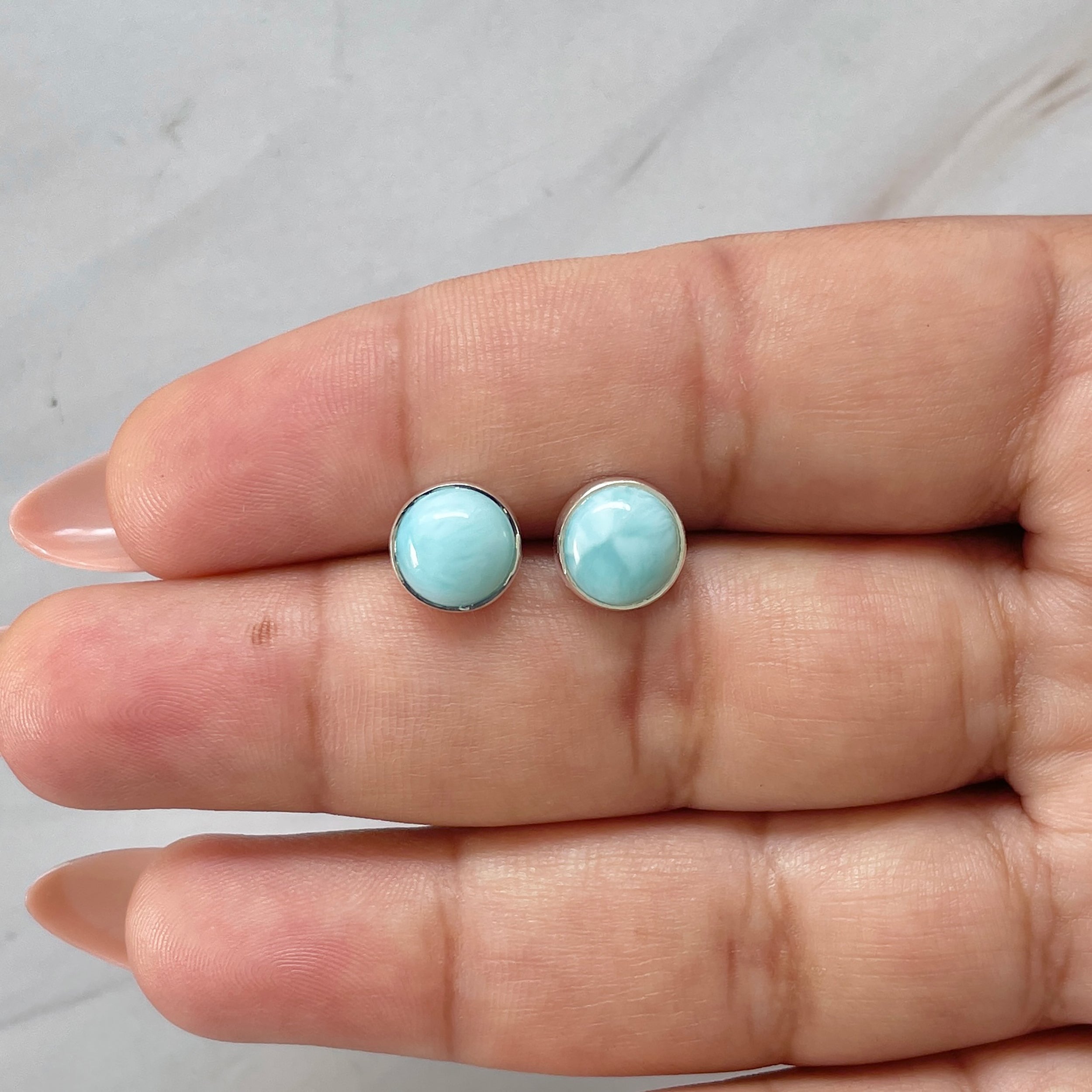 If you want to stay up to date with the newest styles, accessorize your ensemble with Larimar jewelry. For a stylish yet laid-back look, team a statement Larimar pendant with a fashionable off-the-shoulder top and high-waisted jeans. Layer statement Larimar bracelets with other delicate bangles or cuffs for a more refined effect. This stacked wrist design goes well with a fitted blazer and wide-leg pants. Wear a lovely flowery dress with statement Larimar rings for a charming and sophisticated bohemian look. Don't be scared to combine various Larimar jewelry pieces to make a one-of-a-kind statement that flawlessly reflects your distinctive sense of style. For a subtle look, adorn this classy pair of Larimar earrings with a trendy hairstyle and let your facial features accentuate.