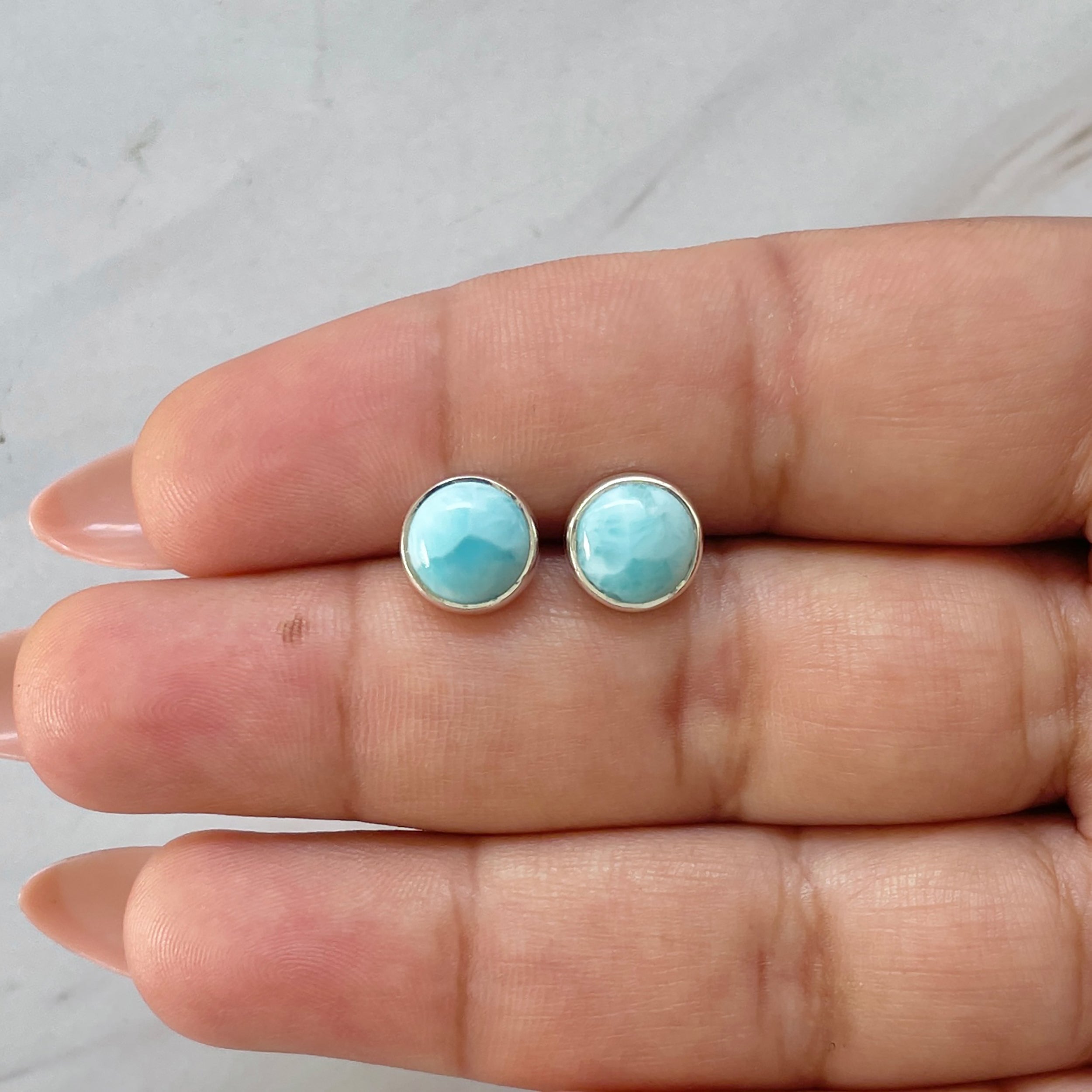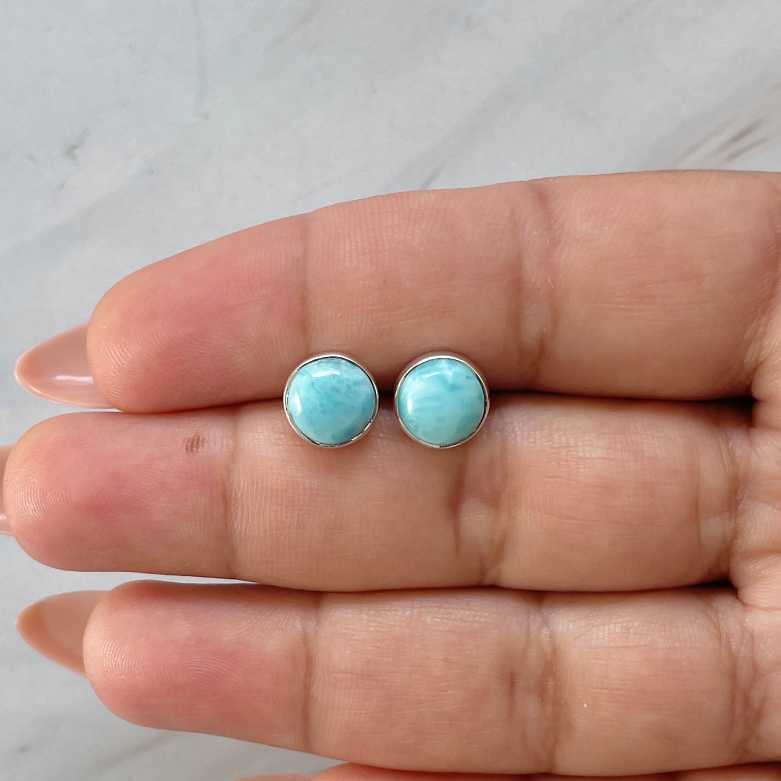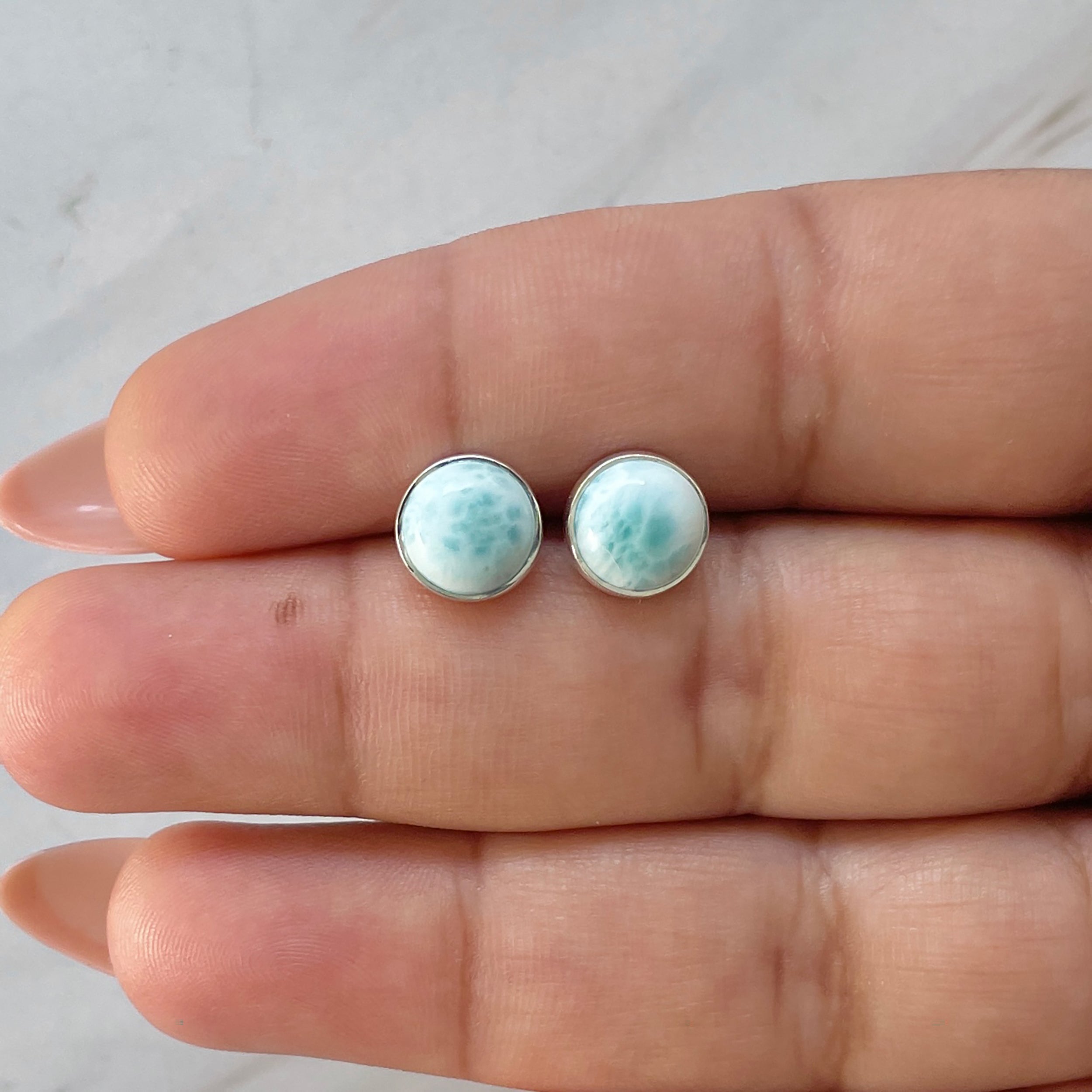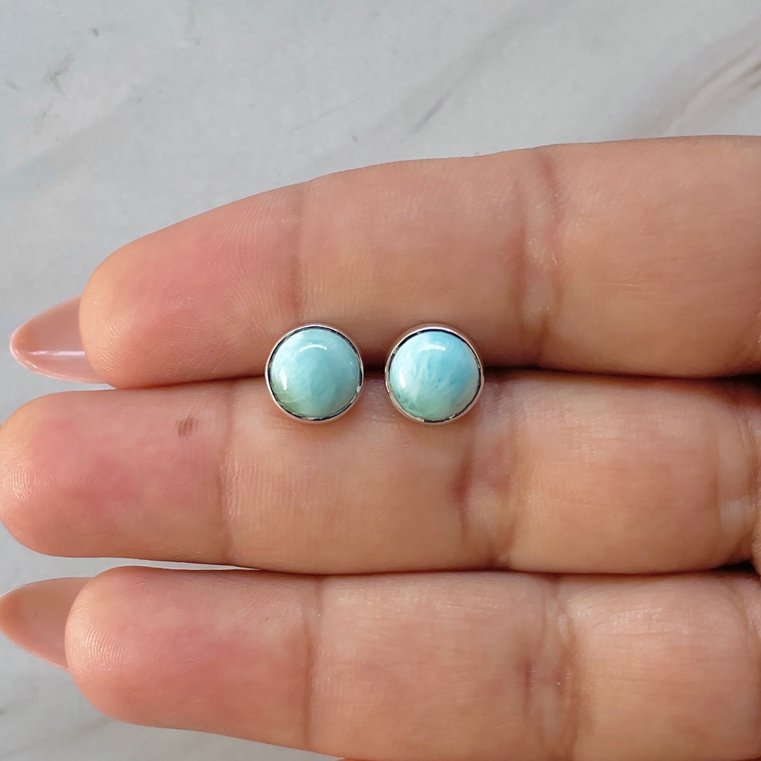 If you want to stay up to date with the newest styles, accessorize your ensemble with Larimar jewelry. For a stylish yet laid-back look, team a statement Larimar pendant with a fashionable off-the-shoulder top and high-waisted jeans. Layer statement Larimar bracelets with other delicate bangles or cuffs for a more refined effect. This stacked wrist design goes well with a fitted blazer and wide-leg pants. Wear a lovely flowery dress with statement Larimar rings for a charming and sophisticated bohemian look. Don't be scared to combine various Larimar jewelry pieces to make a one-of-a-kind statement that flawlessly reflects your distinctive sense of style. For a subtle look, adorn this classy pair of Larimar earrings with a trendy hairstyle and let your facial features accentuate.