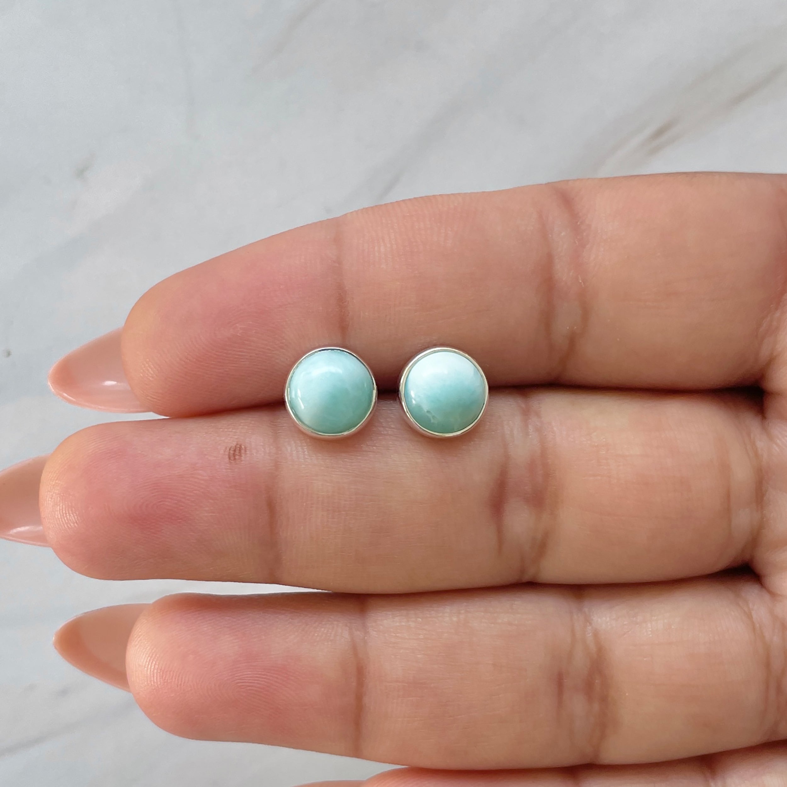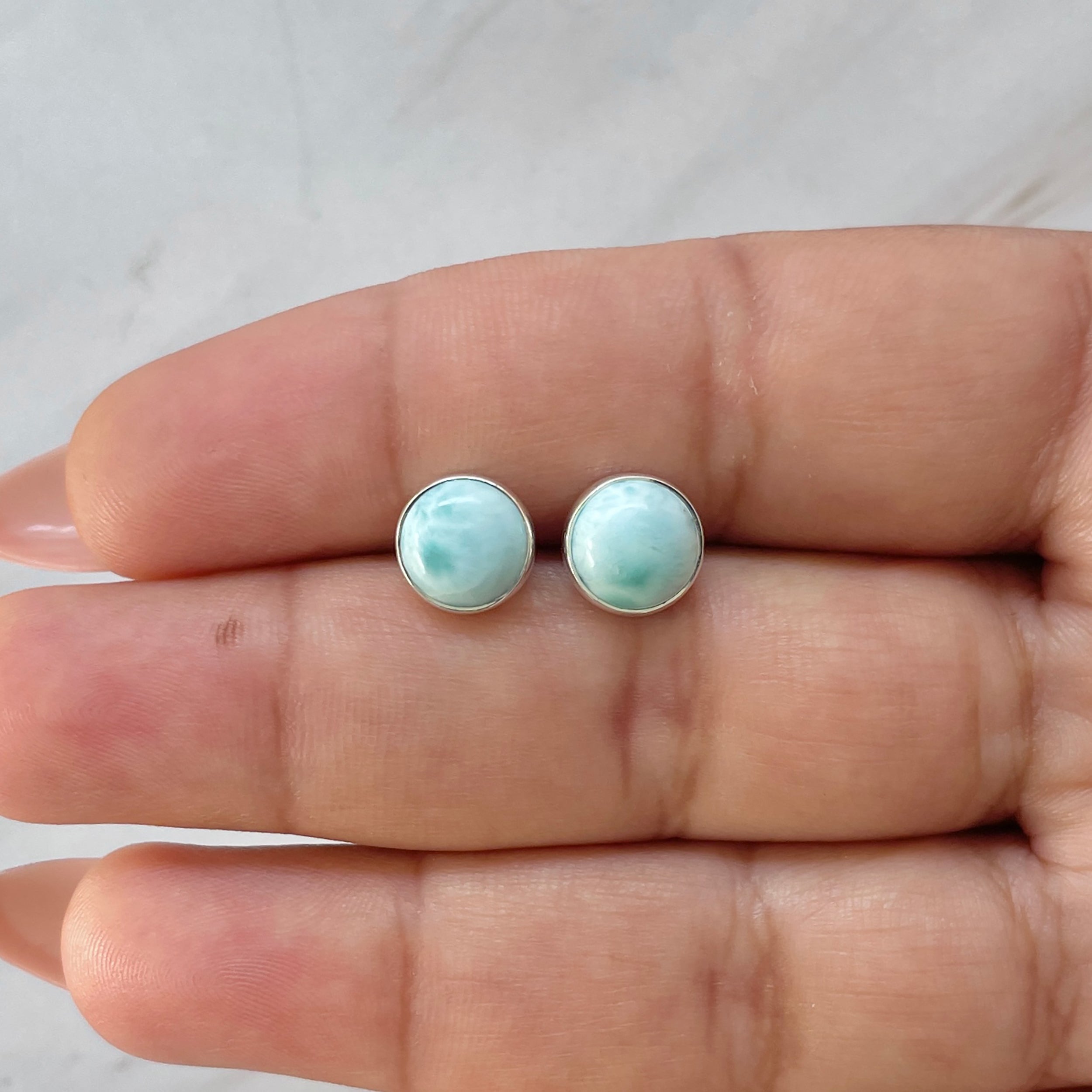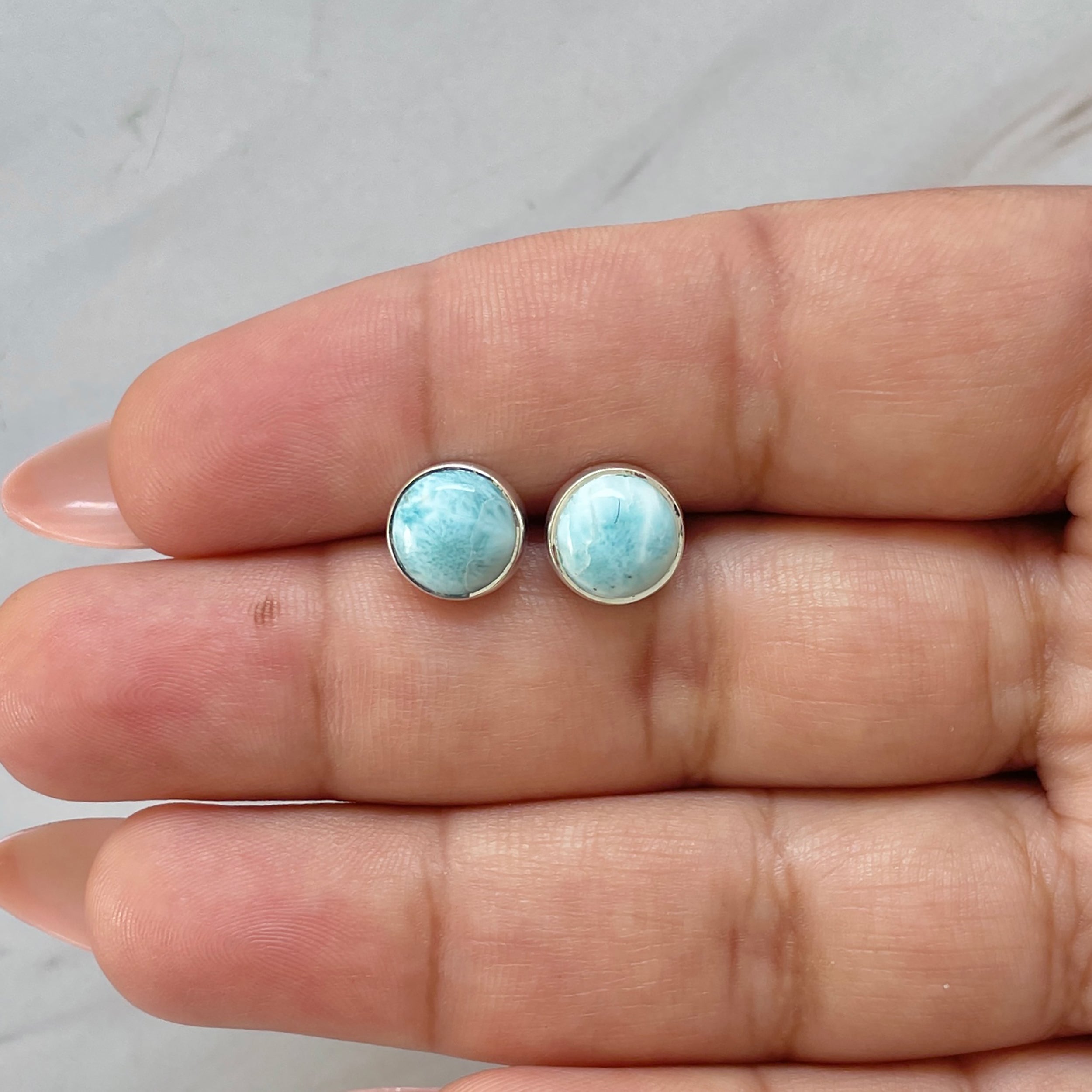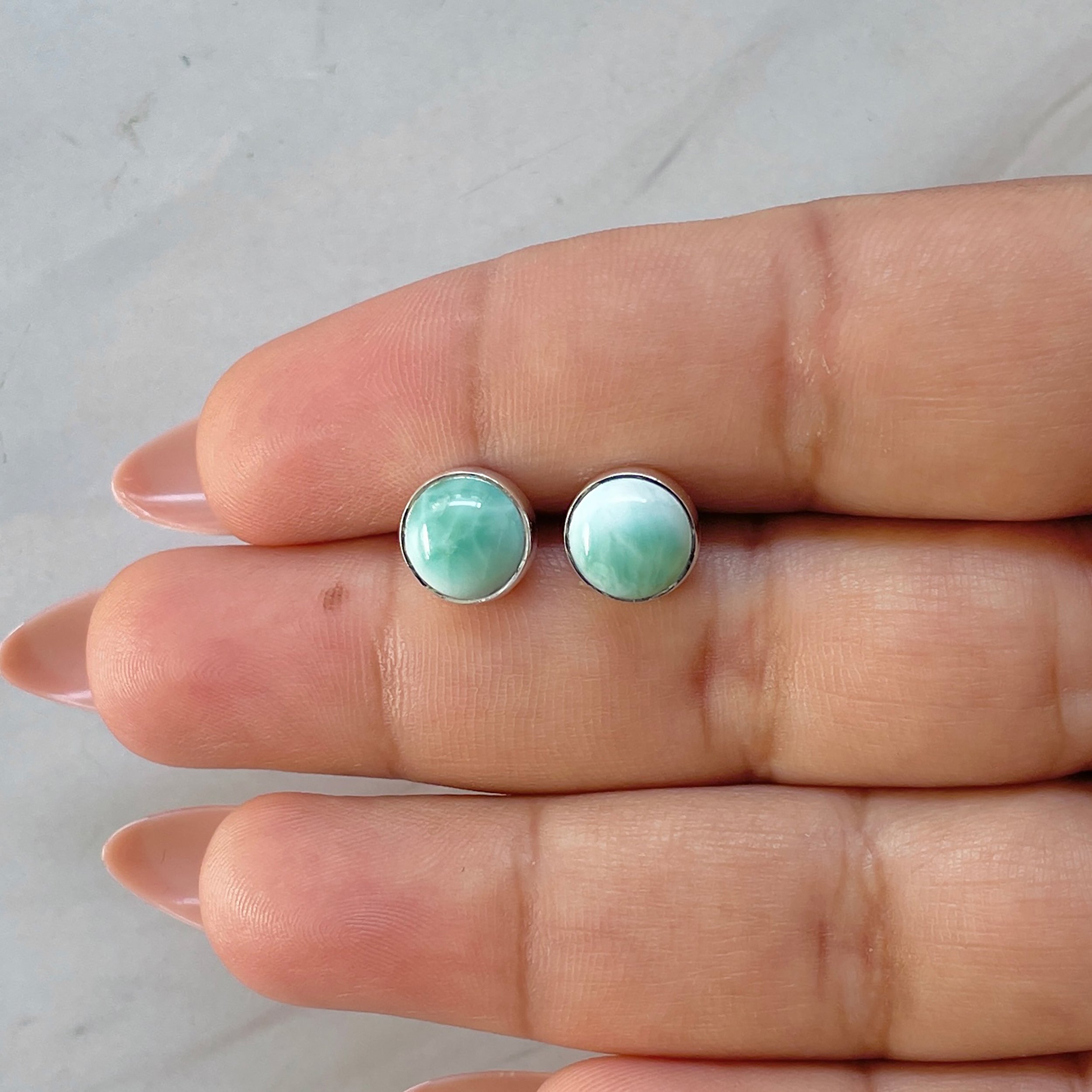 If you want to stay up to date with the newest styles, accessorize your ensemble with Larimar jewelry. For a stylish yet laid-back look, team a statement Larimar pendant with a fashionable off-the-shoulder top and high-waisted jeans. Layer statement Larimar bracelets with other delicate bangles or cuffs for a more refined effect. This stacked wrist design goes well with a fitted blazer and wide-leg pants. Wear a lovely flowery dress with statement Larimar rings for a charming and sophisticated bohemian look. Don't be scared to combine various Larimar jewelry pieces to make a one-of-a-kind statement that flawlessly reflects your distinctive sense of style. For a subtle look, adorn this classy pair of Larimar earrings with a trendy hairstyle and let your facial features accentuate.