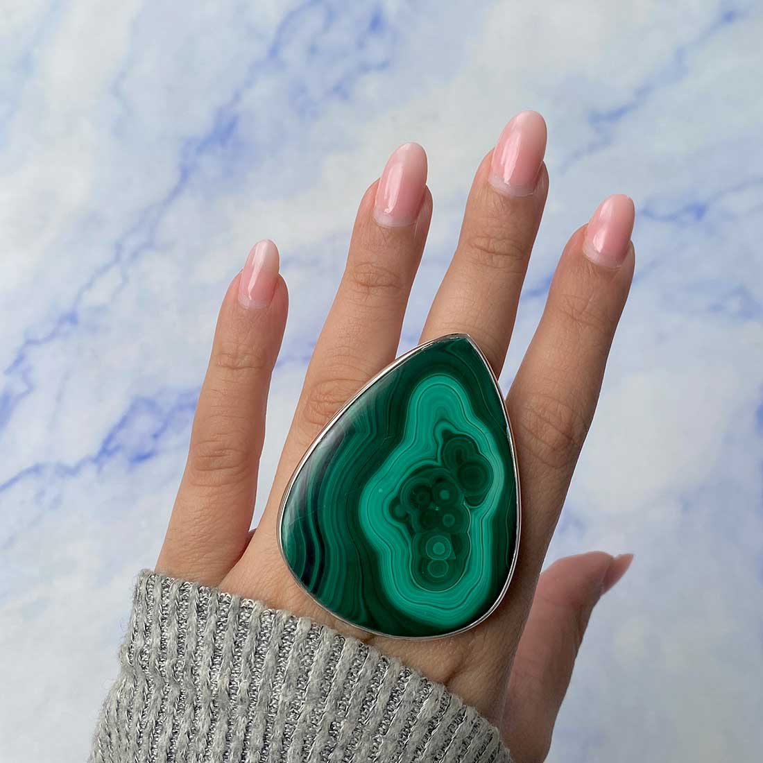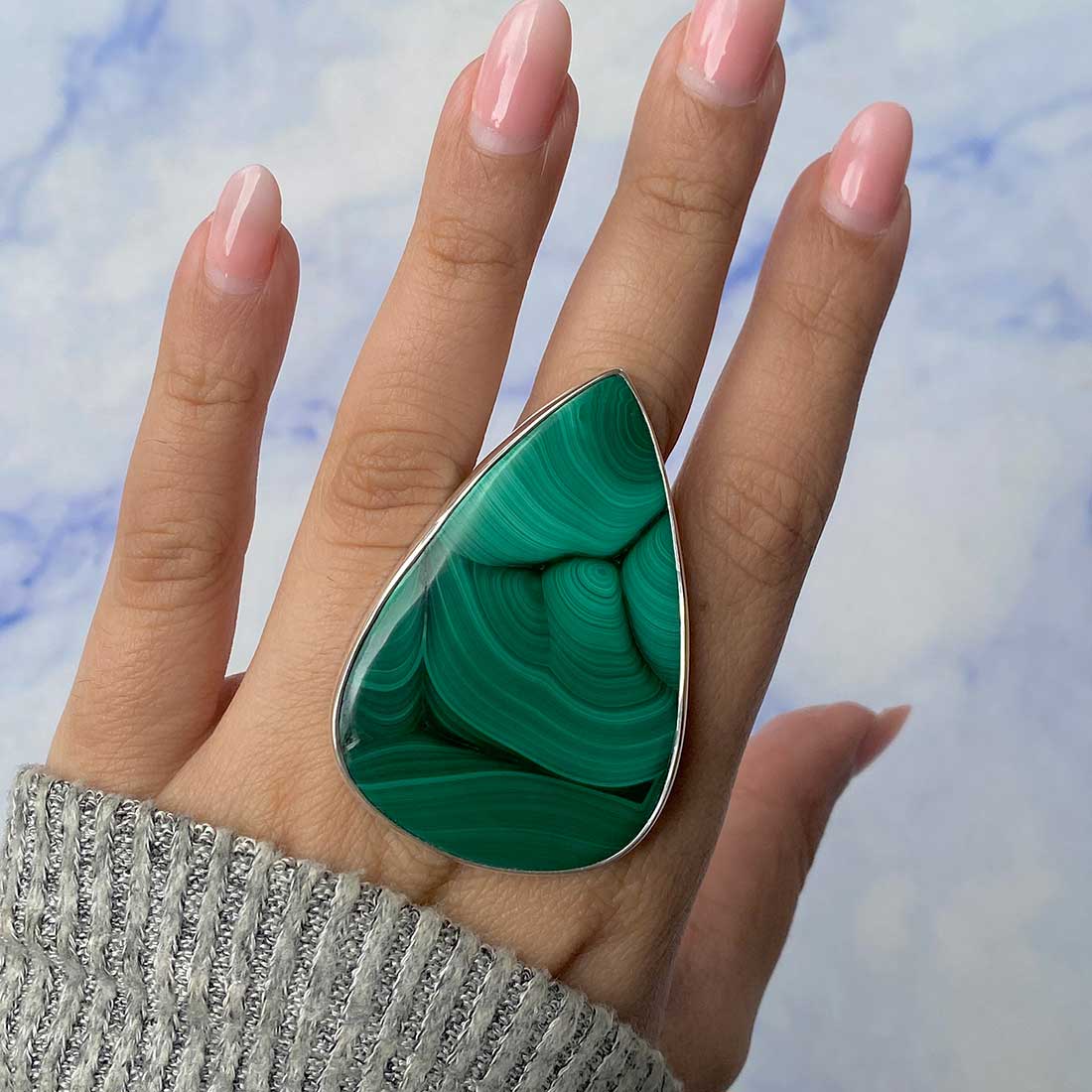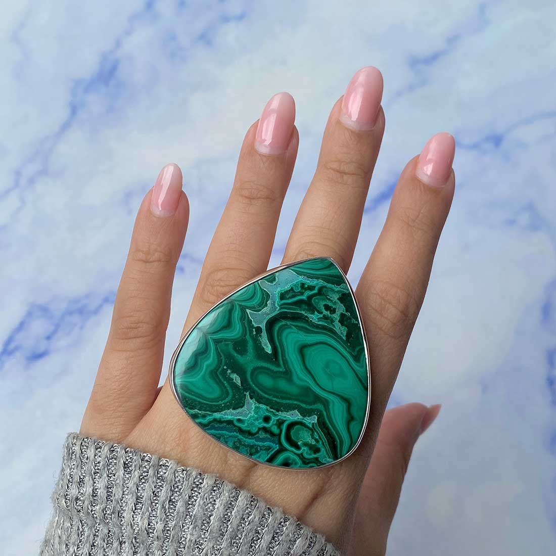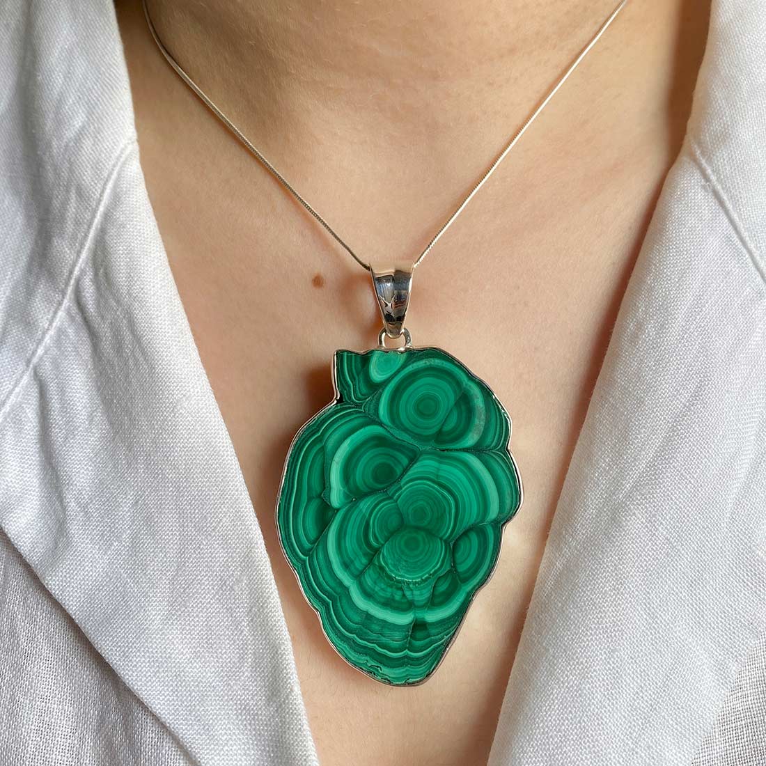 Wear a statement Malachite bracelet with bohemian-inspired attire to embrace the earthy vibes. Accessorize a statement Malachite pendant with a simple monochrome ensemble to add a touch of elegance wherever you go. Wear neutral clothing to make a statement with statement Malachite rings for a distinctive style. Think about wearing tiny hoops or statement Malachite earrings as daily wear.