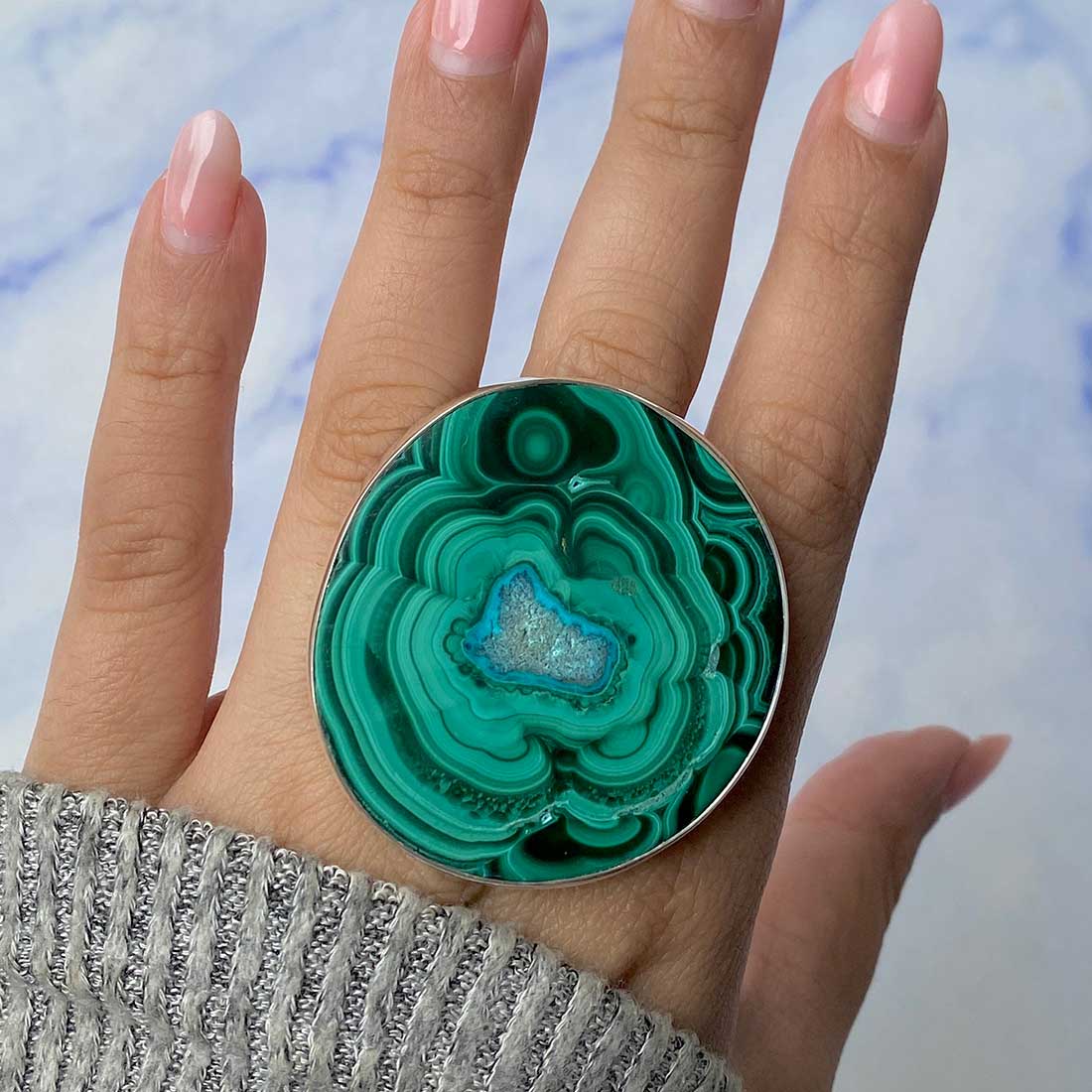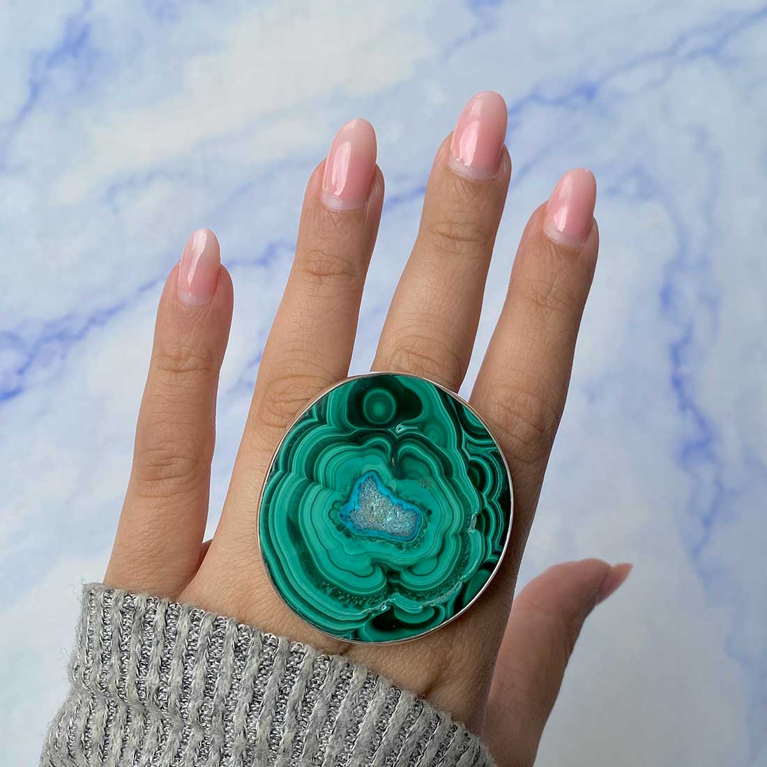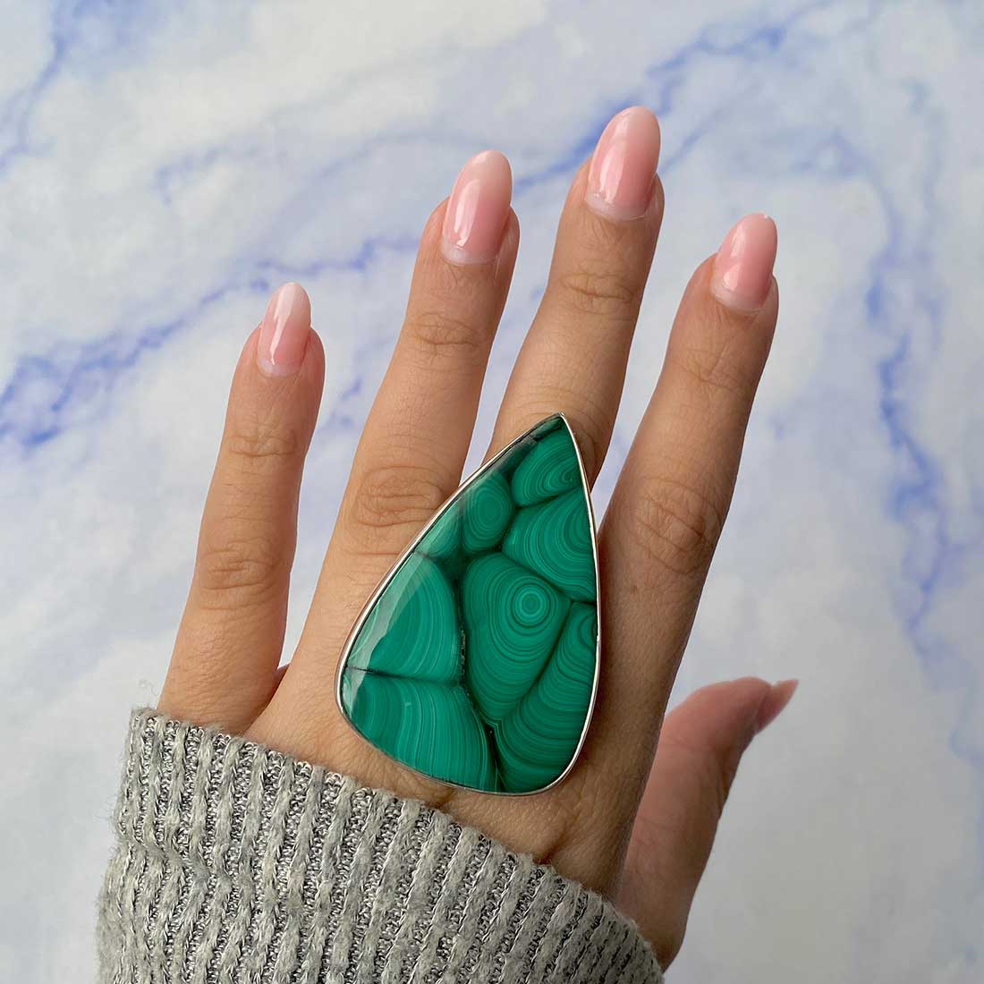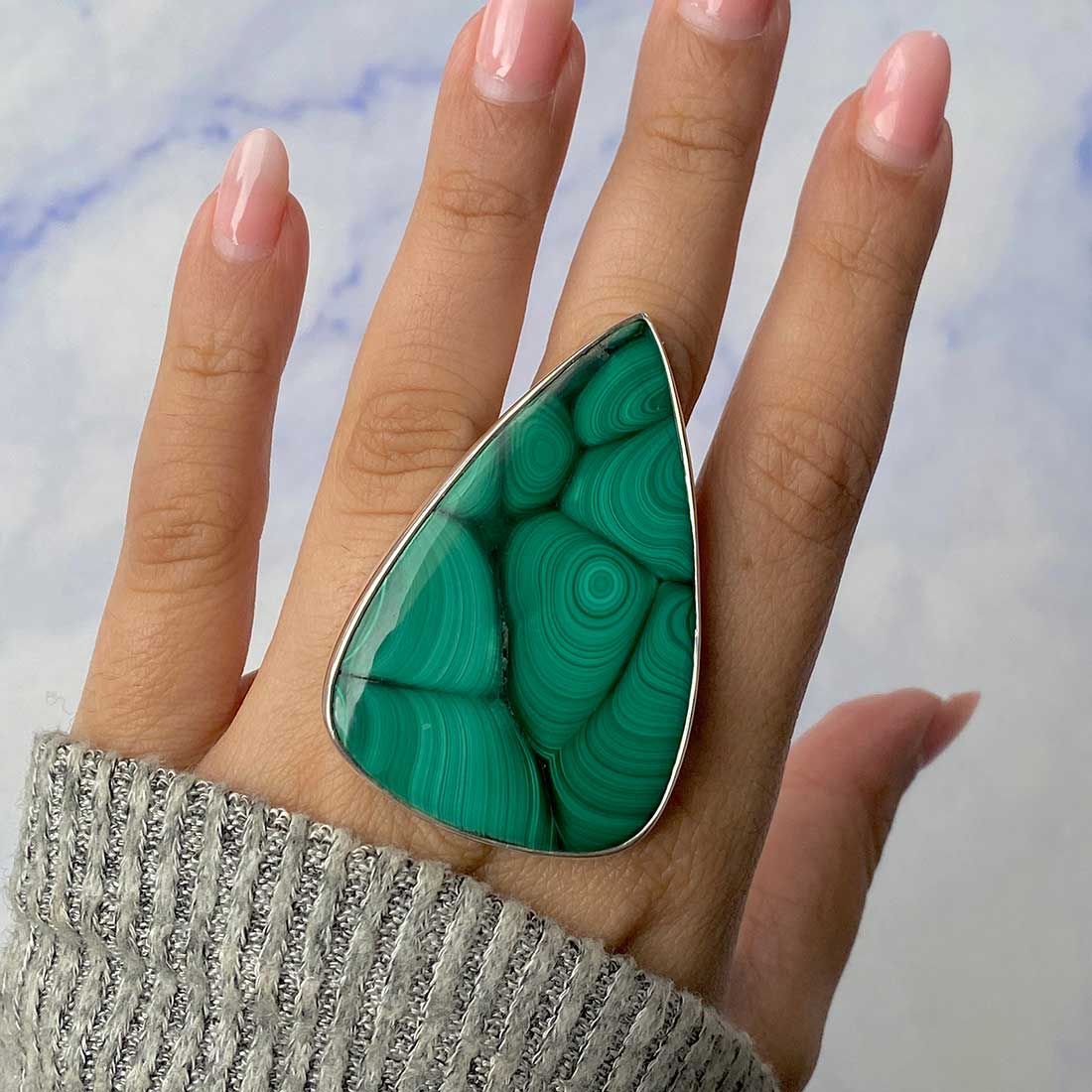 Wear a statement Malachite bracelet with bohemian-inspired attire to embrace the earthy vibes. Accessorize a statement Malachite pendant with a simple monochrome ensemble to add a touch of elegance wherever you go. Wear neutral clothing to make a statement with statement Malachite rings for a distinctive style. Think about wearing tiny hoops or statement Malachite earrings as daily wear.