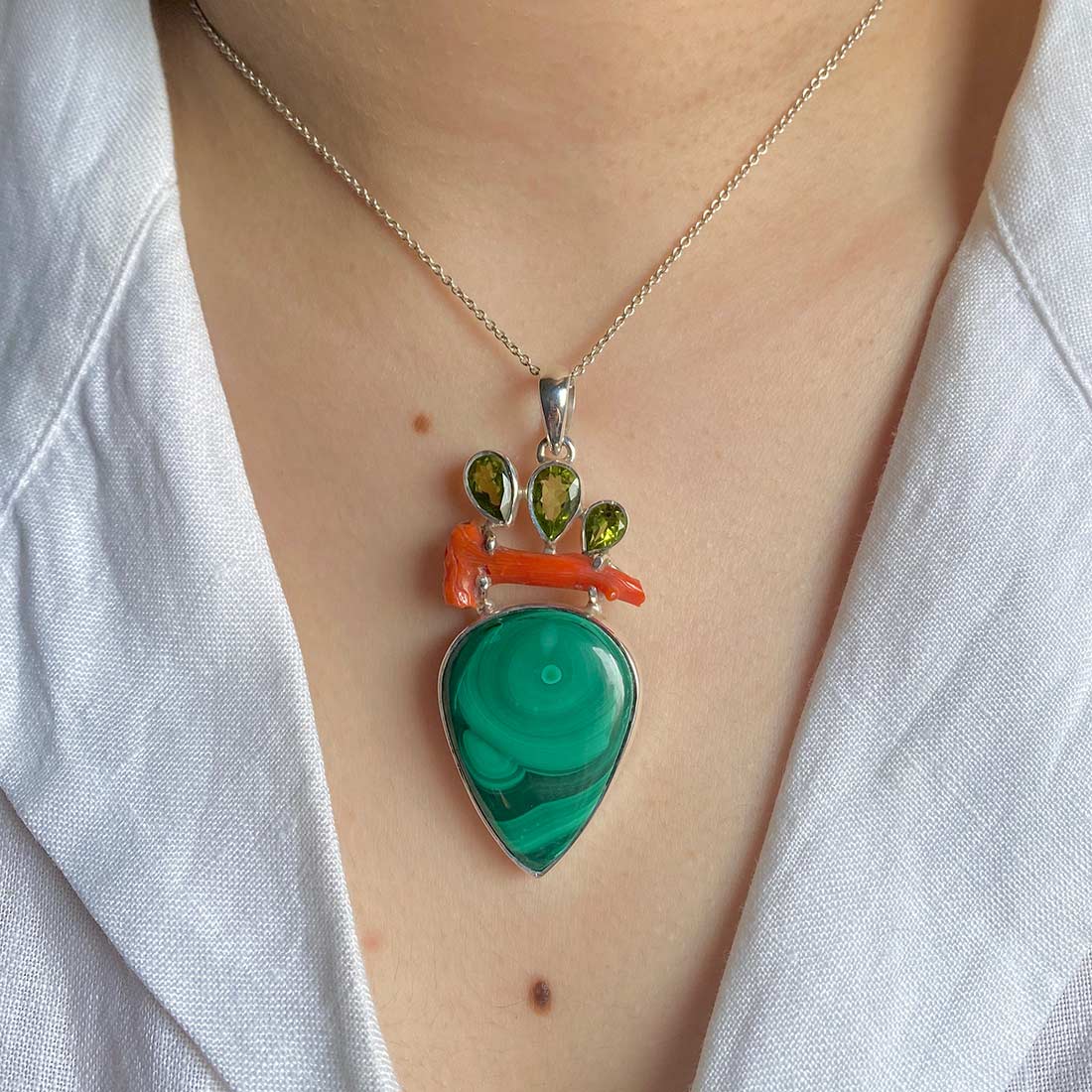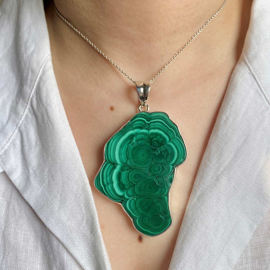Wear a statement Malachite bracelet with bohemian-inspired attire to embrace the earthy vibes. Accessorize a statement Malachite pendant with a simple monochrome ensemble to add a touch of elegance wherever you go. Wear neutral clothing to make a statement with statement Malachite rings for a distinctive style. Think about wearing tiny hoops or statement Malachite earrings as daily wear.