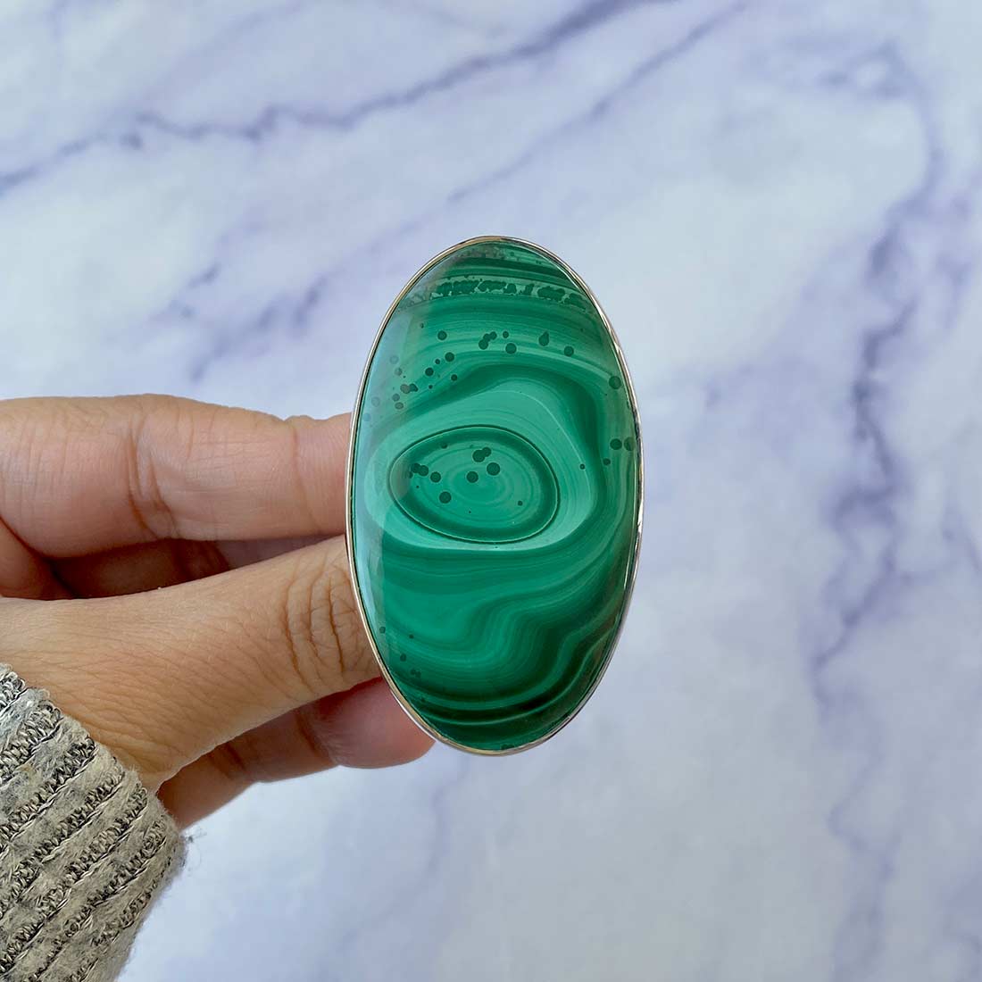 Wear a statement Malachite bracelet with bohemian-inspired attire to embrace the earthy vibes. Accessorize a statement Malachite pendant with a simple monochrome ensemble to add a touch of elegance wherever you go. Wear neutral clothing to make a statement with statement Malachite rings for a distinctive style. Think about wearing tiny hoops or statement Malachite earrings as daily wear.