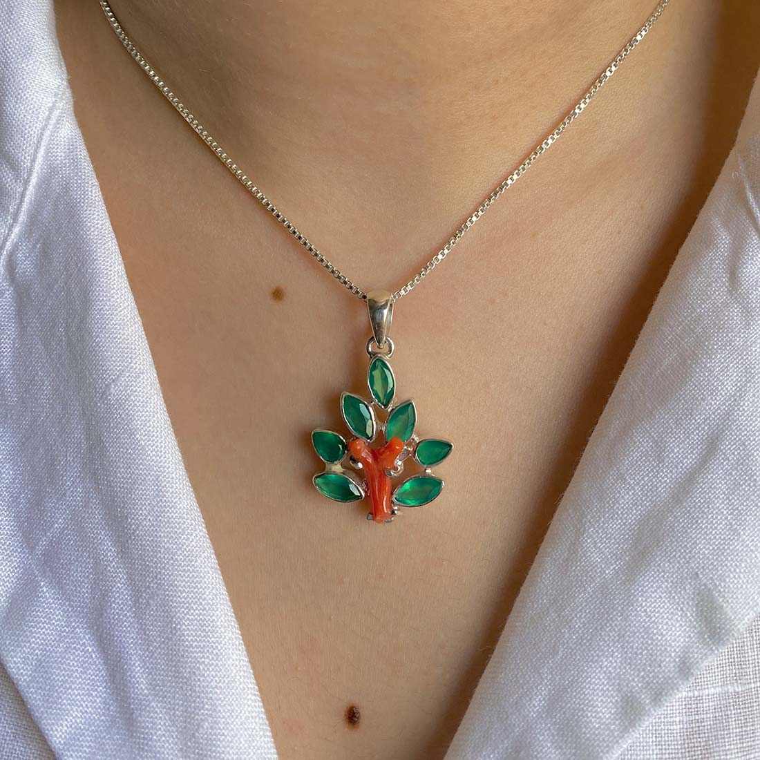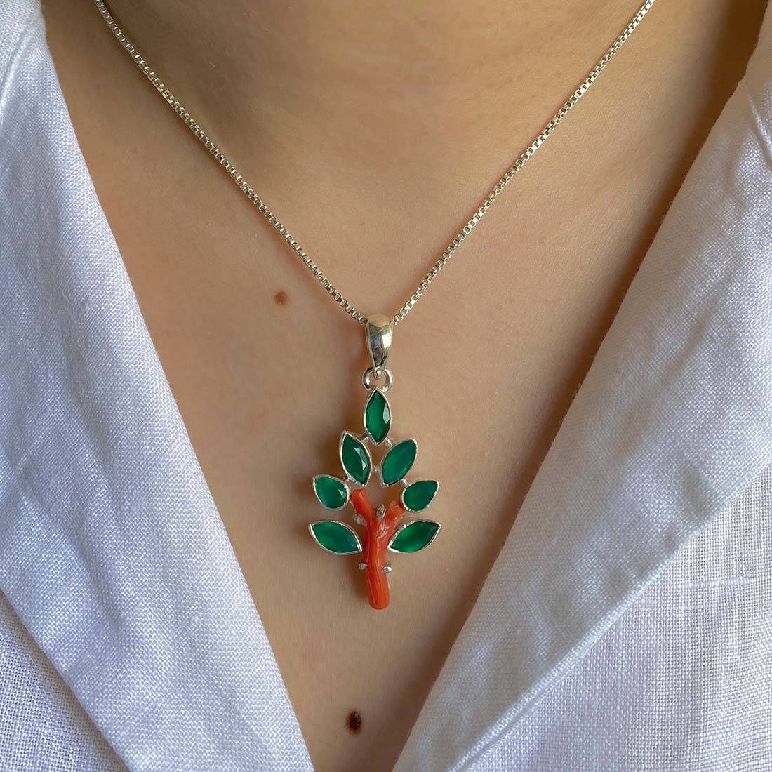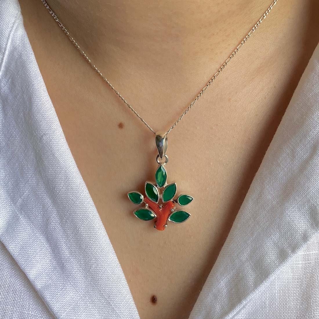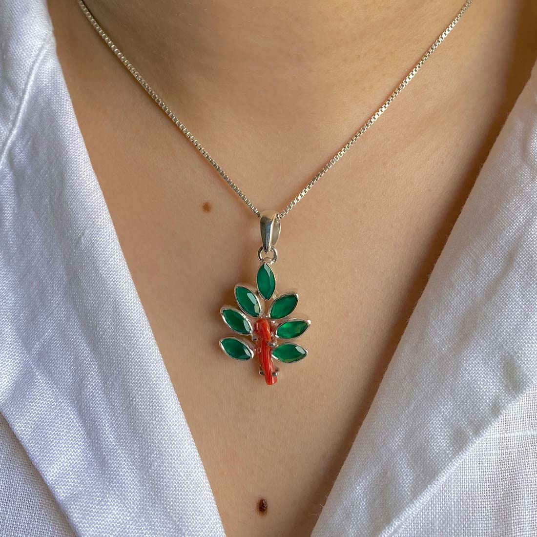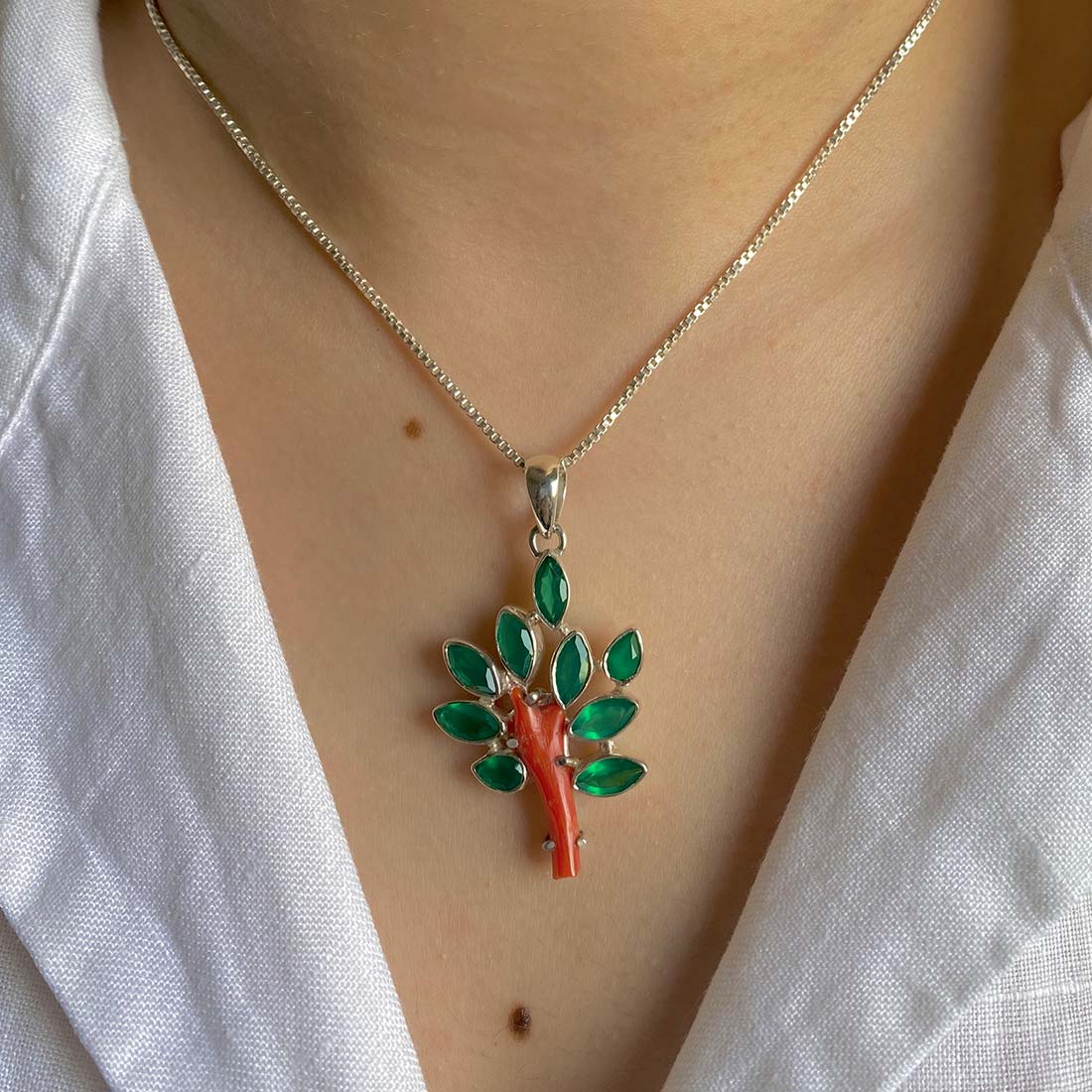 Similarly, a Green Onyx and Red Coral pendant exhibits a unique charisma that makes you want to buy it. This combination of green and red is really extraordinary and never makes you look ordinary. Ultimately, the secret is playing around with various textures, hues, and materials to create a unique tree-shaped Garnet and Red Coral pendant or a Green Onyx and Red Coral pendant, expressing individuality and inventiveness.