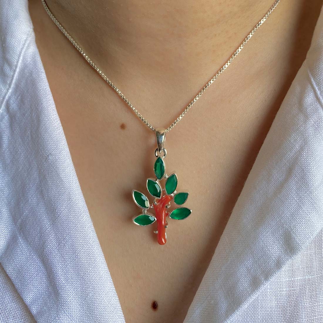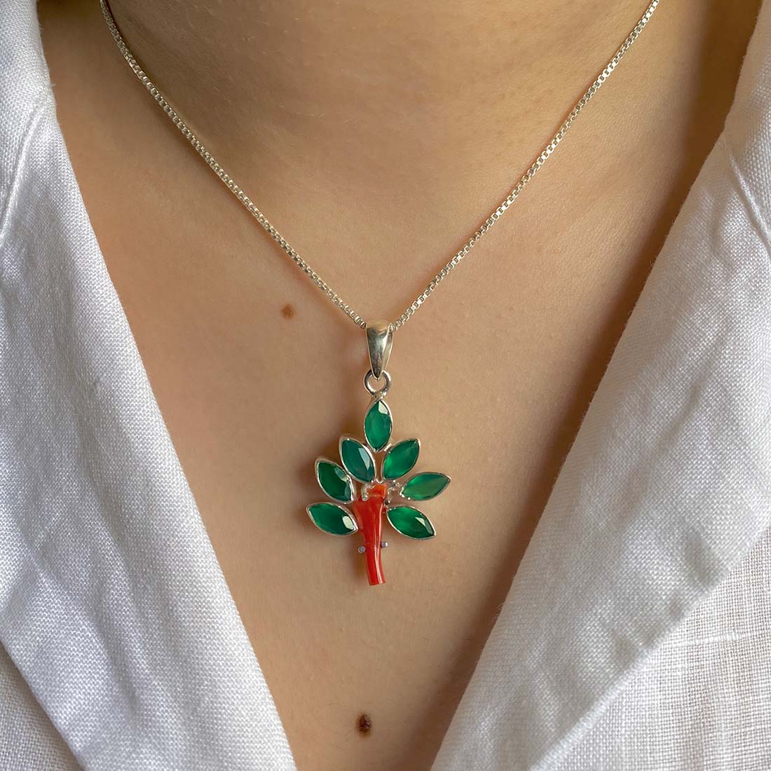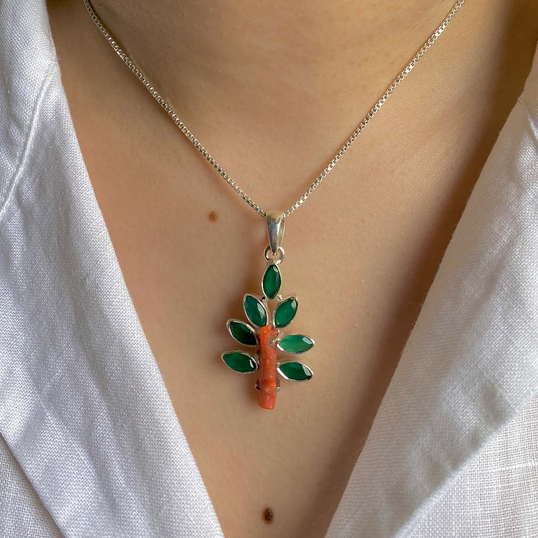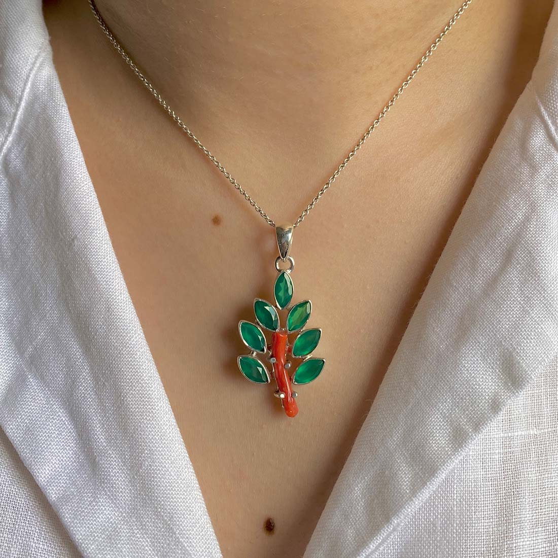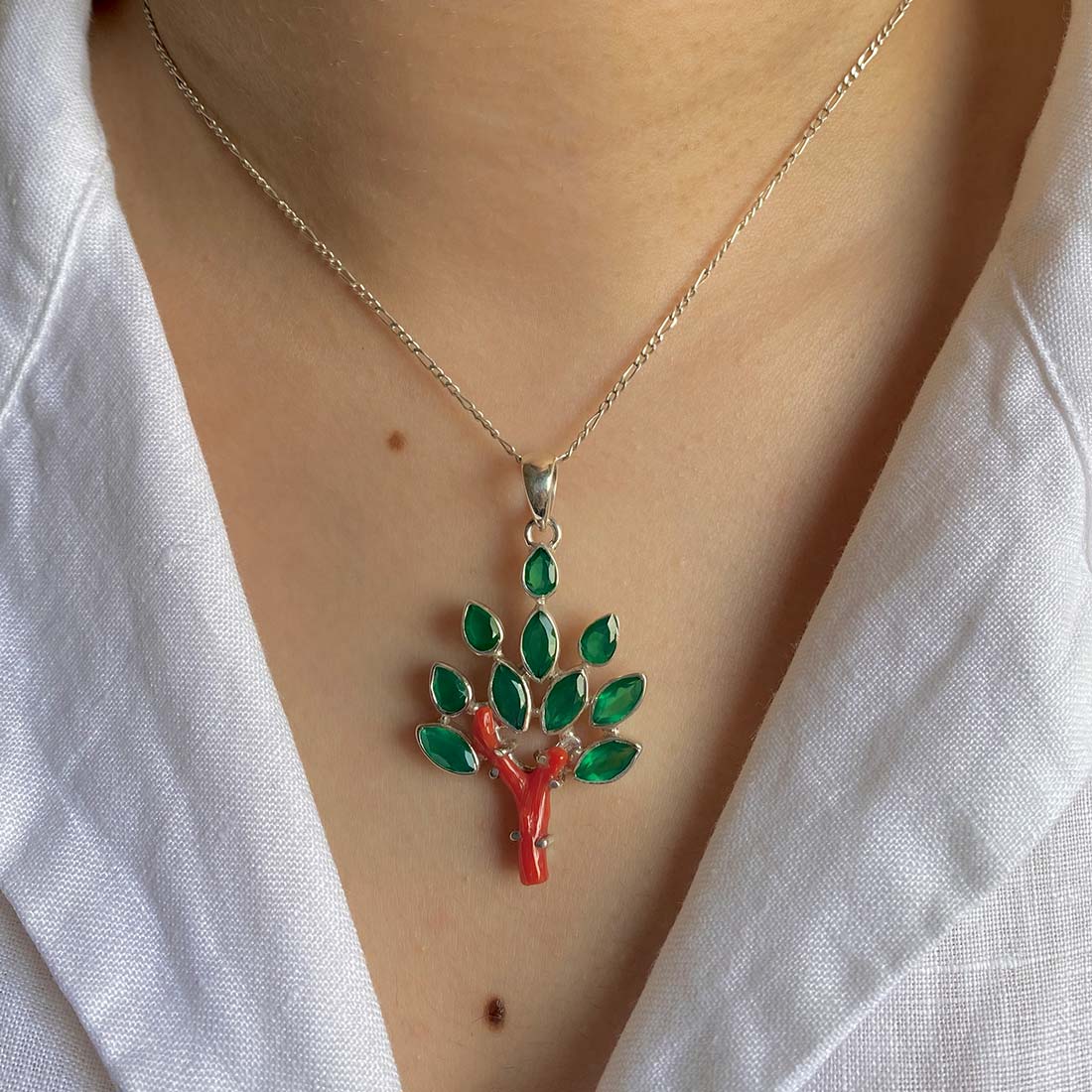 Similarly, a Green Onyx and Red Coral pendant exhibits a unique charisma that makes you want to buy it. This combination of green and red is really extraordinary and never makes you look ordinary. Ultimately, the secret is playing around with various textures, hues, and materials to create a unique tree-shaped Garnet and Red Coral pendant or a Green Onyx and Red Coral pendant, expressing individuality and inventiveness.