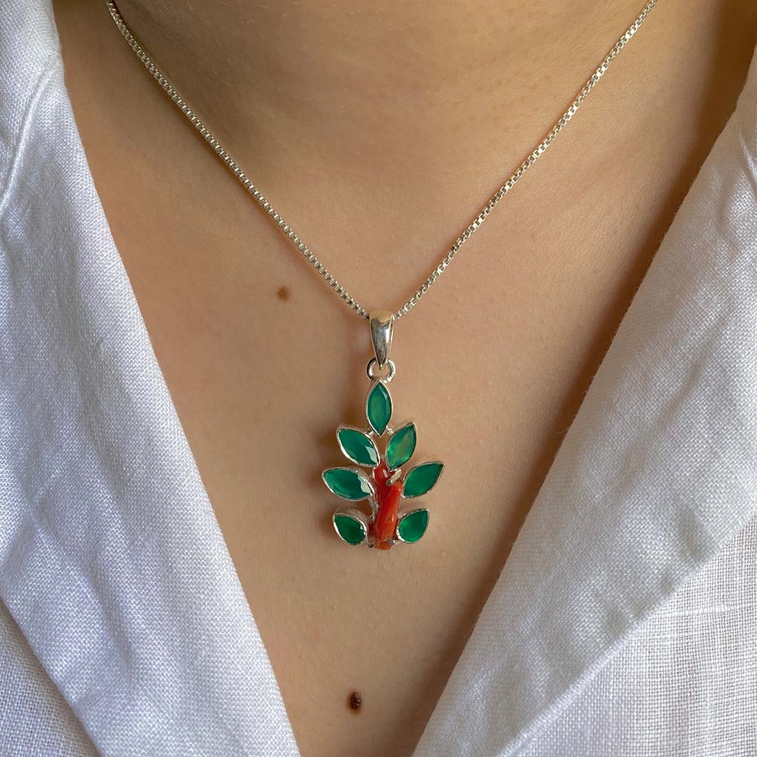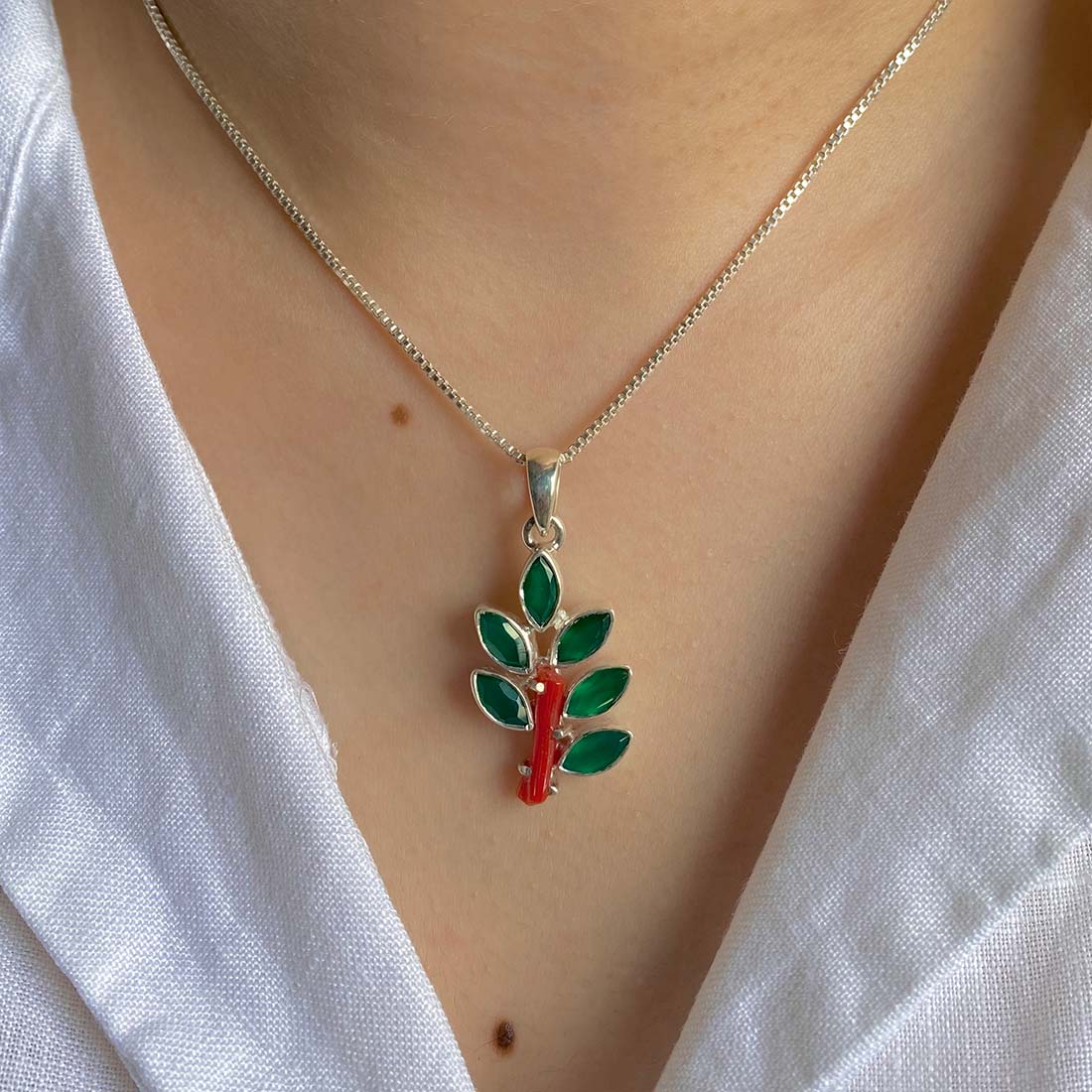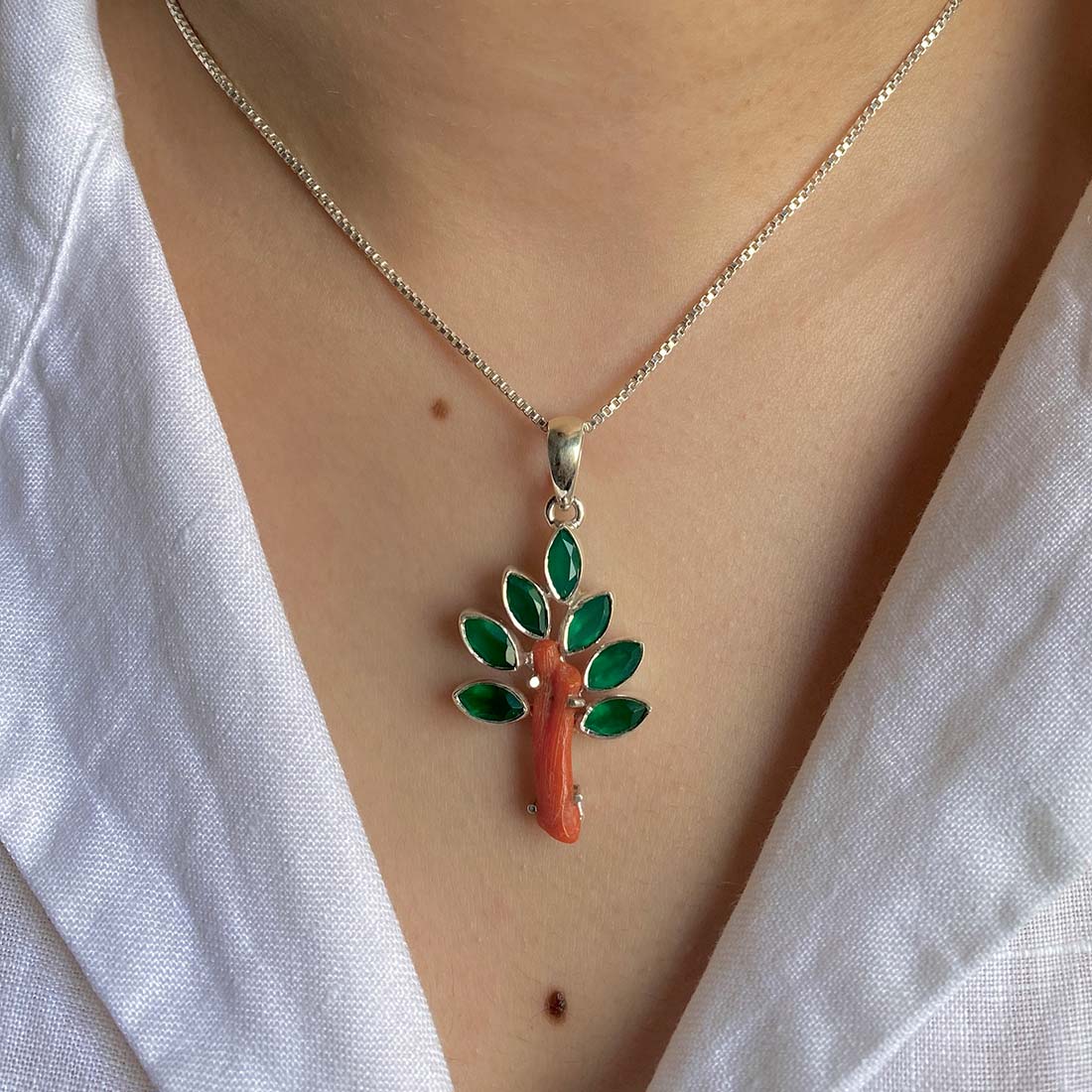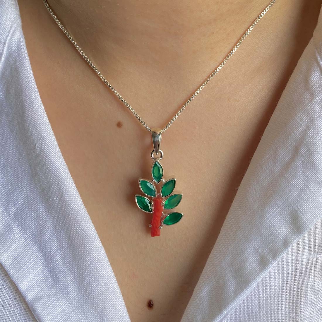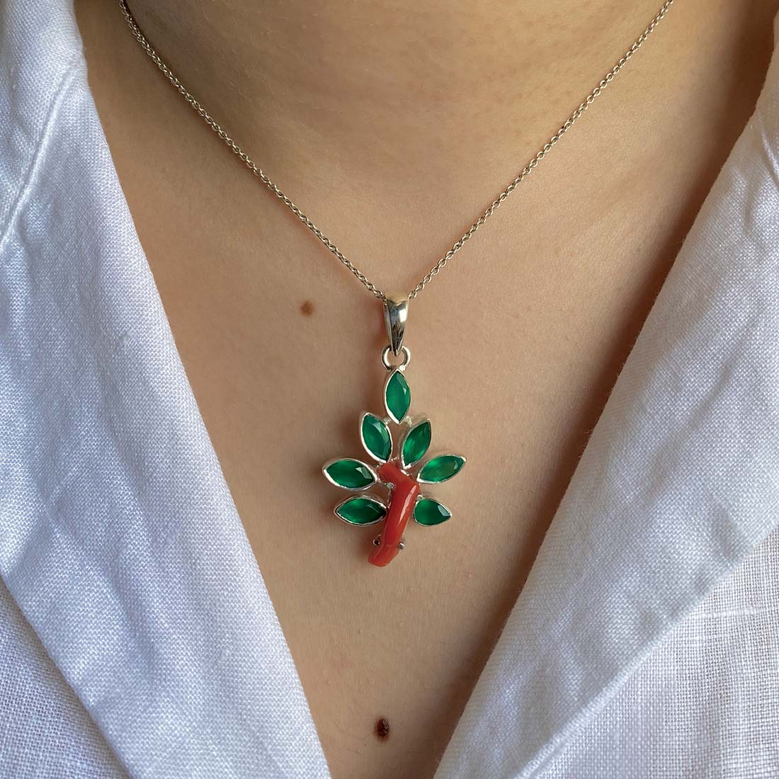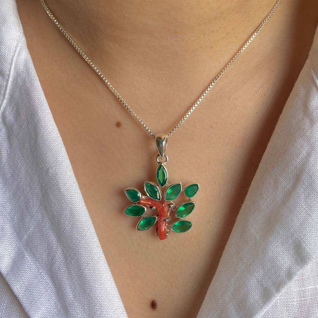 Similarly, a Green Onyx and Red Coral pendant exhibits a unique charisma that makes you want to buy it. This combination of green and red is really extraordinary and never makes you look ordinary. Ultimately, the secret is playing around with various textures, hues, and materials to create a unique tree-shaped Garnet and Red Coral pendant or a Green Onyx and Red Coral pendant, expressing individuality and inventiveness.