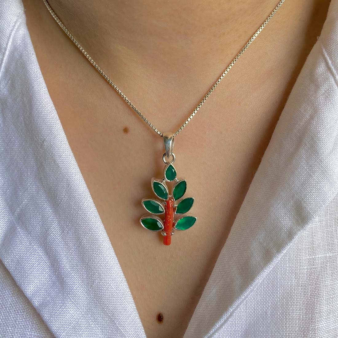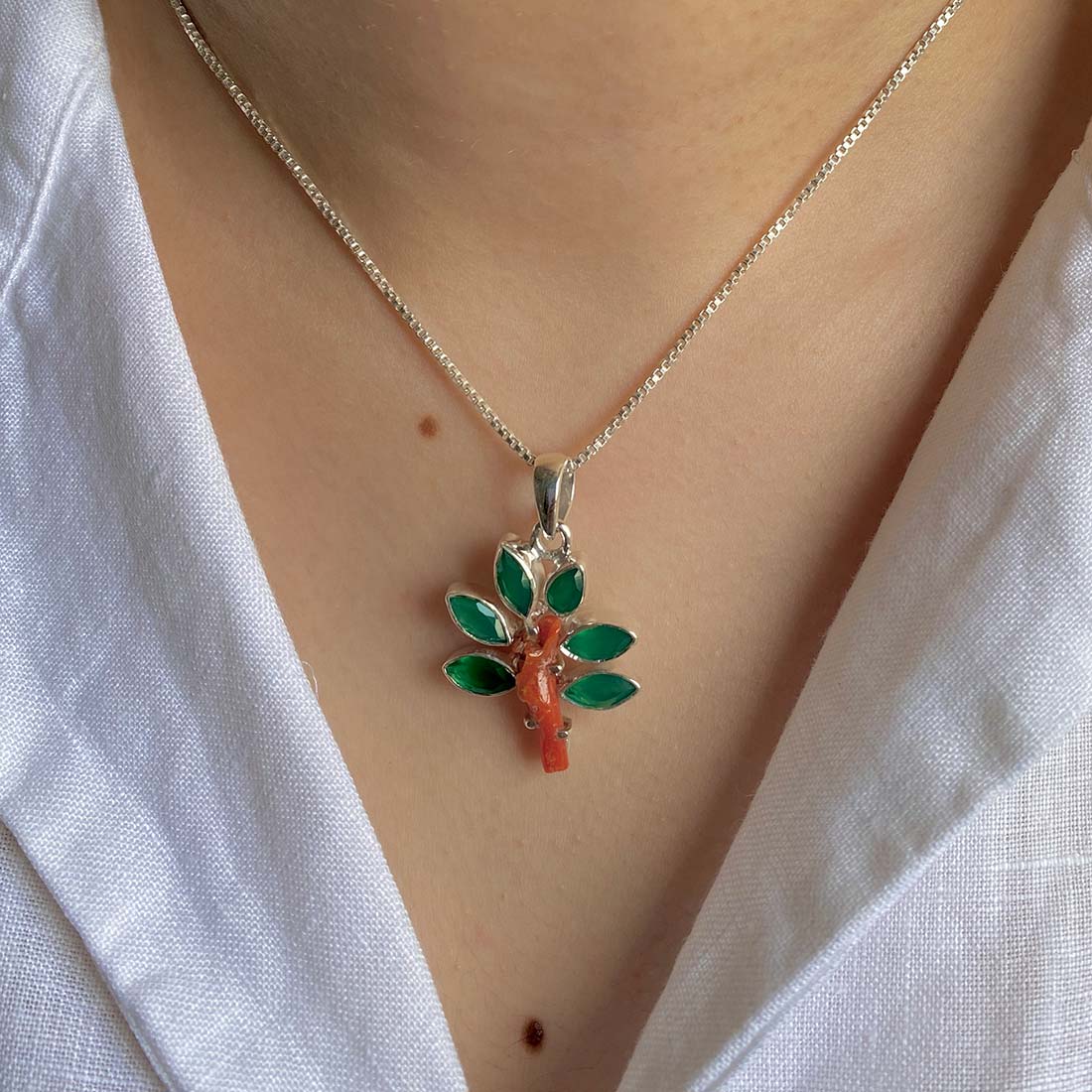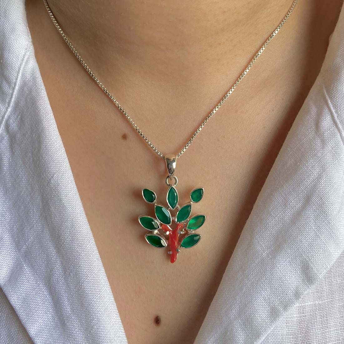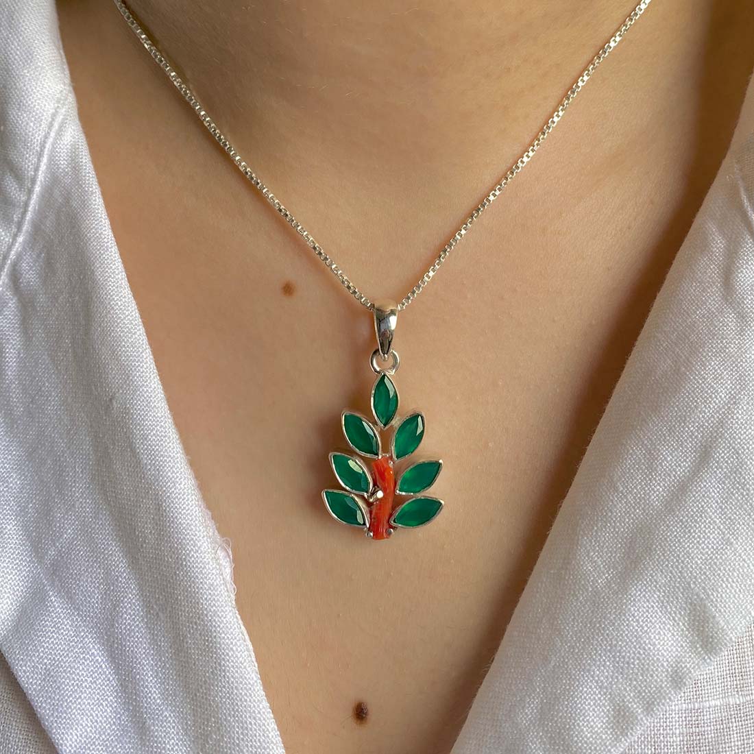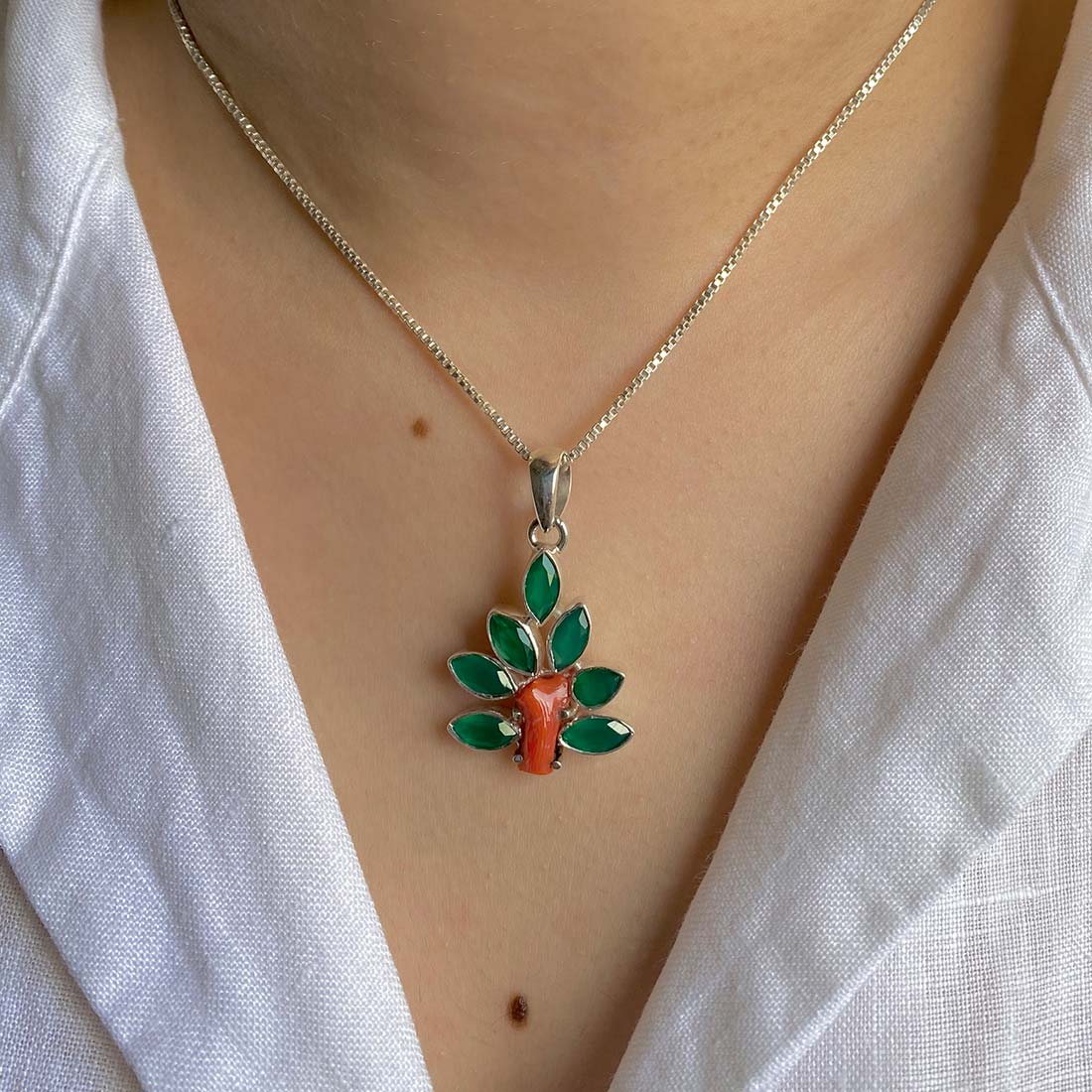 Similarly, a Green Onyx and Red Coral pendant exhibits a unique charisma that makes you want to buy it. This combination of green and red is really extraordinary and never makes you look ordinary. Ultimately, the secret is playing around with various textures, hues, and materials to create a unique tree-shaped Garnet and Red Coral pendant or a Green Onyx and Red Coral pendant, expressing individuality and inventiveness.