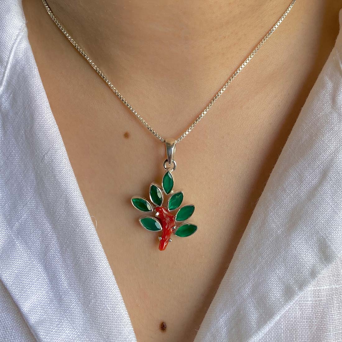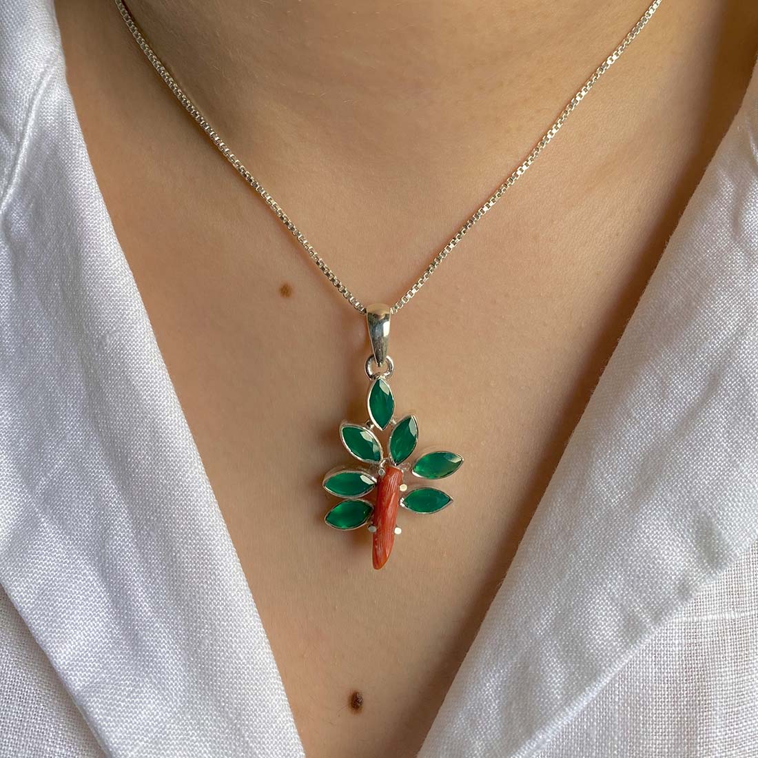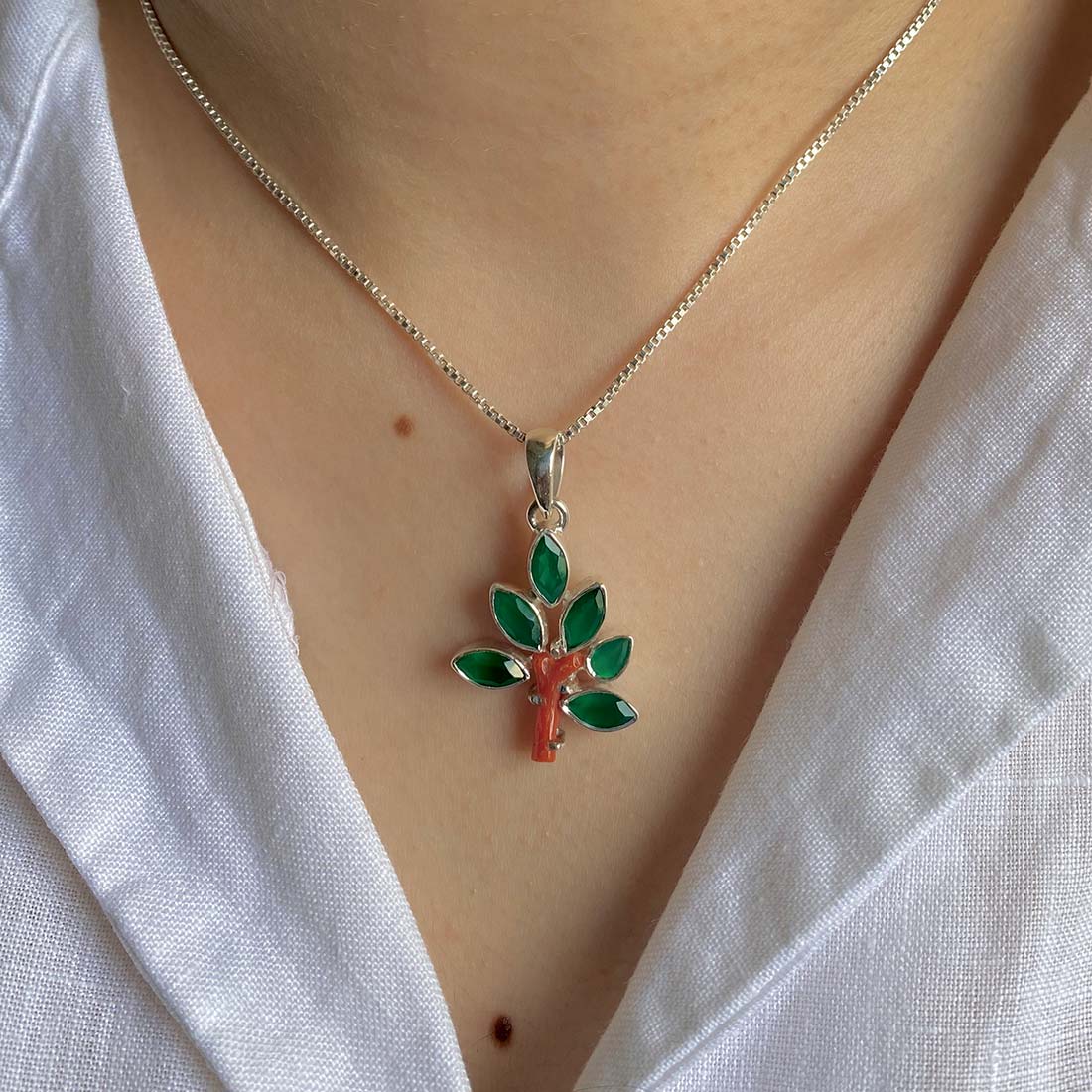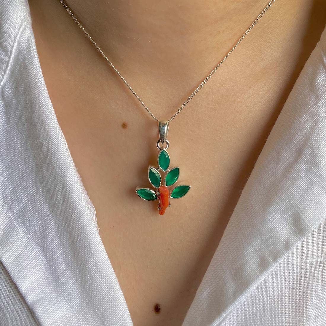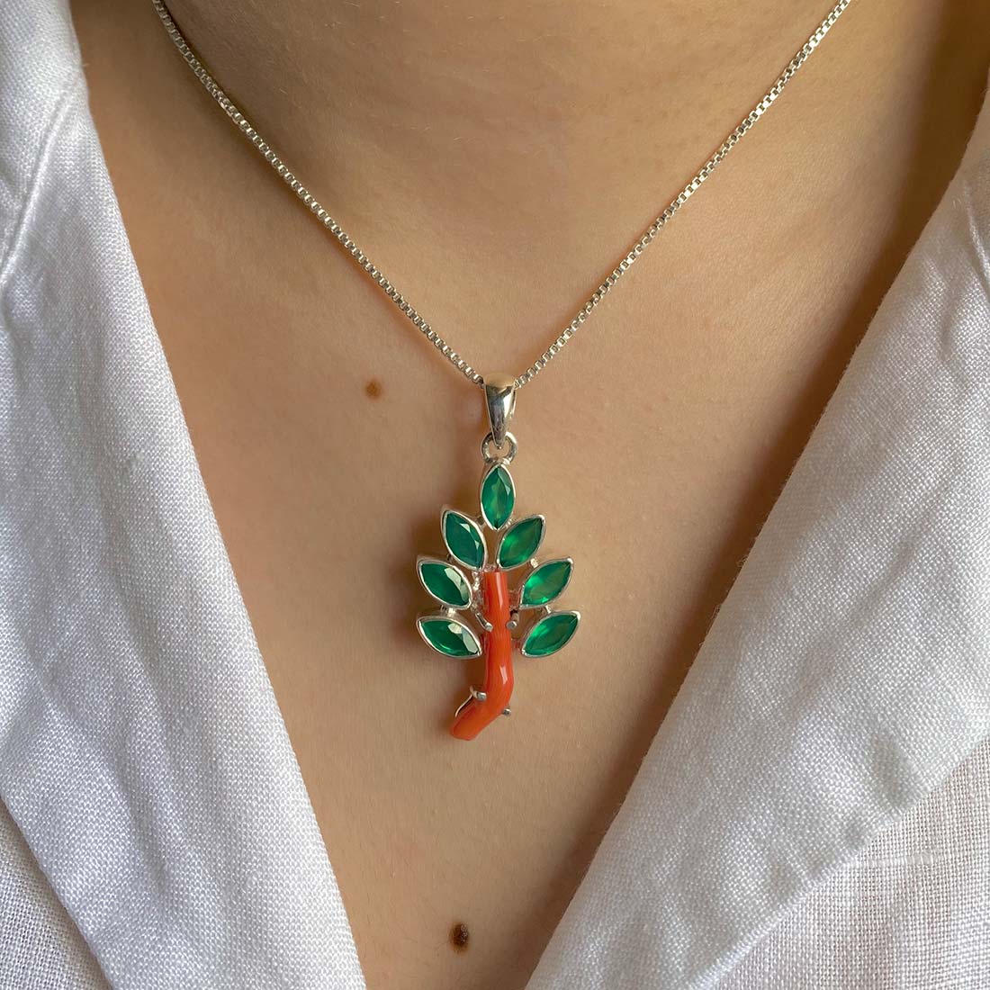 Similarly, a Green Onyx and Red Coral pendant exhibits a unique charisma that makes you want to buy it. This combination of green and red is really extraordinary and never makes you look ordinary. Ultimately, the secret is playing around with various textures, hues, and materials to create a unique tree-shaped Garnet and Red Coral pendant or a Green Onyx and Red Coral pendant, expressing individuality and inventiveness.