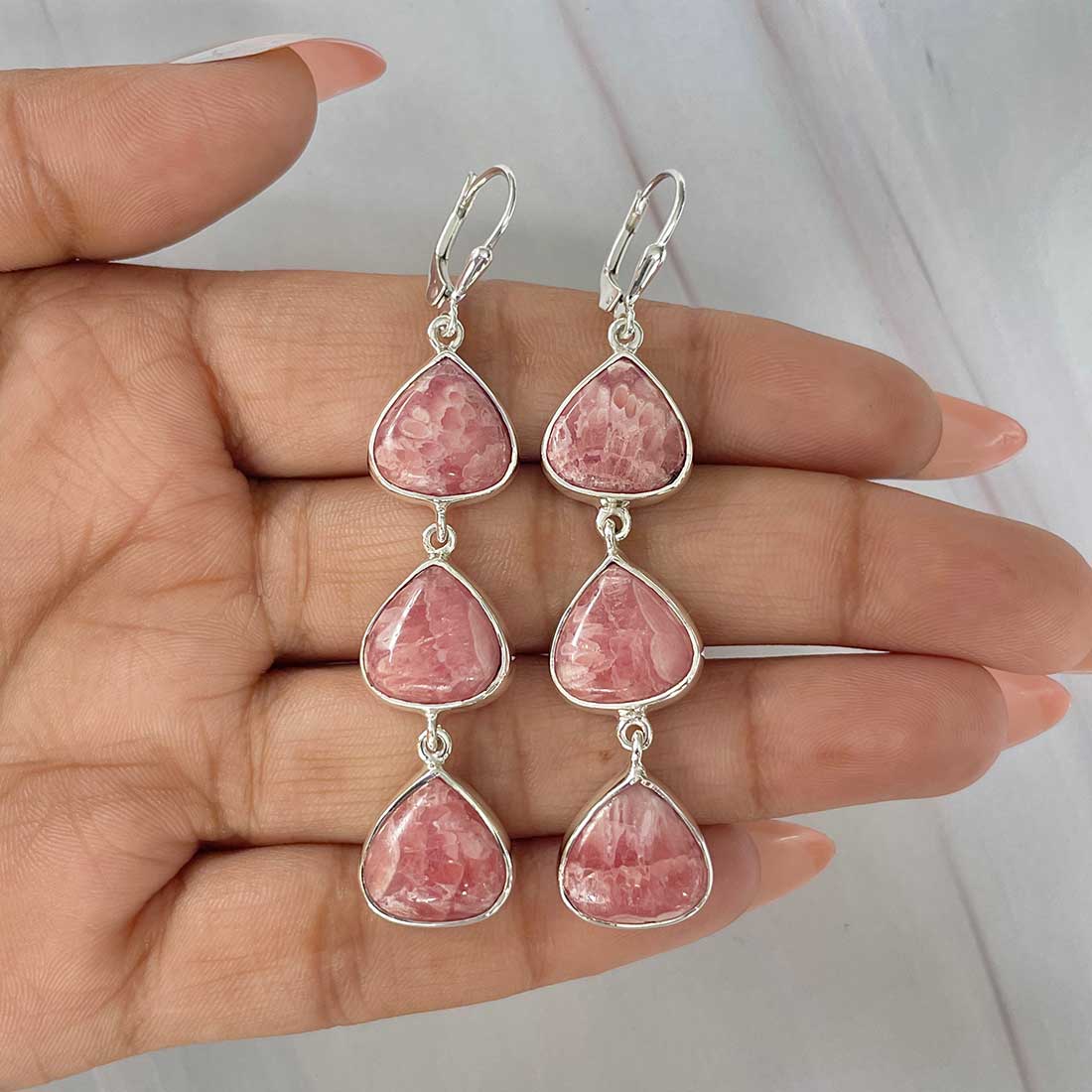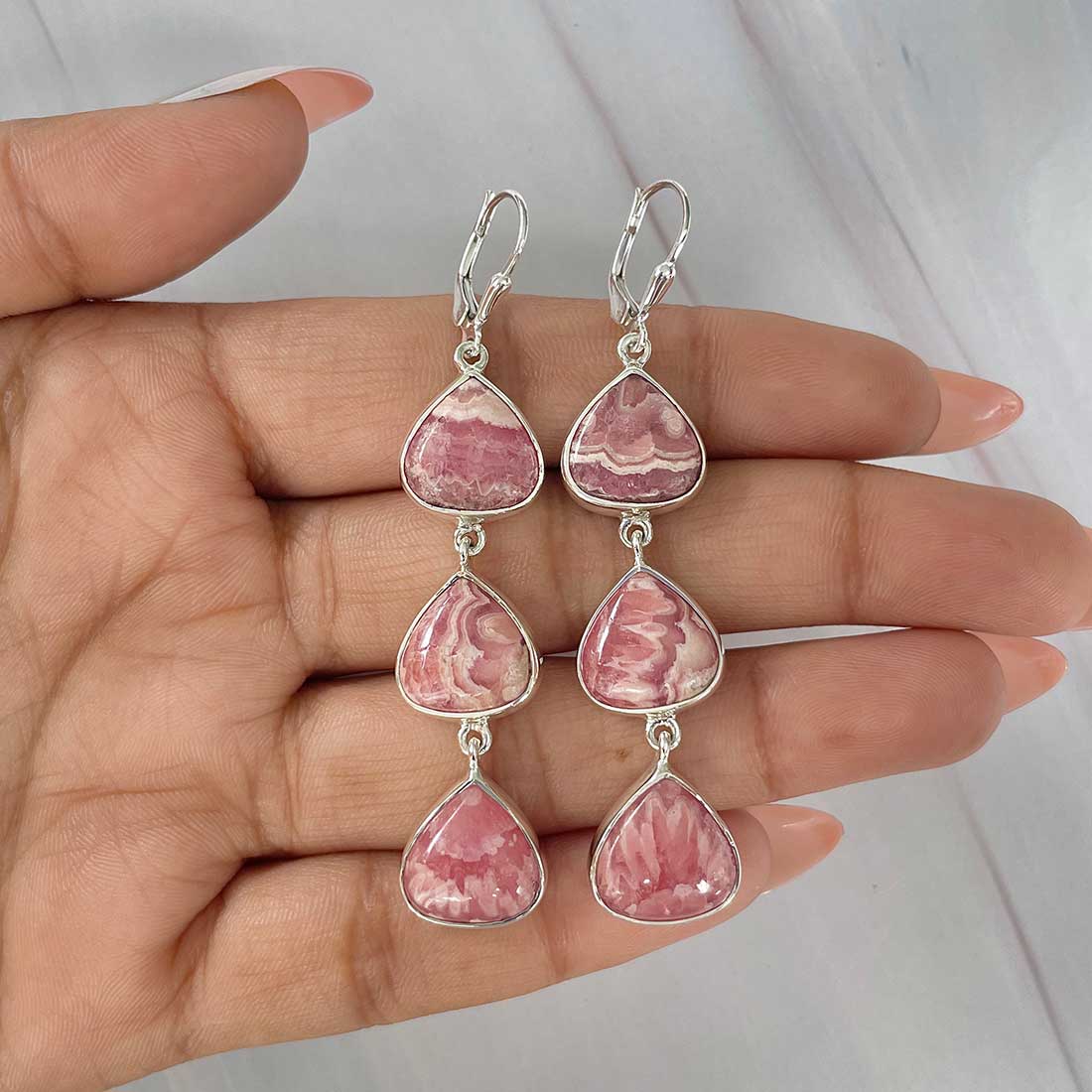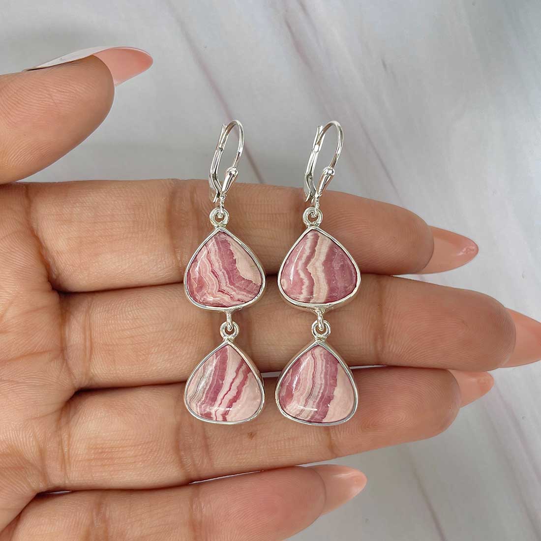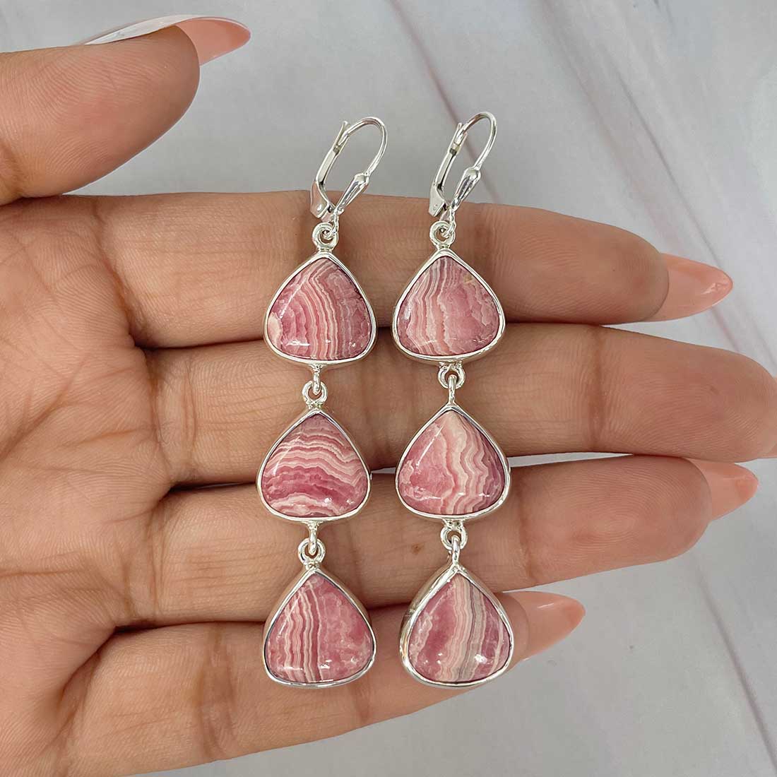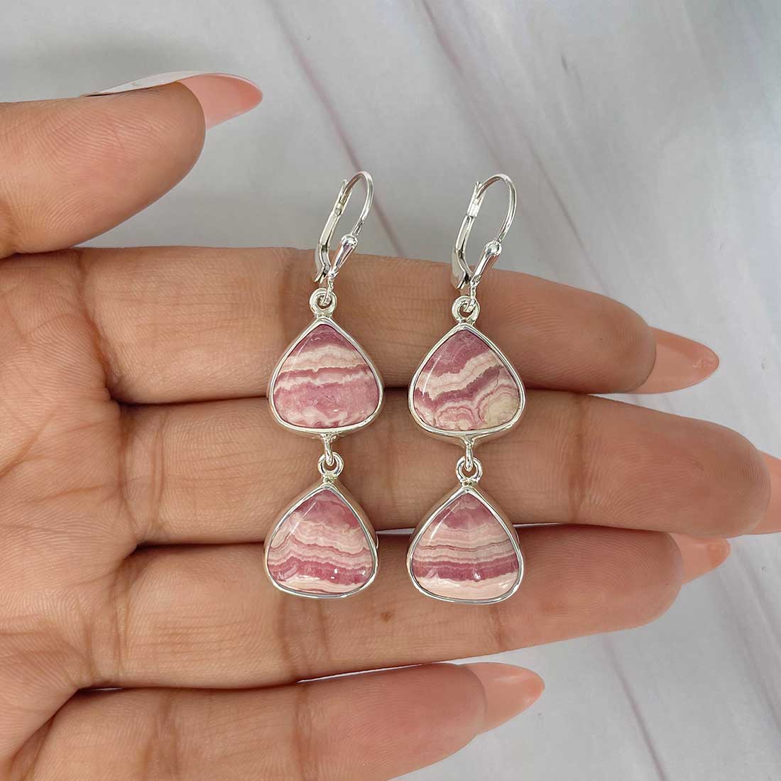 There are lots of interesting and fashionable ways to wear Rhodochrosite jewelry. Wear your spectacular statement Rhodochrosite earrings with complementary or opposing clothing for a distinctive and stylish look. Keep the rest of your ensemble modest and monochrome to allow the gentle pink tones of the Rhodochrosite gemstones to shine out. Wear a statement Rhodochrosite ring with flowing, earthy-toned clothing and organic textures to embrace a boho look. Styling a Rhodochrosite bracelet with formal outfits is a great idea to slay your board meetings elegantly. You can pair it with a tuxedo or plan blazer and trousers. If you are going for a staycation, register your presence with a Rhodochrosite pendant. You can go for a stackable look by teaming it with dainty silver or gold chains.