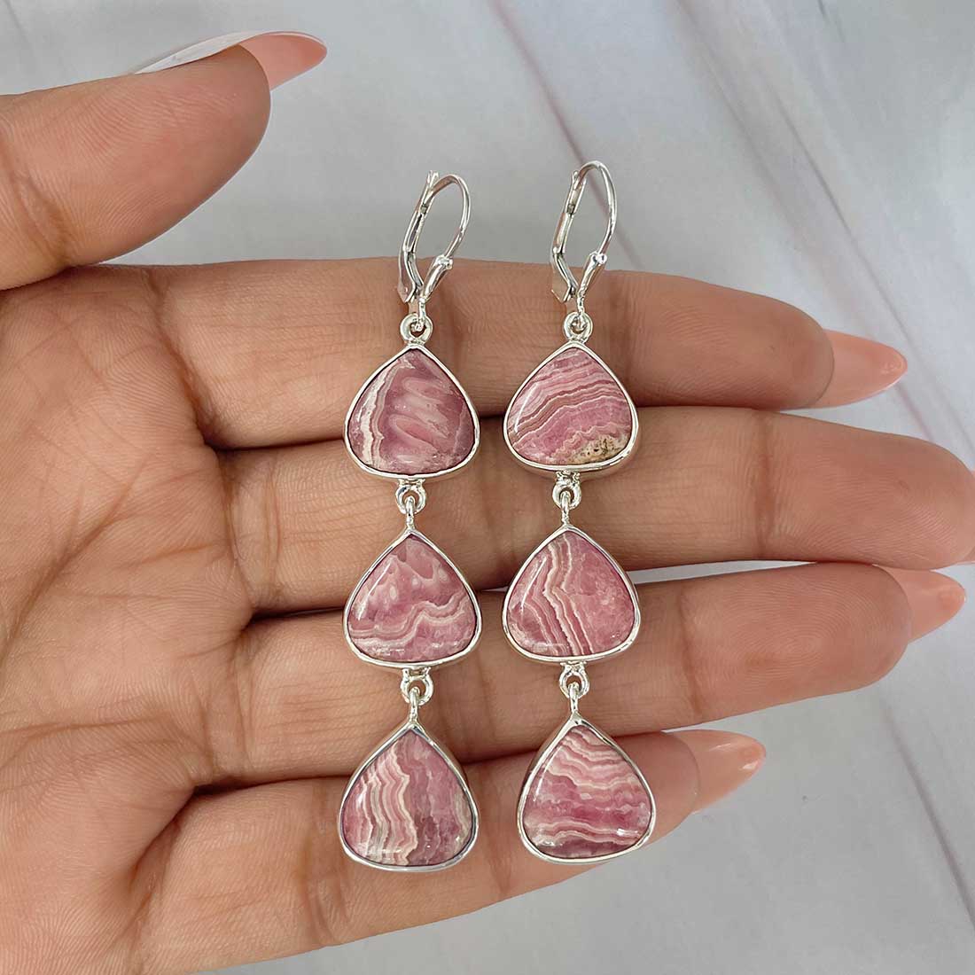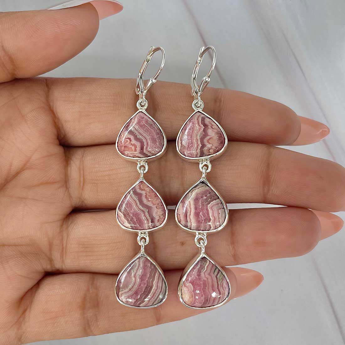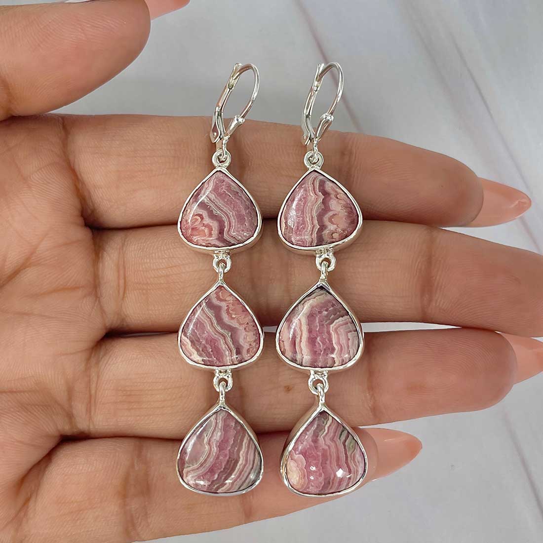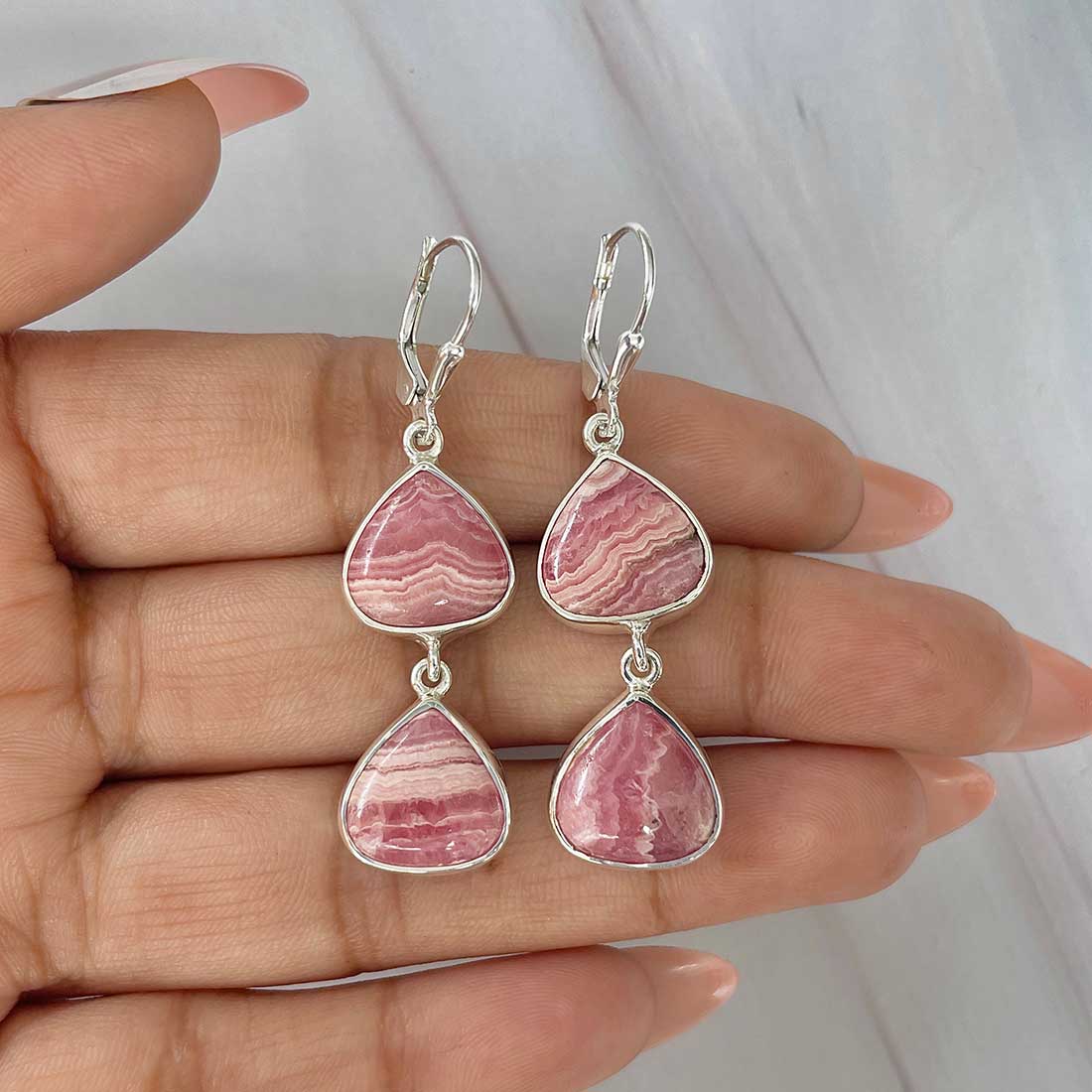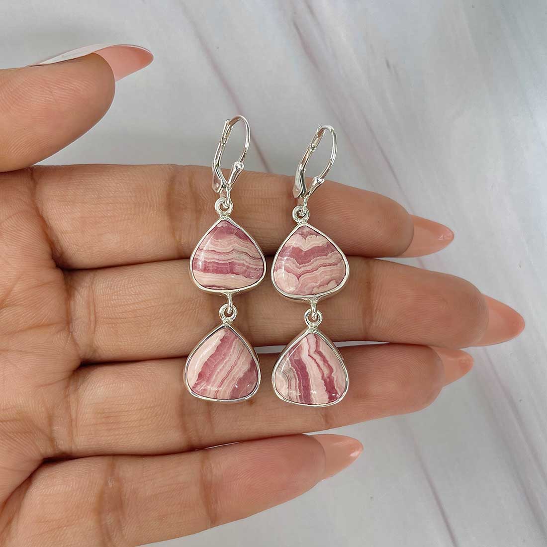 There are lots of interesting and fashionable ways to wear Rhodochrosite jewelry. Wear your spectacular statement Rhodochrosite earrings with complementary or opposing clothing for a distinctive and stylish look. Keep the rest of your ensemble modest and monochrome to allow the gentle pink tones of the Rhodochrosite gemstones to shine out. Wear a statement Rhodochrosite ring with flowing, earthy-toned clothing and organic textures to embrace a boho look. Styling a Rhodochrosite bracelet with formal outfits is a great idea to slay your board meetings elegantly. You can pair it with a tuxedo or plan blazer and trousers. If you are going for a staycation, register your presence with a Rhodochrosite pendant. You can go for a stackable look by teaming it with dainty silver or gold chains.